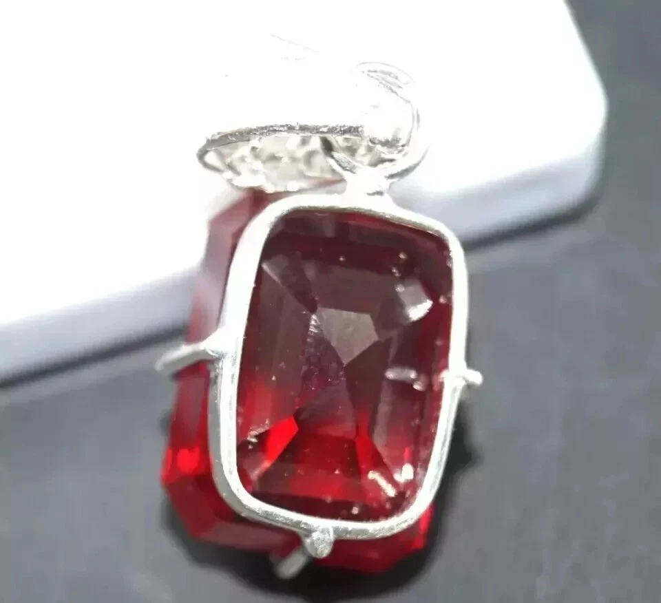 Theme: Nature Color: Red Material: Gemstone Pendant Shape: Emerald UPC: Does Not Apply Base Metal: Silver Wholesale: Yes Main Stone Width: N/A Personalize: Yes Handmade: Yes Style: Pendant Main Stone Creation: Natural Main Stone Depth: N/A Type: Pendant Seller Warranty: Yes Cut Grade: Excellent Main Stone Shape: Emerald Main Stone: Ruby Number of Gemstones: 1 Necklace Length: N/A Era: Undated Brand: Jitendergems Occasion: Anniversary, Birthday, Christening, Christmas, Engagement, Mother's Day, Valentine's Day, Wedding Gemstone Clarity Grade: Eye Clean Setting Style: Prong gtin13: Does Not Apply Country/Region of Manufacture: India Signed: Yes Metal: Silver Country of Origin: BURMA Features: Adjustable Metal Purity: 925 Secondary Stone: N/A Pendant/Locket Type: Charm Chain Type: N/A Vintage: Yes Main Stone Color: Red Closure: Hook Main Stone Length: N/A Seller Notes: “''New Condition"” Main Stone Treatment: Not Enhanced