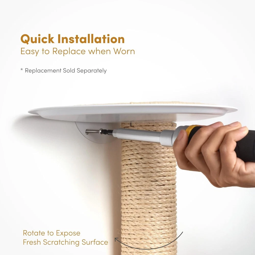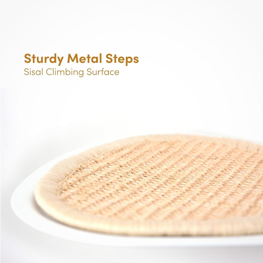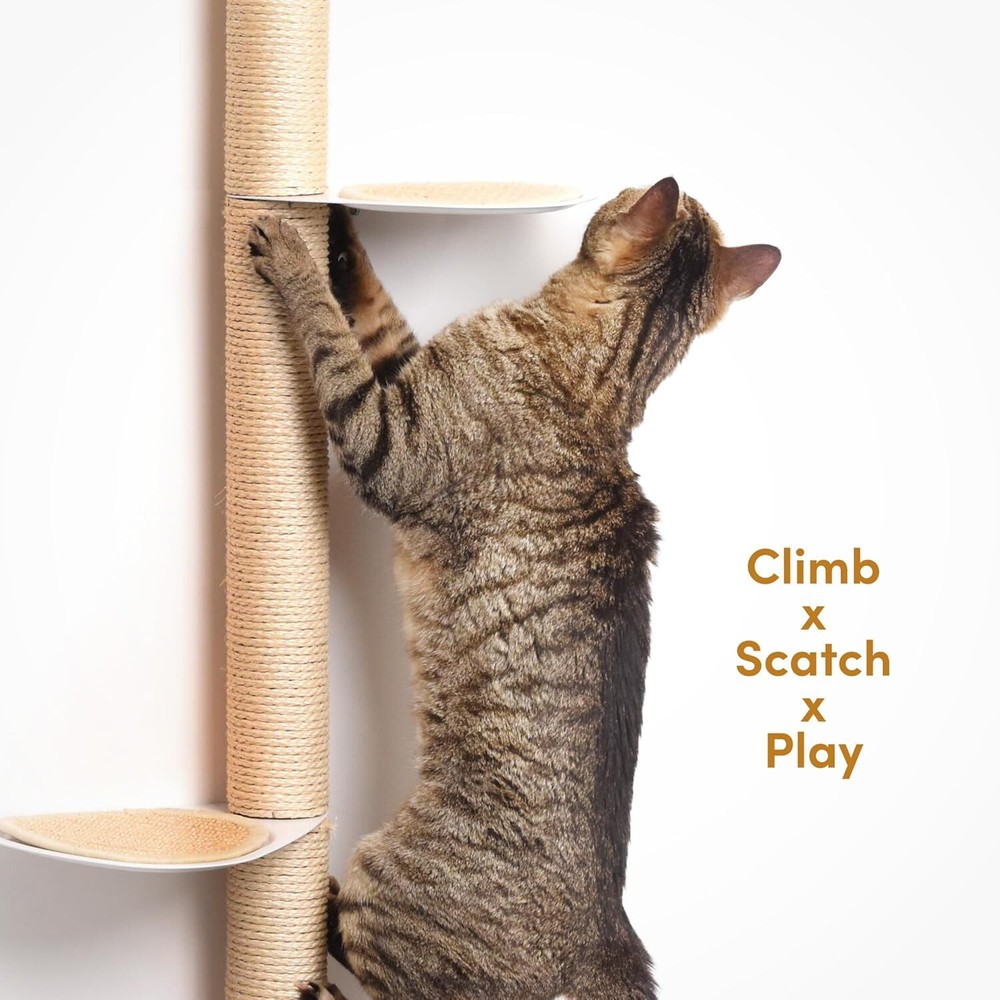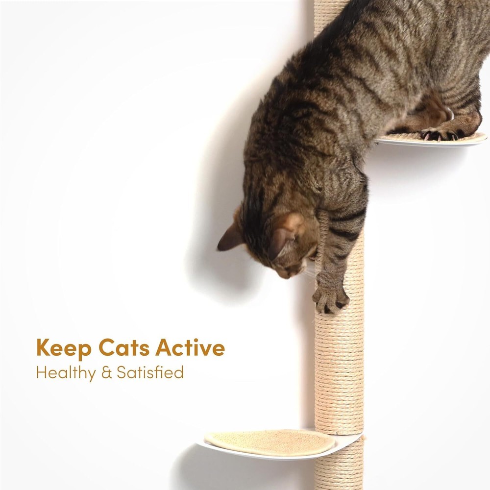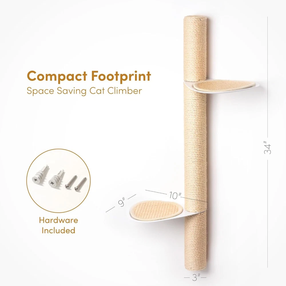 Stylish Wall-Mounted Design: The xympo Wall-Mounted Cat Tree functions as both a modern cat wall shelf and attractive furniture piece, seamlessly integrating into your home decor while saving valuable floor space. Durable Natural Sisal: Wrapped in premium natural sisal, the center post and step surfaces serve as an ideal scratching post and climbing surface, promoting healthy scratching and climbing behaviors for your feline friend. Compact yet Functional: With dimensions of 33.4 inches tall, 17.7 inches wide, and 8.8 inches deep, this cat tree provides a tall climbing ladder experience in a compact design, perfect for small living spaces. Secure Steps and Climbing Features: Designed with steel steps featuring sisal surfaces for extra grip, this indoor climbing tower encourages safe and confident movement, while the integrated scratching features enhance your cat's playtime. Easy Installation & Stability: The product includes self-drilling drywall anchors and screws for simple installation, ensuring a secure wall-mounted setup that keeps your cat safe while they explore their new favorite perch.