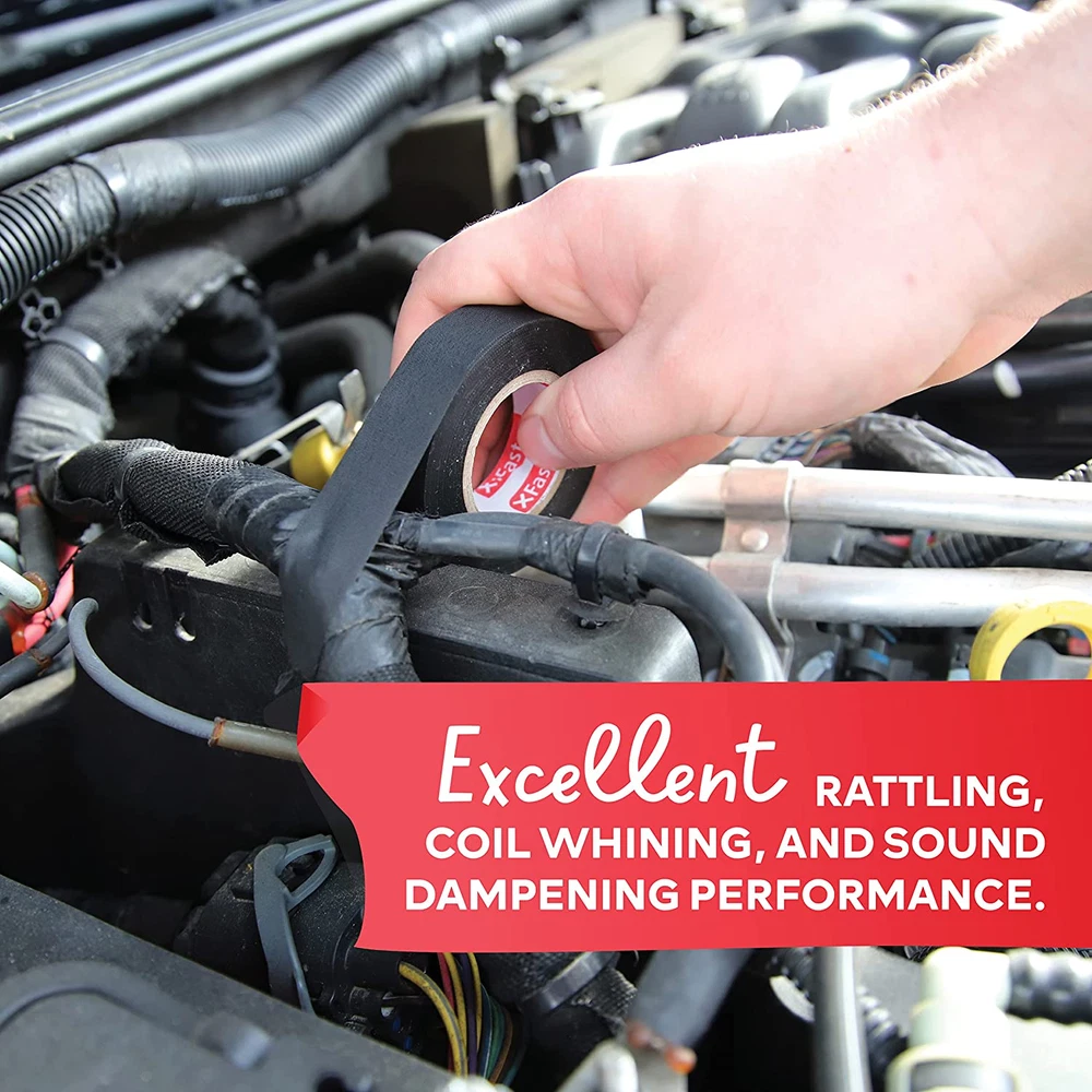 High temp Wire Harness Automotive Cloth Tape with excellent sound and rattle dampening performance. Lessens coil whining and lasts well against elevated temperatures (-40℉ - 257℉). Sports a race-spec heavy-duty bundling performance but cleanly tears with just bare hands, EMPOWERING average car owners with LITTLE TO NO EXPERIENCE in automotive maintenance to achieve PROFESSIONAL-GRADE results in function and form. This Wire Loom Tape features an extremely strong adhesive but does not turn into a messy goo. Rated to last up to 6 years and can easily get you through 150k miles of mileage. Its bi-directional weave makes it puncture-resistant and abrasion and corrosion-resistant. This automotive felt tape preserves cables in their pristine condition. This engine tape wrap is similar, if not better, in thickness, tensile strength and looks with OEM wire harness tapes. Extra-sticky adhesive enables users to bundle hard-to-reach cables quickly. Product Description About The XFasten Wire Harness Tape Key Features High Tensile Strength Precisely engineered to have a similar thickness, tensile strength, and look and feel to OEM brands. Prevents Coil Whining Prevents coil rattling - making it an essential high temp fiber electrical tape for a silent automotive wire loom. Excellent Thermals Fire-retardant and can be used as a high temp heat shield. The XFasten Wire Harness Tape can withstand temperatures up to 257℉. Reliable Lasts for years without residue-leak - thanks to it being high heat-resistant, corrosion-resistant, and puncture-resistant. 1 Step 1 2 Step 2 3 Step 3 Heavy-Duty Bundling Performance XFasten Wire Harness Tape Reliable and extremely Strong. These are the words to describe the XFasten Wire Harness Tape. Unlike other wire harness tapes that ooze out a messy goo after exposure to heat, this engine wire loom tape can last for years without residue and leaks. It's resistant to high heat, corrosion, and puncture. The XFasten Wire Harness Tape is also precisely engineered to have a similar thickness, strength, and feel to OEM brands to keep your wires and cables always in pristine condition. The video showcases the product in use. The video guides you through product setup. The video compares multiple products. The video shows the product being unpacked. video Merchant Video The XFasten Wire Harness Tape Collection Add to Cart Add to Cart Add to Cart Add to Cart Add to Cart Add to Cart Add to Cart Customer Reviews 4.7 out of 5 stars 2,131 4.7 out of 5 stars 2,131 4.7 out of 5 stars 2,852 4.7 out of 5 stars 2,131 4.7 out of 5 stars 2,131 4.7 out of 5 stars 2,131 4.7 out of 5 stars 2,131 Price $5.99 $ 5 . 99 $9.99 $ 9 . 99 $13.99 $ 13 . 99 $13.99 $ 13 . 99 $19.99 $ 19 . 99 $9.99 $ 9 . 99 $14.99 $ 14 . 99 Width 3/4" 3/4" 3/4" 3/4" 3/4" 1.3" .35", .60", .75", .99", 1.26" Length 50 Feet 50 Feet 50 Feet 90 Feet 90 Feet 50 Feet 50 Feet Quantity Single Roll 3 Rolls 5 Rolls 3 Rolls 5 Rolls Single Roll 5 Rolls Adhesive Color Black Black Black Black Black Black Black Double Sided ✘ ✘ ✘ ✘ ✘ ✘ ✘ Residue-Free ✔ ✔ ✔ ✔ ✔ ✔ ✔