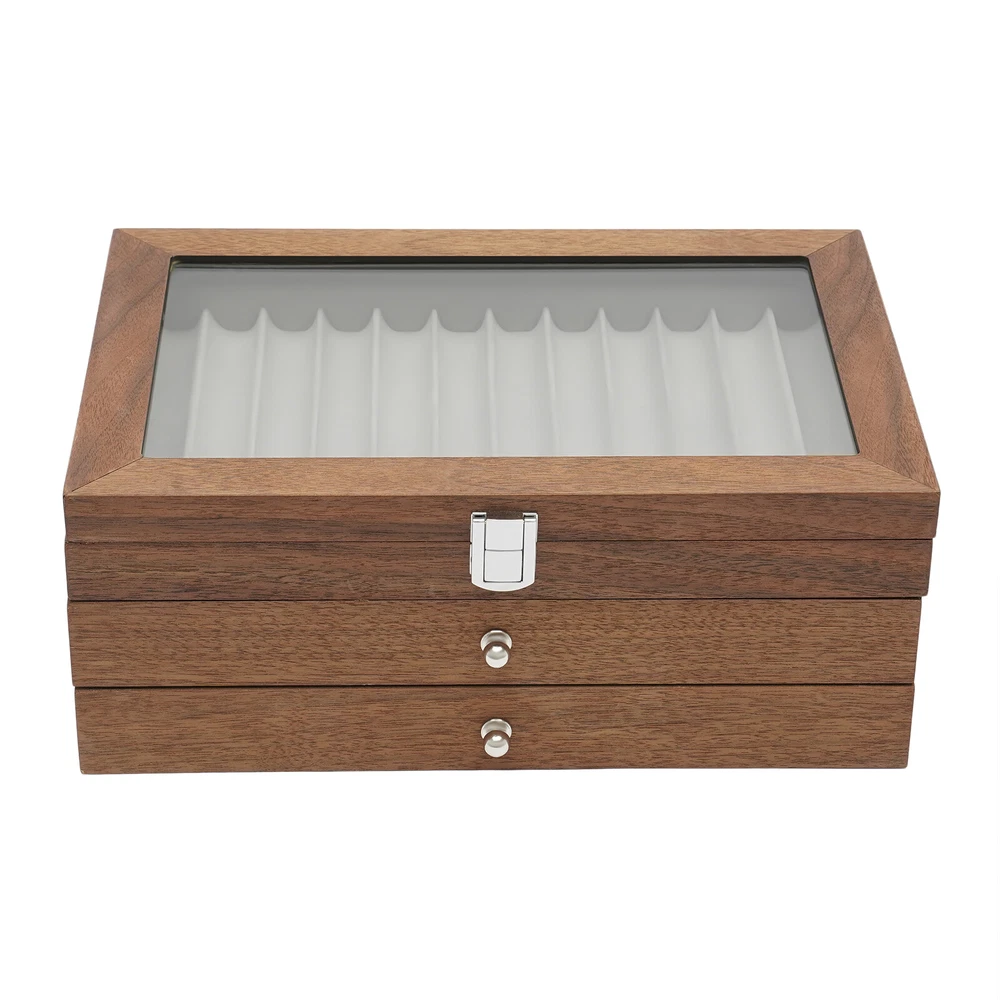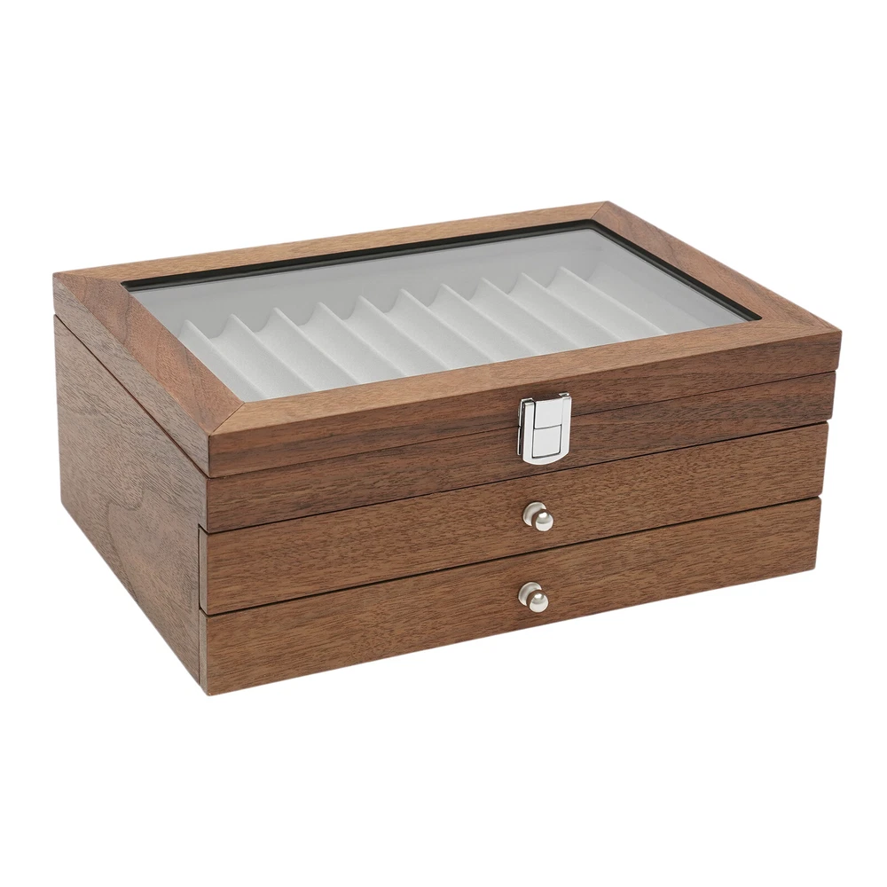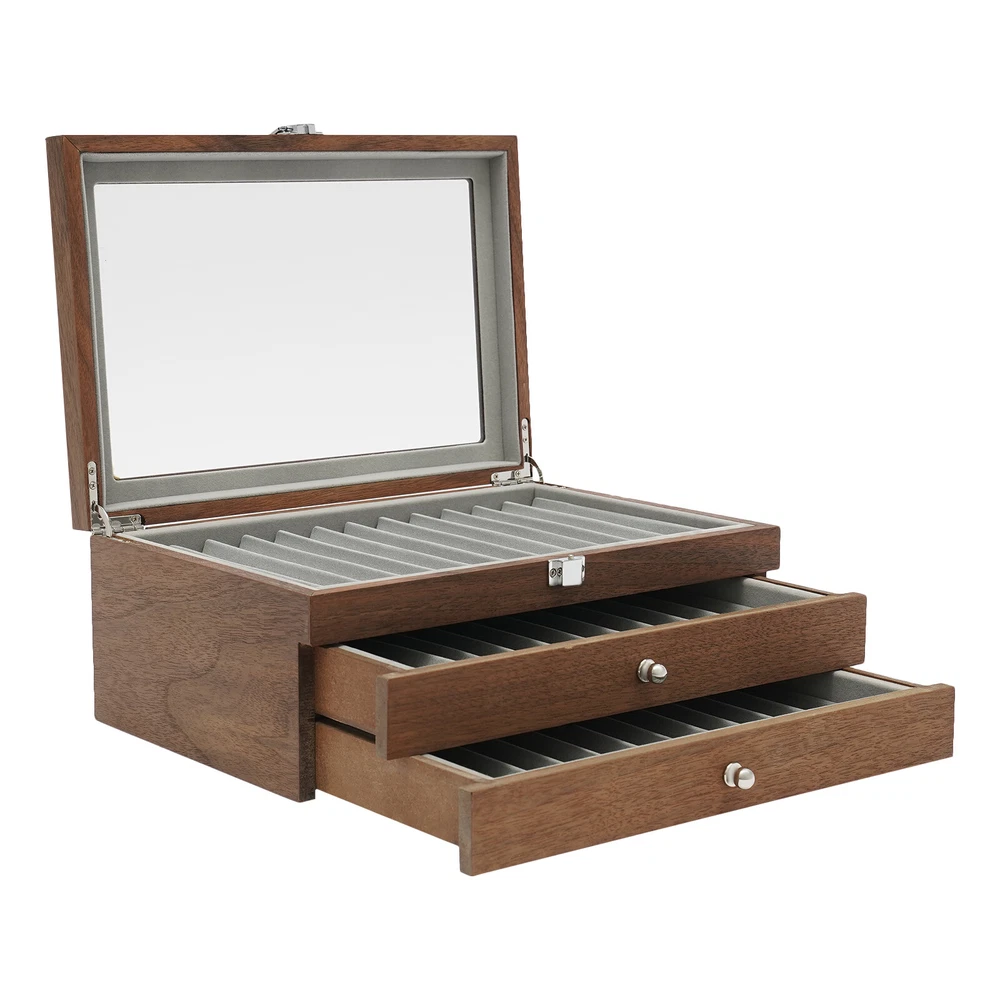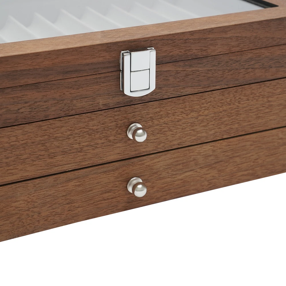 34Slots Walnut Wood Fountain Pen Display Case Holder Pen Display Box Storage Pen