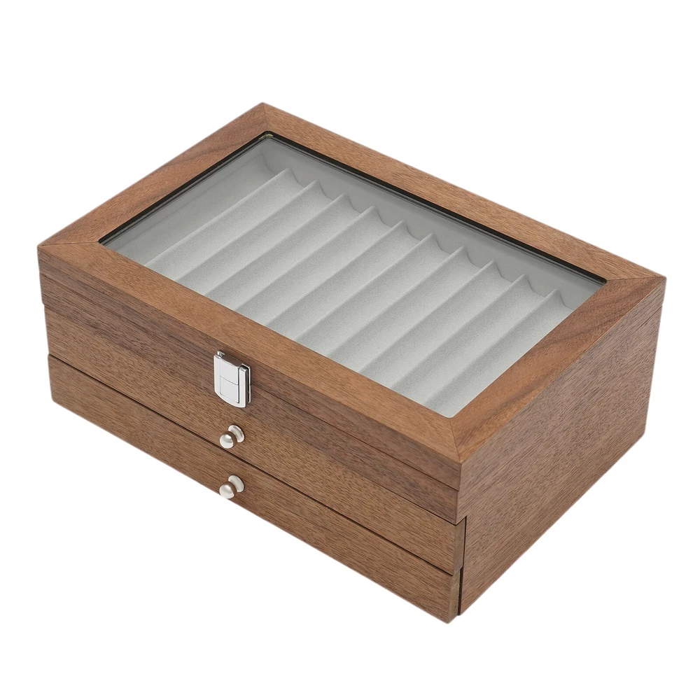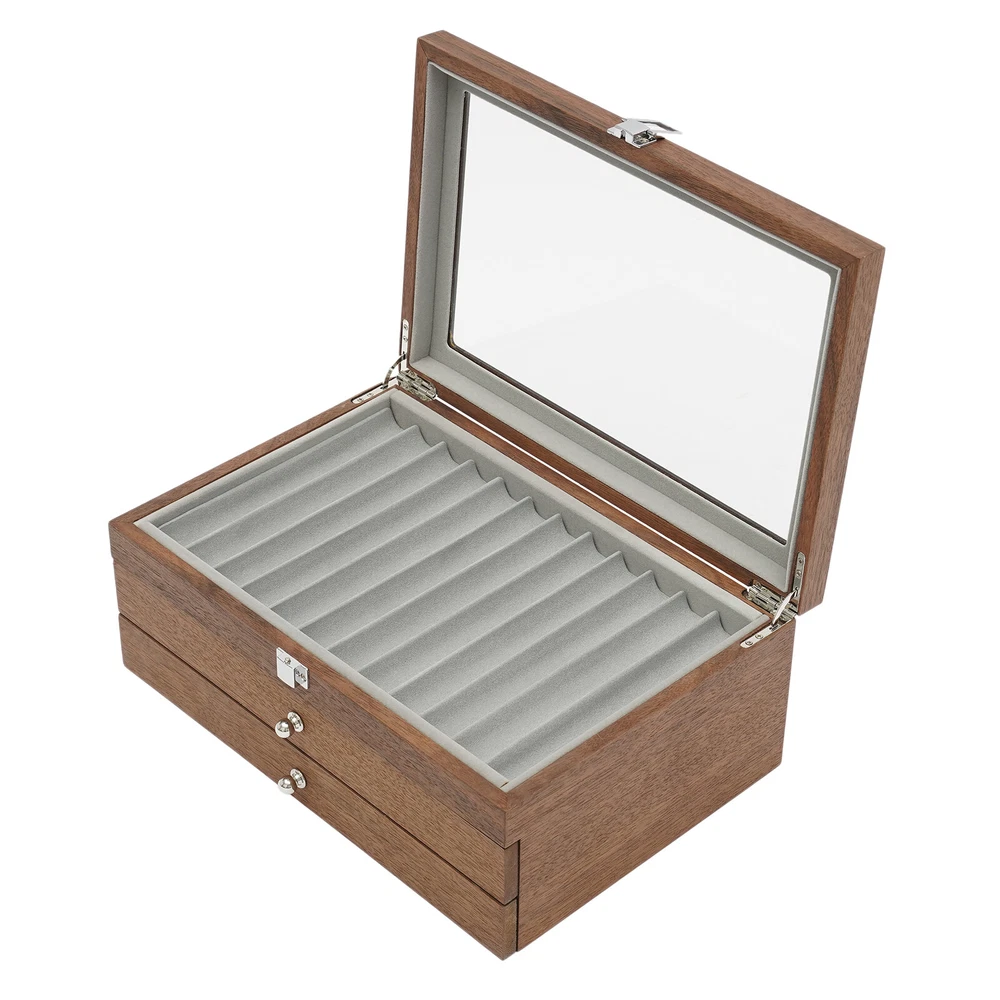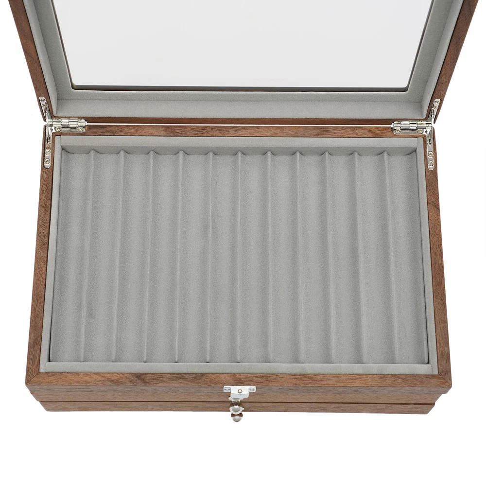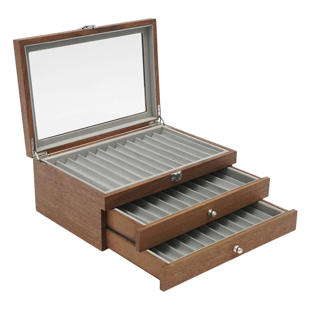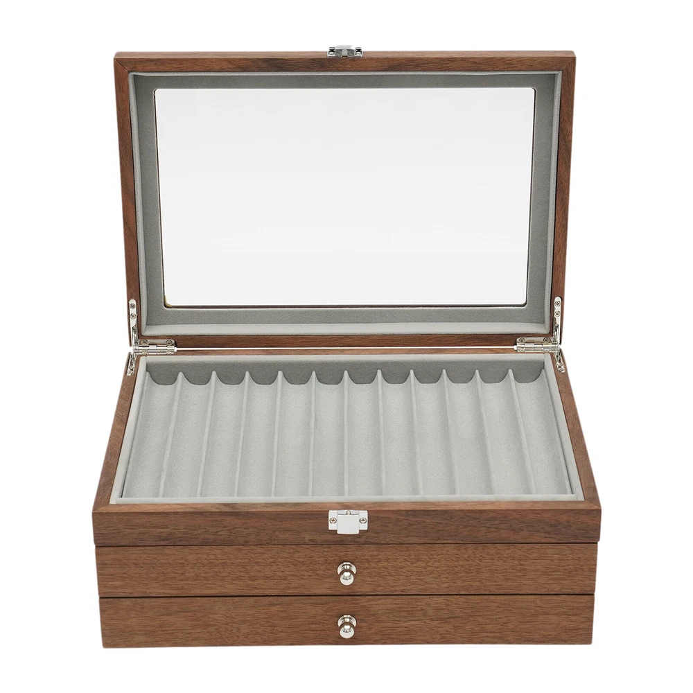34Slots Walnut Wood Fountain Pen Display Case Holder Pen Display Box Storage Pen