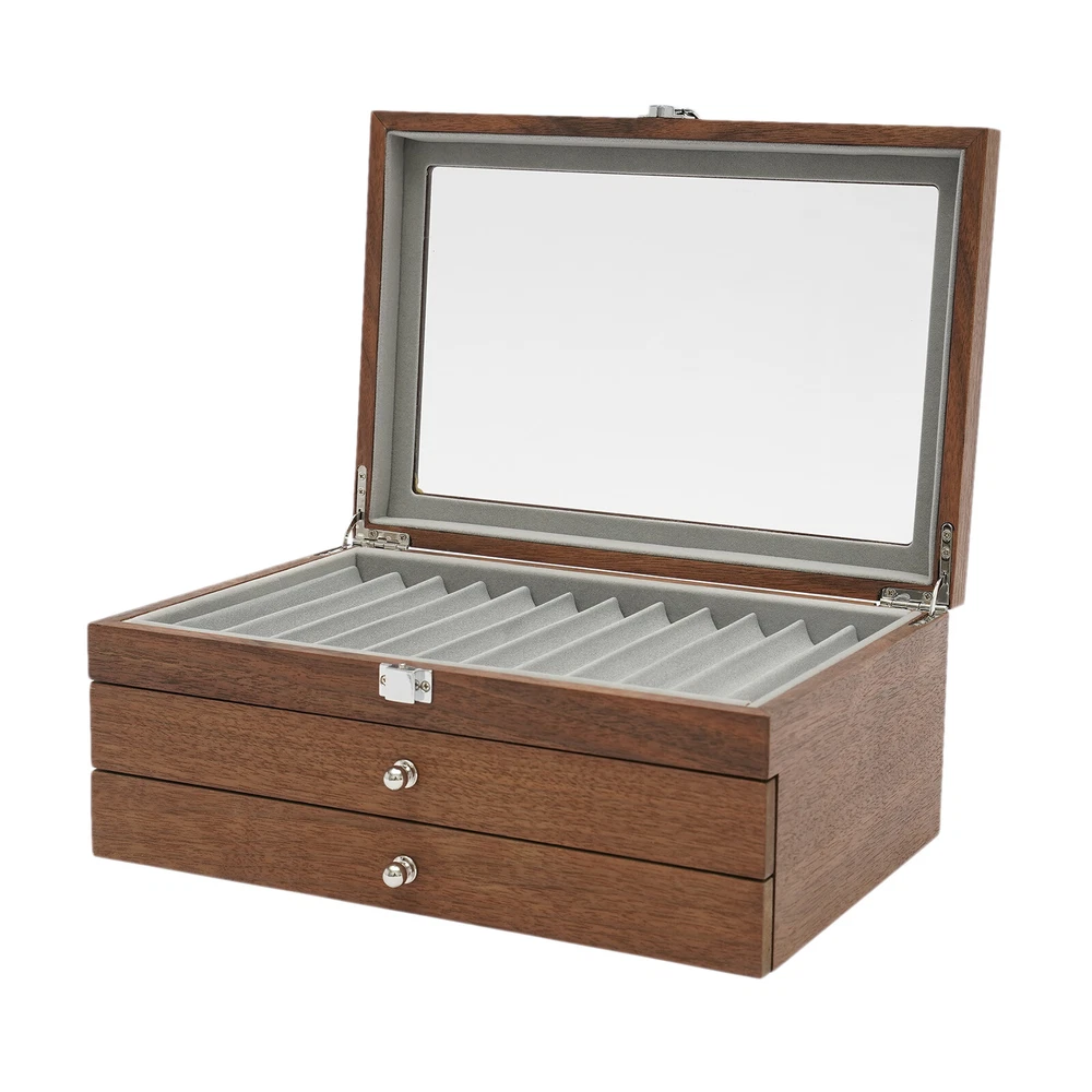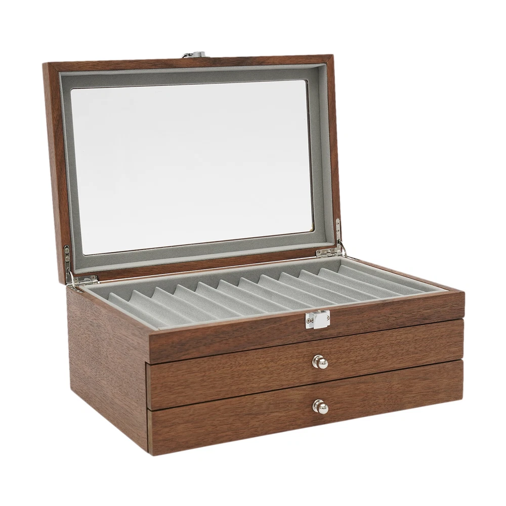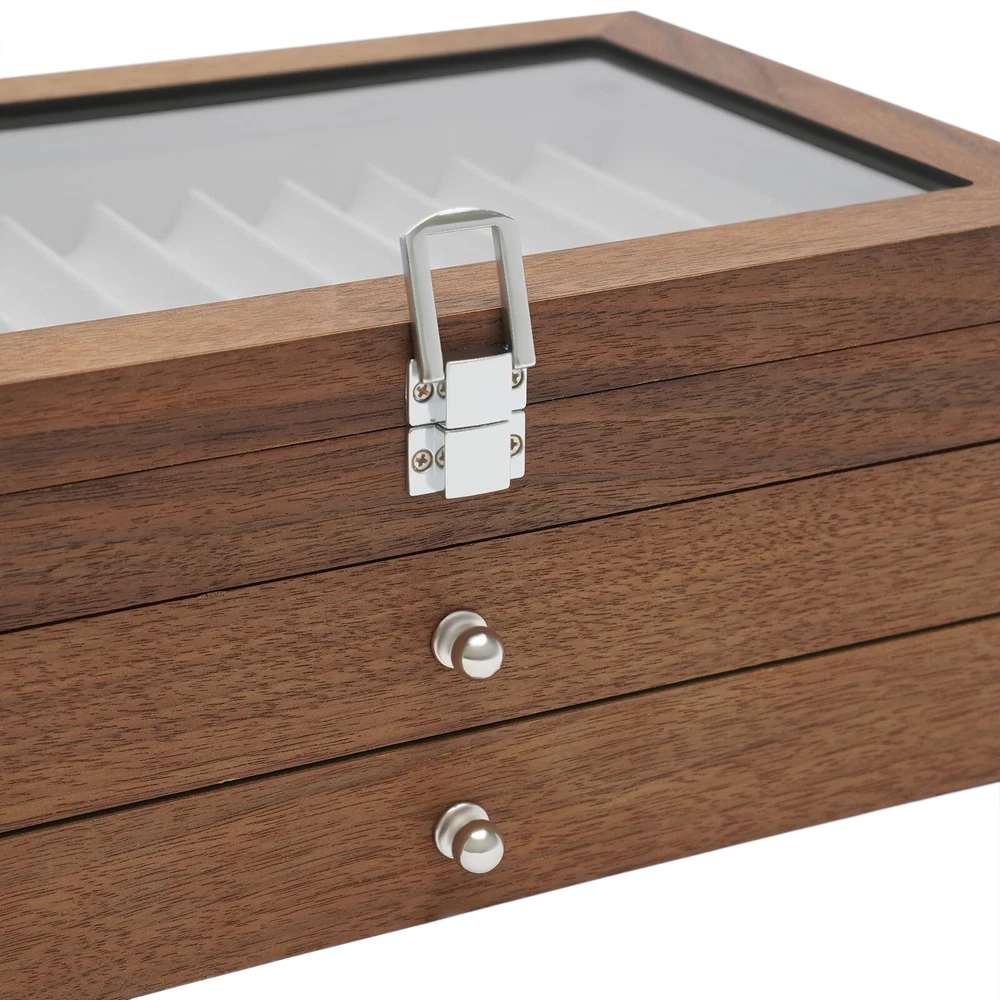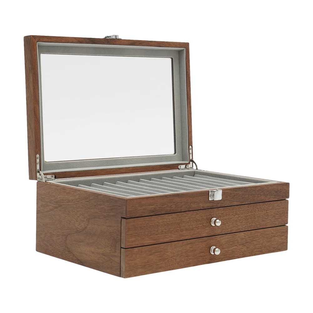 34Slots Walnut Wood Fountain Pen Display Case Holder Pen Display Box Storage Pen