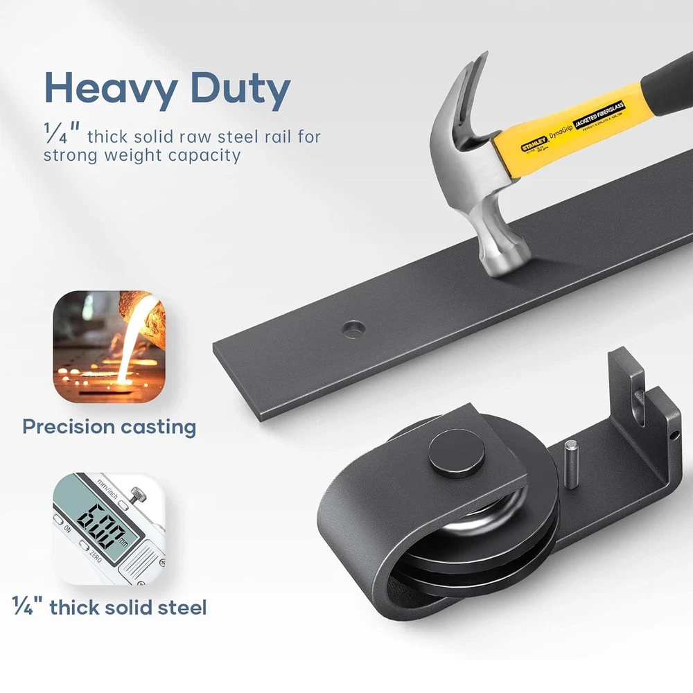 Store category Sign Up Now ! You may also like Product Description Bullet Points: Wide Range of Applications: This Rail Sliding Barn Door provides versatile elegance to your living room, dining room, or study, goodly saving space in various life situations. Its design concept enhances the ambiance of your space, making it perfect for different applications. Effortless Glide & Seal: Equipped with 2x scroll wheels and 3x hinges, our Rail Sliding Barn Door ensures a smooth operation, while the 1x sealing strip provides a warm fit, meeting your needs with sufficient quantity. Reliable Endurance: Crafted from high-quality carbon steel, this sliding barn door rail ensures a wear-resistant, solid, and enduring addition to your space. Install with Ease: Our Rail Sliding Barn Door kit includes detailed instructions and clear pictures to guide you intuitively through the streamlined setup process. Upgrade your space effortlessly with a quick and easy installation. Good Smoothness: Glide with ease on a 6mm thick track with the reliable bearing and nylon wheel combo of this Rail Sliding Barn Door rating for a high carrying capacity. Practical and durable, perfect for all your heavy-duty sliding needs. With 2*roller swivel stands, it slides smoothly on a solid, 6mm thick track. Pictures and text provide a detailed view of this durable, stylish door. Specifications: Colour: Black Material: carbon steel Track size: about 34 inches/86CM Track splicing method: 3 pieces Scope of application: Door panel thickness 0.5-50MM Packing List: 3*track 2*scroll wheel 2*roller swivel stand 1*roller holder 3*spacers 3*hinge 1*floor rail 1*sealing strip 1*screw pack 1*instruction manual 4*pipe clamp 35mm 4* wood screws Payment Delivery details Terms of sales About us Feedback & DSRs Payment Before you palce an order, please kindly make sure that you have a paypal account. We accept PAYPAL payment only. Payment should be completed within 2 days after auction closed, or unpaid dispute will be filed for an closing auction. An unpaid case will be filled after 4 days. Delivery details We ship to your eBay address. Each package will be shipped to US by UPS Regular Parcel with tracking number. Please check your shipping address carefully before checkout, it can't be changed if order completed. All items will be shipped within 1-2 business day upon receipt of payment.Orders placed on weekend will be shipped within 3 days. If you do not receive your item in 7-10 business days.please contact us immediately for further assistance. We will be responsible for any damages or losses incurred in the shipping process. About us We maintain high standards of excellence FIVE STAR and strive for 100% customer satisfaction! Positive Feedback is very important to us. We hope that you contact us immediately Before you give us neutral or negative feedback, so that we can satisfactorily address your concerns. We promise to offer the lowest price and high quality produce. Our working time: From Monday to Friday(9:30 am to 18:00pm), we don't working on holidays ,hope you can understand and know that , thank you. Please always talk to us via ebay Message. We appreciate your business and look forward to growing our e-Bay sales with satisfied customers. Feedback Contact us If you have any questions, please feel free to contact with us by ebay Message during our business hours ( 9:30a.m. to 5:30 p.m.), or email us through eBay, we will try our best to help you to resolve it. For any presale or after-sale questions,please do feel free to email us! Due to the time difference, each email will be replied within 1 working day,and weekend will be delayed a bit. Feedback