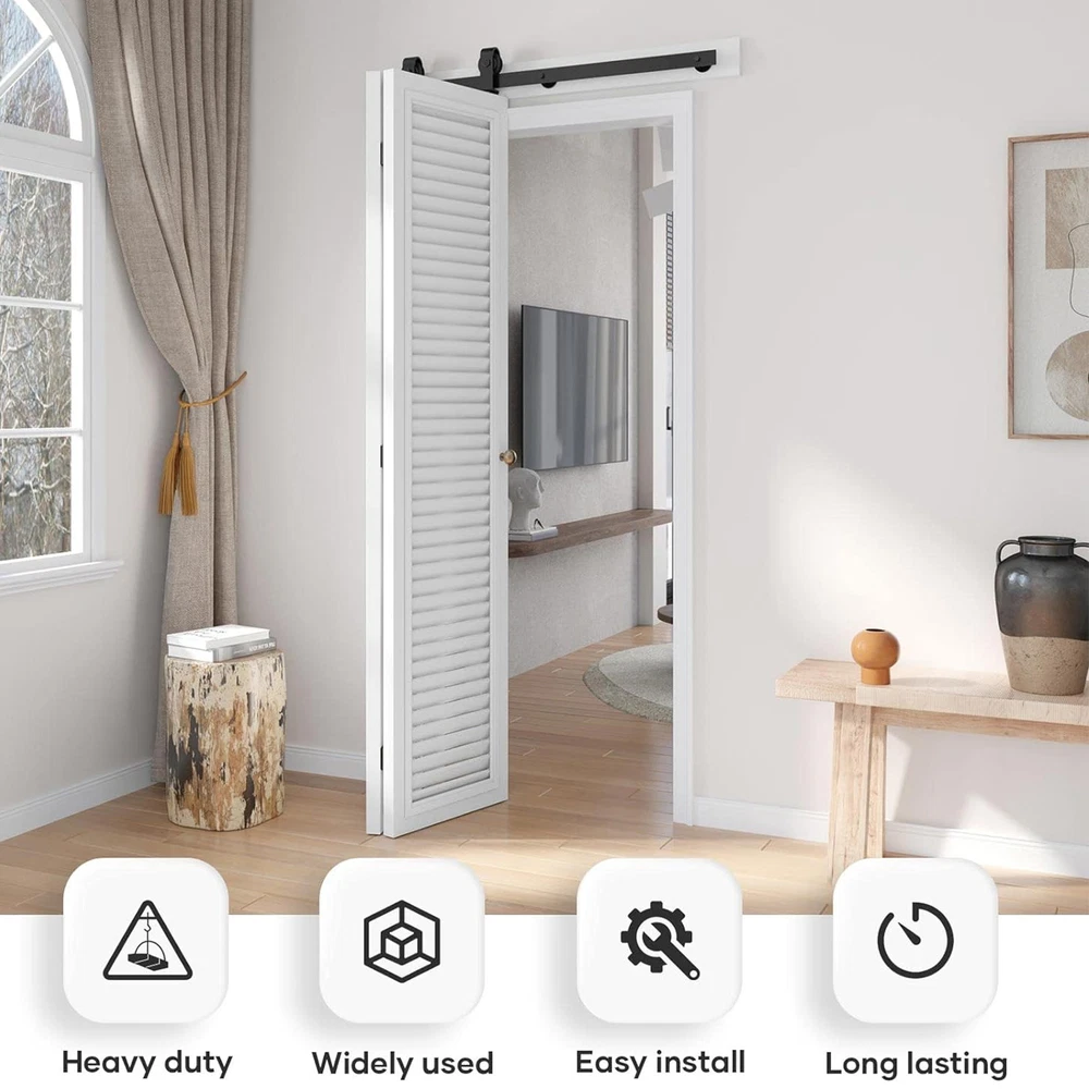 Store category Sign Up Now ! You may also like Product Description Bullet Points: Wide Range of Applications: This Rail Sliding Barn Door provides versatile elegance to your living room, dining room, or study, goodly saving space in various life situations. Its design concept enhances the ambiance of your space, making it perfect for different applications. Effortless Glide & Seal: Equipped with 2x scroll wheels and 3x hinges, our Rail Sliding Barn Door ensures a smooth operation, while the 1x sealing strip provides a warm fit, meeting your needs with sufficient quantity. Reliable Endurance: Crafted from high-quality carbon steel, this sliding barn door rail ensures a wear-resistant, solid, and enduring addition to your space. Install with Ease: Our Rail Sliding Barn Door kit includes detailed instructions and clear pictures to guide you intuitively through the streamlined setup process. Upgrade your space effortlessly with a quick and easy installation. Good Smoothness: Glide with ease on a 6mm thick track with the reliable bearing and nylon wheel combo of this Rail Sliding Barn Door rating for a high carrying capacity. Practical and durable, perfect for all your heavy-duty sliding needs. With 2*roller swivel stands, it slides smoothly on a solid, 6mm thick track. Pictures and text provide a detailed view of this durable, stylish door. Specifications: Colour: Black Material: carbon steel Track size: about 34 inches/86CM Track splicing method: 3 pieces Scope of application: Door panel thickness 0.5-50MM Packing List: 3*track 2*scroll wheel 2*roller swivel stand 1*roller holder 3*spacers 3*hinge 1*floor rail 1*sealing strip 1*screw pack 1*instruction manual 4*pipe clamp 35mm 4* wood screws Payment Delivery details Terms of sales About us Feedback & DSRs Payment Before you palce an order, please kindly make sure that you have a paypal account. We accept PAYPAL payment only. Payment should be completed within 2 days after auction closed, or unpaid dispute will be filed for an closing auction. An unpaid case will be filled after 4 days. Delivery details We ship to your eBay address. Each package will be shipped to US by UPS Regular Parcel with tracking number. Please check your shipping address carefully before checkout, it can't be changed if order completed. All items will be shipped within 1-2 business day upon receipt of payment.Orders placed on weekend will be shipped within 3 days. If you do not receive your item in 7-10 business days.please contact us immediately for further assistance. We will be responsible for any damages or losses incurred in the shipping process. About us We maintain high standards of excellence FIVE STAR and strive for 100% customer satisfaction! Positive Feedback is very important to us. We hope that you contact us immediately Before you give us neutral or negative feedback, so that we can satisfactorily address your concerns. We promise to offer the lowest price and high quality produce. Our working time: From Monday to Friday(9:30 am to 18:00pm), we don't working on holidays ,hope you can understand and know that , thank you. Please always talk to us via ebay Message. We appreciate your business and look forward to growing our e-Bay sales with satisfied customers. Feedback Contact us If you have any questions, please feel free to contact with us by ebay Message during our business hours ( 9:30a.m. to 5:30 p.m.), or email us through eBay, we will try our best to help you to resolve it. For any presale or after-sale questions,please do feel free to email us! Due to the time difference, each email will be replied within 1 working day,and weekend will be delayed a bit. Feedback