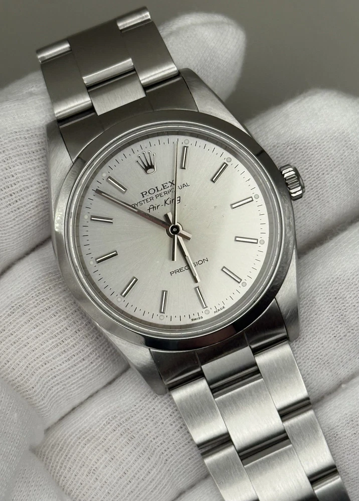 Nice condition Rolex Airking reference 14000M. Small mark on dial, other than that it is in pristine condition. Contact me with any questions. Let’s make a deal happen.