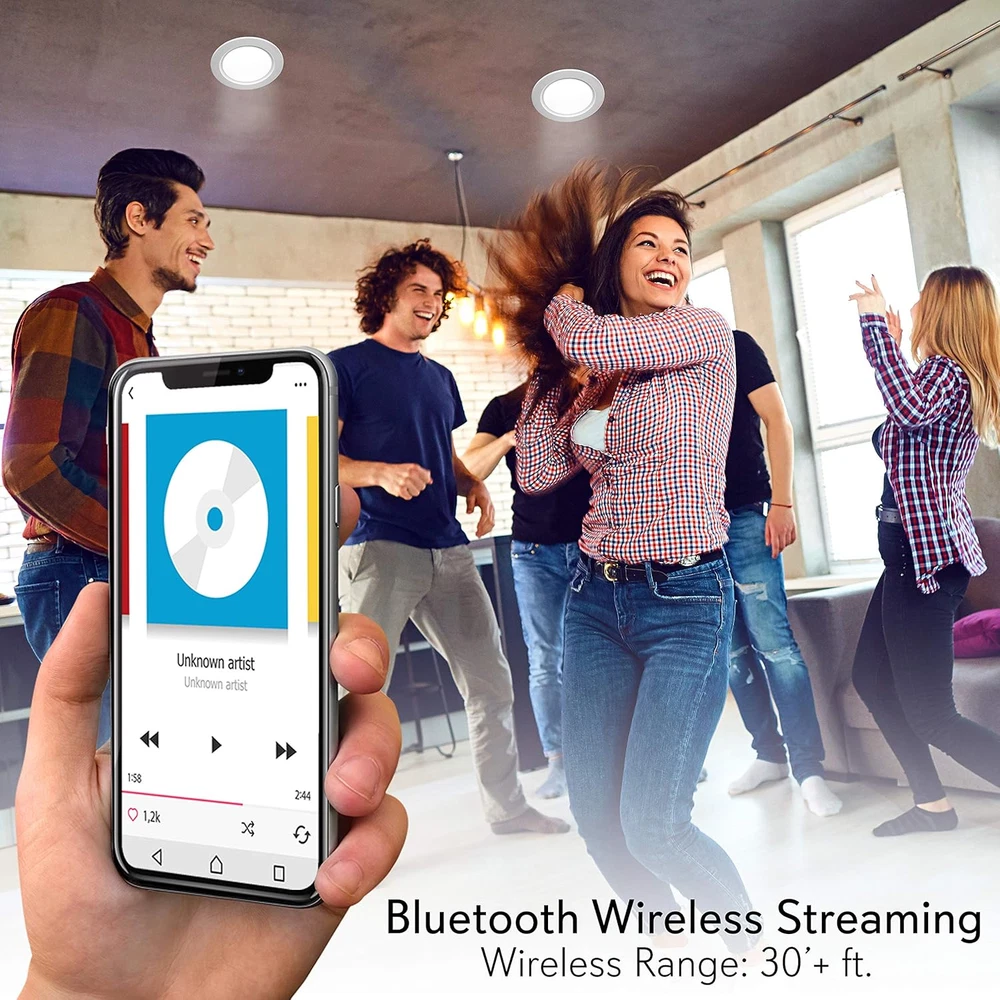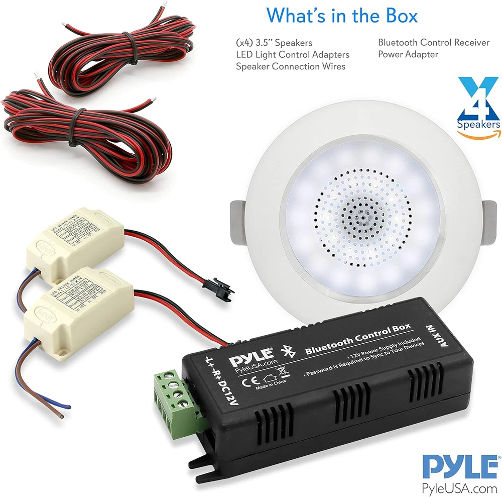 Store New Arrivals Add to Favorite View Feedback Contact 3.5” Ceiling Wall Mount Speakers - 2-Way Full Range Sound Stereo Speaker Flush Design W/Bluetooth LED Light Aluminum Frame Housing 60Hz - 20Khz Frequency Response & 280 Watts Peak PDIC4CBTL35B Description Item model number PDIC4CBTL35B Signal-to-Noise Ratio 9E+1 dB Number of Items 1 Power Source Corded Electric Control Method Remote Warranty Type Limited Frequency Response 1 KHz Product Dimensions 2.7"D x 12.01"W x 4.7"H Woofer Diameter 3.5 Inches Includes MP3 player? No Bluetooth Range 9.14 Meters Controller Type Remote Control Unit Count 1.0 Count Speaker Size 5 Inches Wireless Communication Technology Bluetooth Material Aluminum, Polyprone Vehicle Service Type Car Package Type Standard Packaging Impedance 8 Ohm Audio Output Mode Stereo Number Of Circuits 1 Specific Uses For Product indoor spaces, home theaters, living rooms, offices, parties, and gatherings Included Components Speaker Connection Wire, Bluetooth Controller, 3.5’’ Speakers (4), Power Supply Subwoofer Diameter 3.5 Inches Subwoofer Connectivity Technology Wireless Global Trade Identification Number 00068888770477 Speaker Maximum Output Power 280 Watts Water Resistance Level Not Water Resistant Connectivity Protocol Bluetooth Item Weight 1.36 pounds Connectivity Technology Bluetooth Audio Driver Type Dynamic Driver Special Feature Speakers Mounting Type Ceiling Mount Color White Is Discontinued By Manufacturer No Surround Sound Channel Configuration 2.0 Compatible Devices Smartphone Maximum Range 9.14 Meters Is Waterproof False Recommended Uses For Product For Music Players Speaker Type In Ceiling Size 3.5" FLUSH MOUNT DESIGN: A pair of flush mount design midbass speaker for simple and easy in-wall / in-ceiling installation. The product includes the cutout dimension at 4.5’’ in diameter x 2.7'' in depth and environmentally friendly ABS construction BLUETOOTH CONNECTIVITY: Built-in Bluetooth wireless streaming receiver and white LED light bulb with 650 lumens. Compatible with all of today's latest devices and ranges up to 30 ft. The product also includes Bluetooth controller and power supply 60Hz - 20kHz FREQUENCY RESPONSE: Pyle 3.5” speaker system has a 1/2’’ polymer tweeter and frequency response. This flush mount speaker is pack with exceptional 8 ohm impedance rating and impressive 280 watts power handling capability 280 WATTS PEAK: Pyle in-wall speaker system were carefully combined to reproduce sound clearly with outstanding responsiveness. Built-in 1/2’’ polymer tweeter and 4-channel digital amplifier for the full range stereo sound reproduction ALUMINUM FRAME HOUSING: Pyle ceiling speakers has a lightweight aluminum alloy frame housing that features reinforced polypropylene cone with rubber edge. It also features spring-loaded clips for easy installation Pyle Model : PDIC4CBTL35B 3.5'' Aluminum Frame Ceiling Speaker Kit 3.5’’ Bluetooth Ceiling / Wall Speaker Kit, (4) Aluminum Frame 2-Way Speakers with Built-in LED Light Features: Includes (4) 3.5’’-inch Speakers Bluetooth Wireless Music Streaming Lightweight Aluminum Alloy Frame Housing Built-in LED Light: High-Efficiency, Low Power Consumption 2-Way Full Range Stereo Sound Reproduction Built-in 1/2’’ Polymer Tweeter & 4-Ch. Digital Amplifier Spring-Loaded Clips for Easy Installation Reinforced Polypropylene Cone with Rubber Edge Simple Speaker Connector Post Mounts Flush on Walls or Ceilings Perfect for Custom Installations & Applications ABS Construction Bluetooth Connectivity: Built-in Bluetooth Wireless Streaming Receiver Works with All of Today’s Latest Devices (Smartphone, Tablet, Laptop, Computer, etc.) Includes Bluetooth Controller & Power Supply Bluetooth Network Name: ‘Pyle’ Bluetooth Network Password: ‘0000’ (4 Zeroes) Bluetooth Version: 4.0 Wireless Range: 30’+ ft. What’s in the Box: (4) 3.5’’ Speakers Speaker Connection Wire Bluetooth Controller Power Supply Technical Specs: MAX Power Output: 280 Watt Light Bulb Type: White LED Bulb, 5 Watt Brightness: 650 Lumen Impedance: 8 Ohm Sensitivity: 90 dB Frequency Response: 60-20 kHz Total Dimensions (Diameter x Depth): 4.7’’ x 2.8’’ Cutout Diameter: 4.2’’ Mounting Depth: 2.7’’ Speaker Weight: 1.36 lbs. (-Each) Power: 100/240V (12V DC Power Supply) The Pyle In-Wall/Ceiling Bluetooth Speaker Kit delivers effortless stereo sound to any room in your home or office. Each speaker features a built-in LED light and aluminum frame housing basket that provides an extra line of safety and heat-resistance. The included Bluetooth controller allows for wireless music streaming ability and doubles as a sound processing digital amplifier. High compliance polymer tweeters deliver full, rich audio without cluttering floor space. Round style speaker design makes them perfect for any custom audio application on virtually any flat surface. Integrated spring-loaded clips provide secure and flush wall mounting while stain-resistant grill covers and ABS construction add extra appeal. Included cut-out template makes installation easy. Achieve wide-ranged wireless sound performance and add audio to any room with the Pyle In-Wall/Ceiling Bluetooth Speaker Kit with Built-in LED Lights. ABOUT US We offer the best prices around on high quality products. Our E-store includes media such as books, movies, music and games while offering electronics, toys, sporting apparel, clothing, tools, general home, garden items and more. SHIPPING We are always working hard to ensure your package arrives as soon as possible. Please understand that some factors like weather, high postal traffic, and the performance of shipping companies are outside of our control. We offer free shipping to the lower 48 states and ship within 2 business days of payment, usually sooner. We do not accept P.O. Boxes. Please provide a physical address. For shipping outside of the continental USA, we only use eBay's Global Shipping Program.The item is shippe