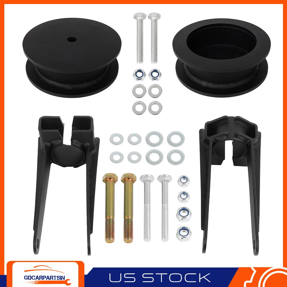 Front Spacers: 1: To begin install, block the rear tires of the vehicle so that the vehicle is stable and can’t roll backwards. Safely lift the front of the vehicle and support the frame with jack stands. Place jack stands on both sides of the vehicle and remove both front tires. 2:Using a wrench, unbolt the nut for the swaybar end-link. Take out the sway bar end-link. 3:Unbolt the brackets for the abs line so you have slack in the line. 4:Unbolt the bolt holding the brake line bracket to the coil housing. 5:Remove the brake caliper and brake rotor and set the rotor aside. 3.5" Front & 2.5" Rear Leveling Lift Kit For Jeep Grand Cherokee WK Commander XK Front Spacers: 1: To begin install, block the rear tires of the vehicle so that the vehicle is stable and can’t roll backwards. Safely lift the front of the vehicle and support the frame with jack stands. Place jack stands on both sides of the vehicle and remove both front tires. 2:Using a wrench, unbolt the nut for the swaybar end-link. Take out the sway bar end-link. 3:Unbolt the brackets for the abs line so you have slack in the line. 4:Unbolt the bolt holding the brake line bracket to the coil housing. 5:Remove the brake caliper and brake rotor and set the rotor aside. 6:Unbolt the nut holding the tie rod to the knuckle. 7:Support the lower control arm with a jack then using a socket loosen the nut holding the upper ball joint to the knuckle. 8:Strike the side of the knuckle where the upper ball joint and tie ord are with a hammer. The upper ball joint and tie rod will separate from the knuckle. 9:Remove the tie rod and upper ball joint from the knuckle. 10:Loosen the lower ball joint nut and strike it with a hammer to get it to separate. 11:Remove the knuckle from the vehicle. 12:Slowely remove the floor jack for the lower control arm and remove the coil spring from the vehicle. 13:Leave the coil spring isolator in place and install the new spacer on top of the coil spring. 14:The raised center of the spacer will locate it inside of the spring. 15:Insert the coil spring back into the vehicle. Use a jack under the lower control arm to compress the spring. 16:Reattach the knuckle and upper ball joint. 17:Reattach the tie rod and sway bar. 18:Finish installing the truck in reverse of the order it came apart. 19:Torque all bolts to factory spec and recheck them after 25 miles. Rear Installation 1. Remove the lower shock mounting hardware from both sides of the truck saving it for reinstallation later on; 2. Remove the upper shackle mounting bolt work the upper shackle legs away from the frame bushing, a small pry bar can help with this if it's snug; 3. Remove the lower shackle mounting goal; 4. Remove the OE shackle on the new lift shackles, decide what the longer legs goes up towards the frame, install a washer on the included new shackle bolt pass it through the shackle, and frame bushing capping it off with another washer and an included nylock nut, don't tighten it just yet now, align the leaf spring bushing with the lower end of the shackle to install another new shackle bolt with washer; if you have a hard time aliging the holes, you can adjust the floor jack supporting the axle until everything lines up everything is close, but still snug rubber mallet or a dead blow hammer can lend some help cap this off with another washer and nylock nut as well. 5. You can secure the shackle hardware these get fastened to 118 pound-feet of torque repeat the same shackle installation process on the other side of the truck. Item Specifics Brand gdcarpartsin Manufacturer Part Number GD84707101car Lift Height 3.5" Front & 2.5" Rear Note Lifting height is not exactly equal to spacer thickness Included Hardware All Parts in pictures included Part Type Suspension Lift Kit Fitment Type Performance/Custom Placement on Vehicle Left Right Front Rear Warranty 1 Year Material Steel Kit or Single Part Kit Kit Parts Included Strut Forks Spring Spacers Instruction No Included Fitment For Jeep Grand Cherokee WK Commander XK Drive Type 4x4 4WD / 4x2 2WD Color Black Interchange Part Number for 2005-2010 Jeep Grand Cherokee WK Other Part Number for 2006-2010 Jeep Commander XK Quantity 2X Front Strut Forks 2X Rear Spring Spacers Shipping 1. Orders processed within 24 hours of payment verification.(if you want cancel orders or change address pls contact us within 6 hours after payment,or we are not responsible for shipping a replacement.) 2. We only ship to confirmed PAYPAL addresses. Your PAYPAL address must match your Shipping address. 3. Fast shipping:All our packages use USPS First Class/UPS/Fedex... Package Service 4. If you have not received your shipment within 15 days from payment , please contact! Return 1. You have 30 days to contact us and 10 days to return it from the date it was received. If this item is in your possession more than 7 days, it is considered used and we will not issue you a refund or replacement. There are NO EXCEPTIONS! 2. All returned items must be in the original packaging and you must provide us with the shipping tracking number, specific reason for the return, and item custom lable. 3. We will refund your full winning bid amount, upon receipt of the item in its original condition and packaging with all components and accessories included, AFTER both Buyer and Seller cancel the transaction from eBay. OR, you may choose to have a replacement. 4. Return shipping is to be paid by the Buyer Feedback We strive for 100% customer satisfaction! FEEDBACK IS VERY IMPORTANT TO US. We request that you contact us immediately BEFORE you give us neutral or negative feedback, so that we can satisfactorily address your concerns. Payment 1.We only accept PayPal. 2.Please do not use the PayPal note field to indicate us to ship to other address. The note there will NOT be read. If you want to change the shipping address, please contact us by eBay messages. 3.(if you want cancel orders or change address pls contact us within 6 hours after payment,or w
