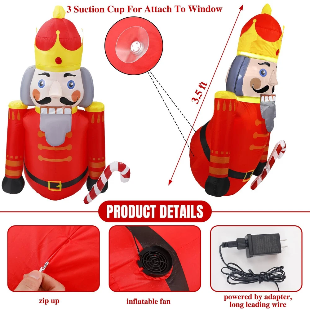 3.5 Ft Christmas Inflatable Nutcracker Window Hoilday Xmas Decorations For Home