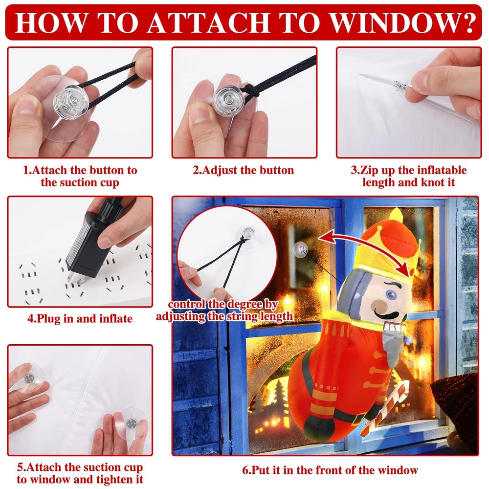 Features: Where to use: The inflatable Christmas ornaments are nice and delicate, you can use them to decorate window, yard, park, garden and more, letting you decorate for Christmas, party, birthday, themed party and other occasions. Easy to store: The outdoor decoration is convenient and foldable, you can fold it into suitable size to store, won't take up so much space, convenient to use next time. Specifications: Color: as pictures shown Size: about 3.5 ft Package includes: 1 x Christmas outdoor window decoration 1 x Screw sucker 1 x Fastened rope 1 x Built in fan 1 x Plug 2 x Built in LED lights Notes: Winding risk may exist, please keep our product away from children. Manual measurement, please allow slight errors on size. The color may exist a slight difference due to different screen displays. Package Information: the package comes with 1inflatable Christmas ornaments, which is about 3.5 ft, 1 piece of screw sucker, 1 piece of fastened rope, 1 piece of plug and 1 piece of built in fan, and 2 pieces of built in LED lights, which are matched, allowing you to use conveniently Delicate and Bright: each Christmas outdoor window decorations come with 2 pieces of LED lights inside, which can make the decorations bright and delicate, can make your places attractive Inflatable and Foldable: when you want to use the light up window Christmas decorations, you just need to plug the 12V power adapter, the fan inside will work, can inflate in a short time, saving your time and energy, and when you don't want to use it, the zipper on the bottom can let you leak the air inside easily, then you can fold it to store Easy to Use: it is easy and convenient to use window Xmas decorations, you just need to put the decoration on the suitable place, adjust the length of the rope, and tighten up the screw, connect the sucker to the window and plug in the power supply, which is easy and convenient to do this job Cute and Charming: the window inflatable Christmas comes with nutcracker design, and break out from window, which are charming and delicate, can make your place attractive