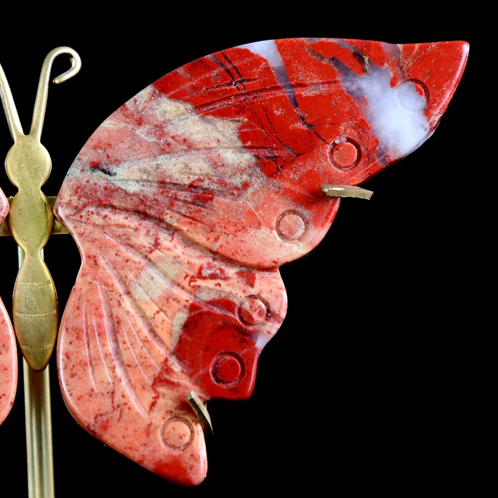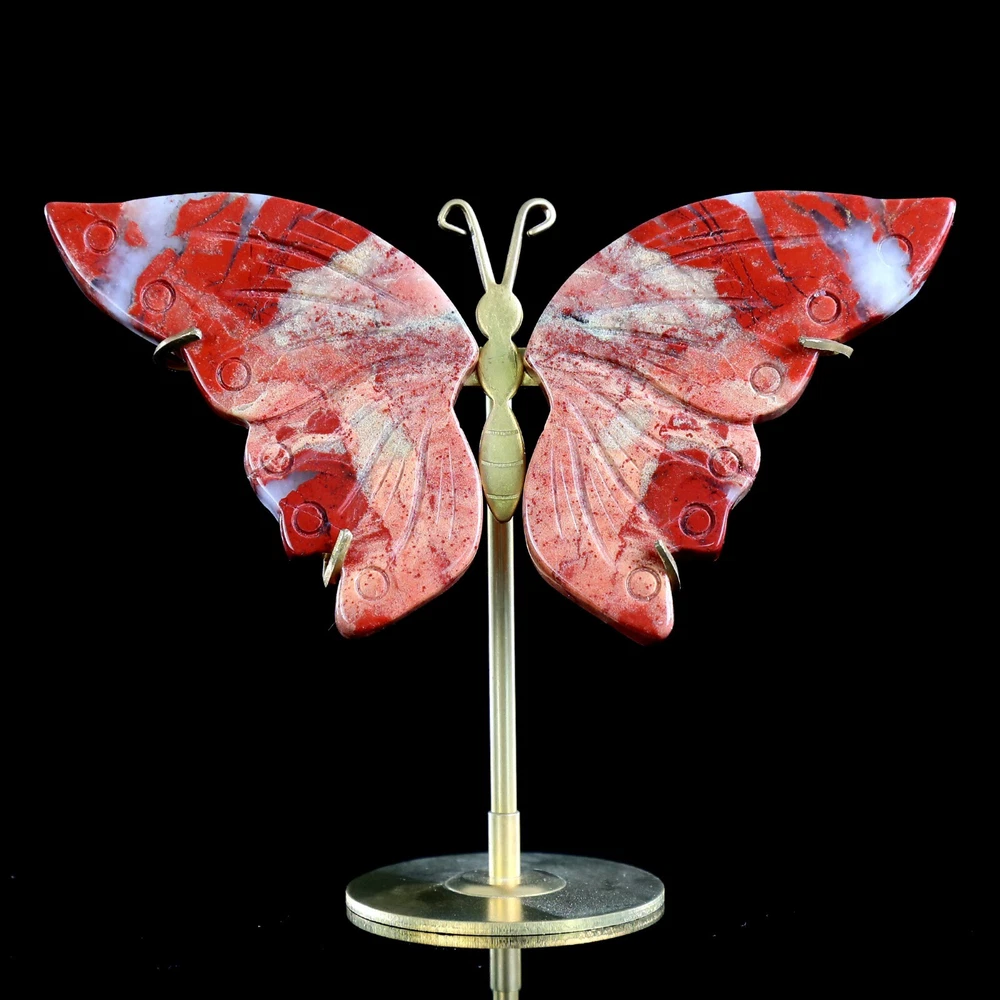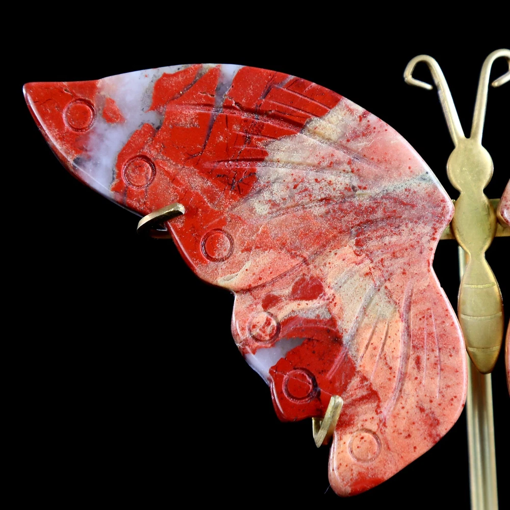 3.5" Natural Red Jasper Hand Carved Crystal Butterfly Wings, Crystal Gift