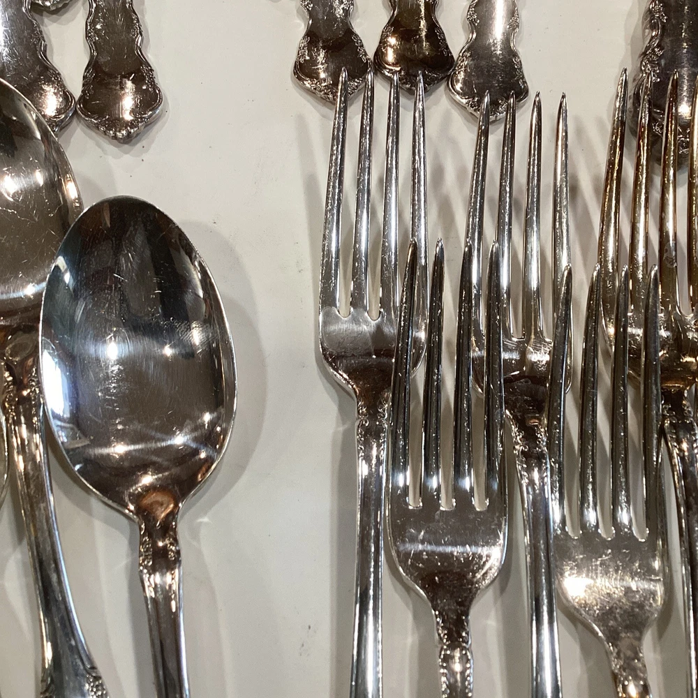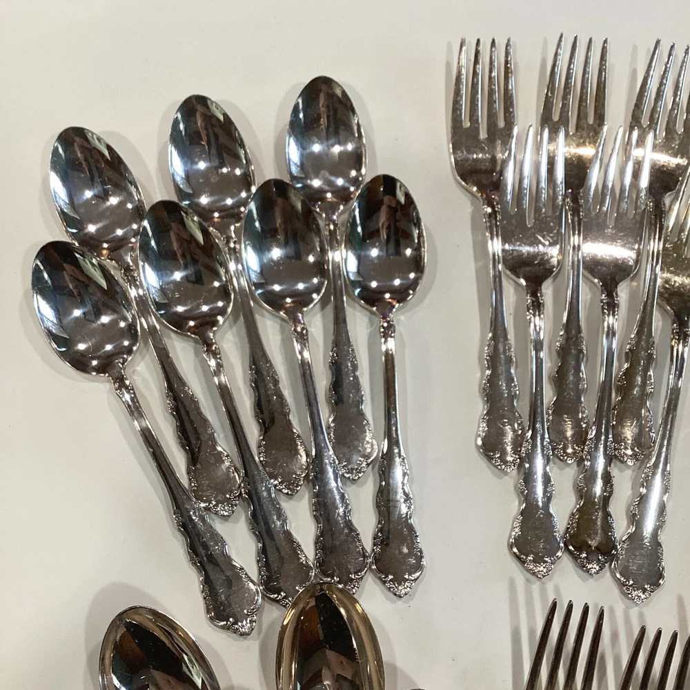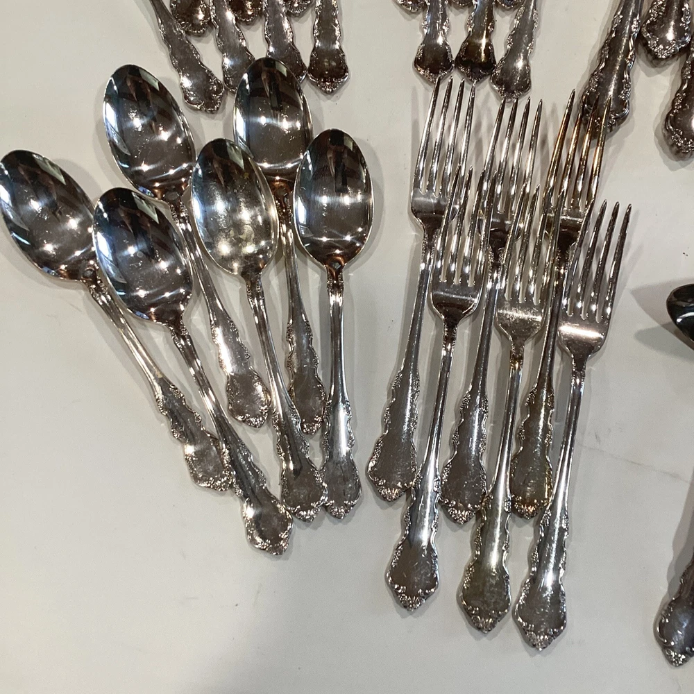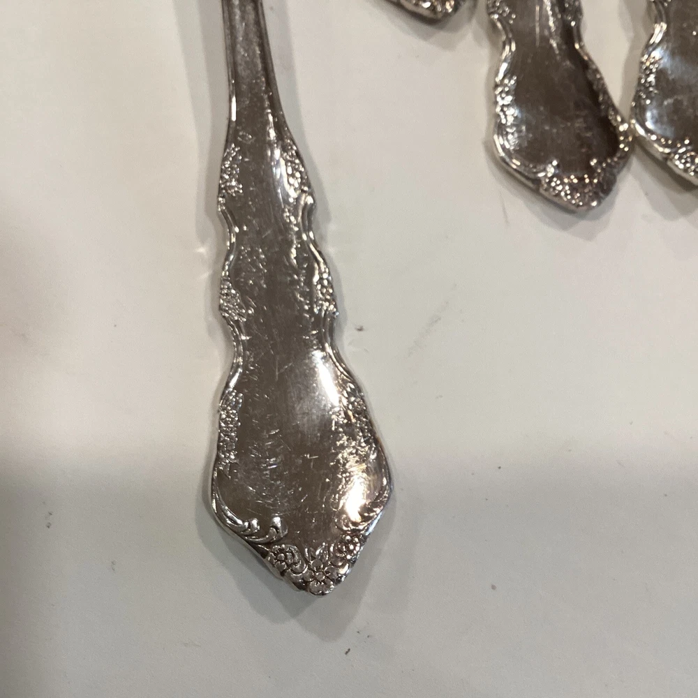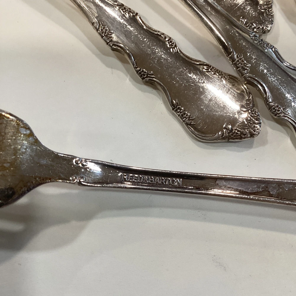 Set of 35 vintage from 1953 Reed & Barton Dresden Rose cutlery set These have minor discoloration they need to polished or cleaned. - 6 knifes - 7 small teaspoons - 6 spoons - 6 forks - 6 salad forks 1 ladle 2 serving spoons 1 serving fork 1 butter knife These need to be polished or cleaned Thank you for shopping send a offer