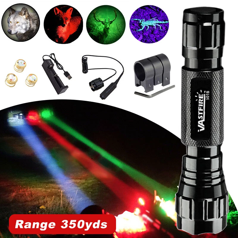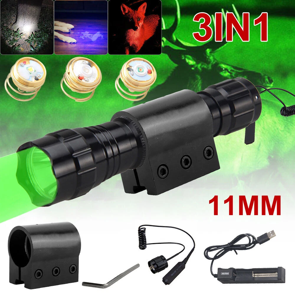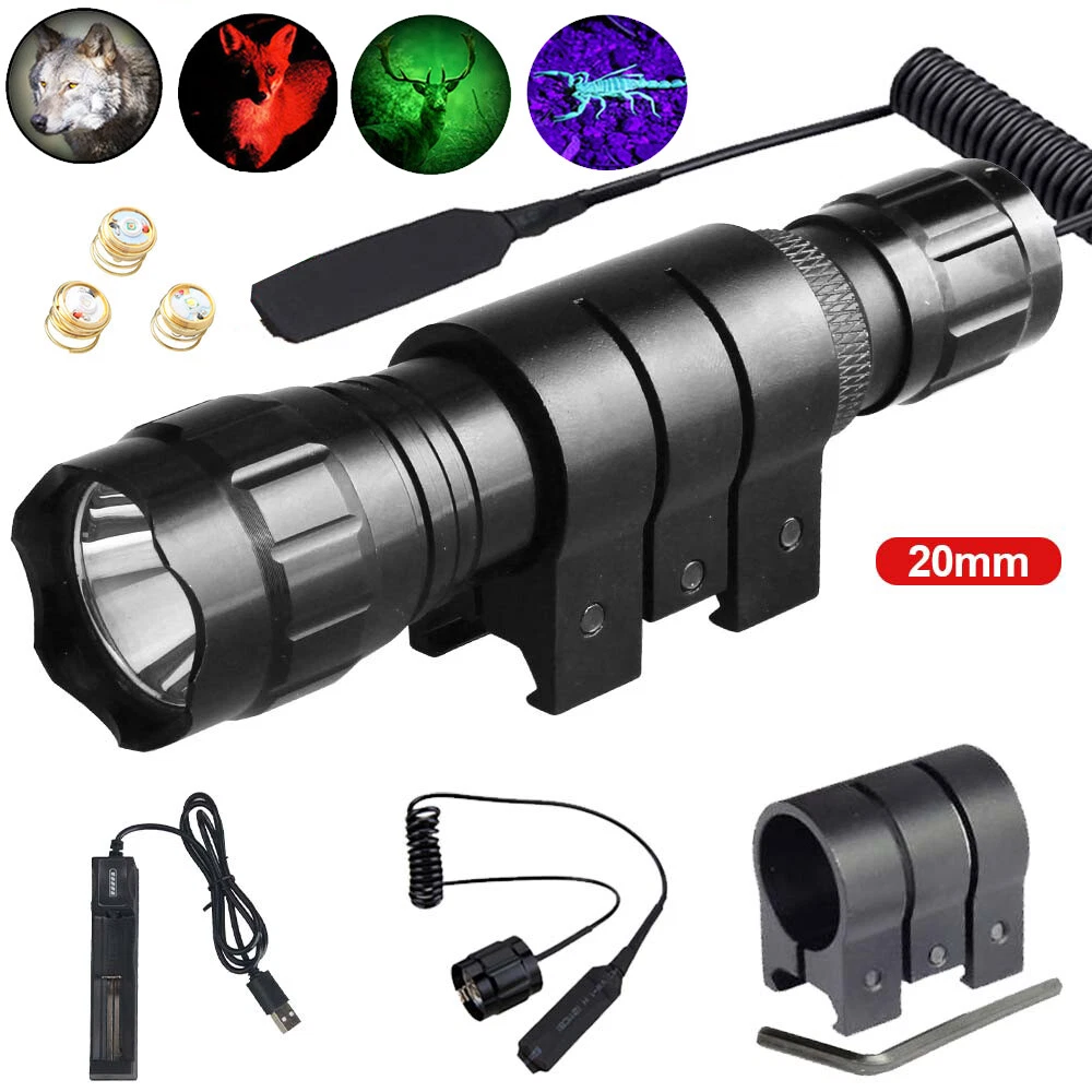 350 Yards 4 IN 1 RGBW LED Flashlight Torch Lamp Picatinny Rail Mount Hunting Kit