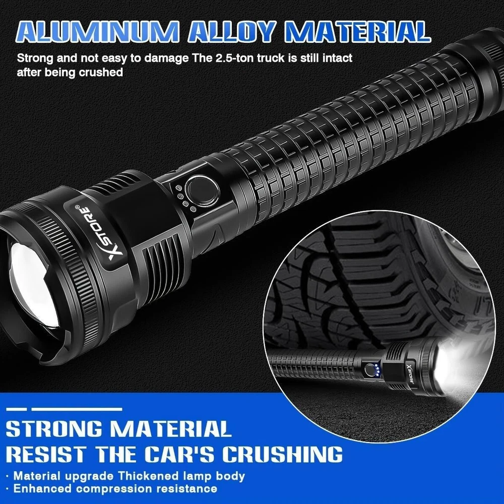 350000000LM Tactical Flashlight Rechargeable Zoomable Outdoor Torch Waterproof