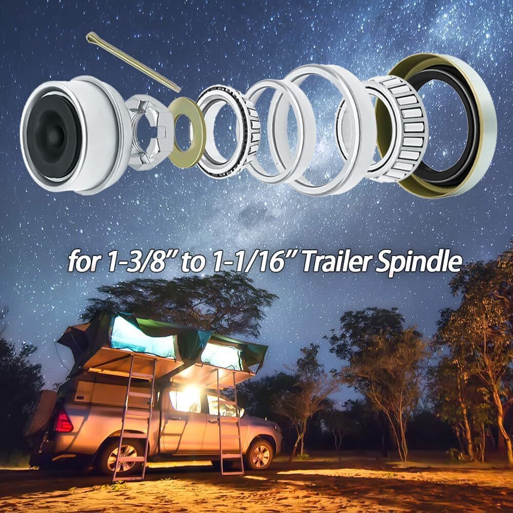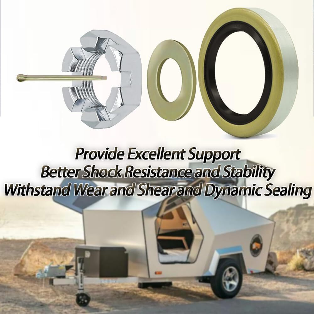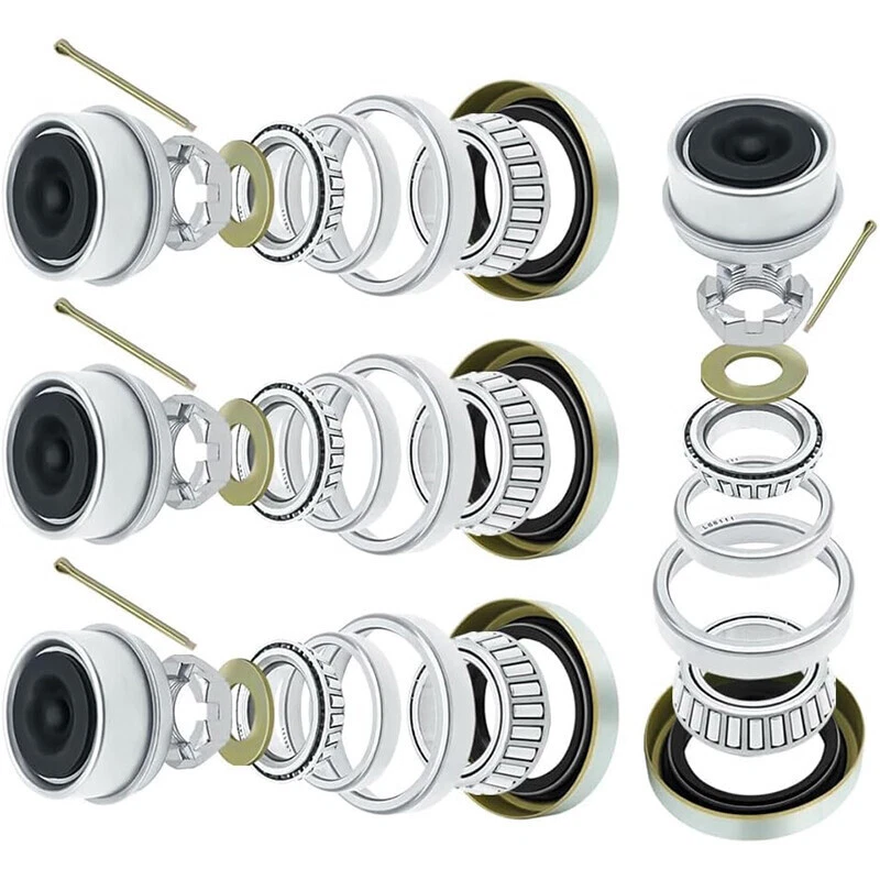 3500LB 1-1/16'' to 1-3/8" Boat Trailer Wheel Axle Bearing Seal Kit L68149 L44649 Item Description Enjoy Reassuring Driving. By installing bearing kit on your trailer axle, help the spindle hub easily copes with high speed rotation, provide excellent support to spindle, reducing friction coefficient of hub, so you can enjoy a quiet, smooth and steady driving experience. No More Leaking. With Doulbe Lip Grease Seals and Dust Cap made with mild steel, seal with NBR rubber, effectively prevent the intrusion of pollutants, expressive dynamic sealing performance and better pressure resistance. Once for all solve the leak problem. No More Shaking Spindle. Install axle castle nut kit to enjoy it's excellent shock resistance, withstand wear and shear and a good reuse performance, with matching washer, cotter pin, once for all fix the shaking, leaking trailer pindle. One Package for All. Sizes are mark on P5. Including 4 set of inner&outer bearing and race(L68149/L68111/L446494/L44610), 4 grease seal, 4 castle nut, 4 washer, 4 cotter pin, satisfy your need of multiple repairs, save the trouble to go to the local shop, get all the trailer accessories you want one stop. Features 【IMPROVED PERFORMANCE】 Upgrade your trailer axle's performance with our 3500 lb trailer axle bearing kit. By reducing friction and ensuring smoother rotation, this kit protects rotating parts and maintains proper positioning of the rotation axis, providing exceptional support for the spindle. 【UNIVERSAL FIT】 This wheel straight idler trailer axle kit is designed to fit 3500lb 1-1/16'' to 1-3/8'' trailer axles, spindle #84, and EZ-Lube axles. Our premium quality materials and construction ensure low wear, low vibration, and low working noise, resulting in a longer lifespan and improved performance. 【PREMIUM QUALITY】 We believe in delivering only the best quality products to our customers. That's why our wheel L68149& L44649 bearing kit is made with chrome steel bearings and all trailer hub parts are constructed with high-quality materials. Trust in our expert craftsmanship and commitment to excellence for a reliable and long-lasting product. 【12-MONTH WARRANTY】 If for any reason at all, you are not fully satisfied with the boat 3500LB bearing kit, simply contact us through amazon message at any time. We will provide comprehensive quality assurance for our product. Specifications Condition:100% Brand New Warranty: 90 Day Free Return:30 Day Use: 3500 lb Trailer Axles Inner Bearing L68149, I.D. 1.378'' Inner Race L68111, O.D. 2.362'' Outer Bearing L44649, I.D. 1.063'' Outer Race L44610, O.D. 1.980'' Grease Seal 171255TB (10-19) Double Lip, Spindle #84 1.719'' x 2.565'' Package Included Inner Bearing L68149 x 4 pcs Inner Race L68111 x 4 pcs Outer Bearing L44649 x 4 pcs Outer Race L44610 x 4 pcs Grease Seal 171255TB (10-19) x 4 pcs Washer x 4 pcs Cotter Pin x 4 pcs As pictures show FAQ: I purchased by mistake, how do I cancel the order? Please contact us ASAP. If the item has not been shipped out we can cancel the order for you. If the item was shipped out you can refuse the package and wait for the item to return to us. I received your item but it does not fit or is defective Please contact us so we can assist you on the matter. Buy with confidence Our quality is based on meeting the requirements of the manufacturer and improvement them in design problems manufacture. NOTE: (1)It would be highly appreciated if you might contact us first once you have any problems concerning the items. And you can expect all the issues would be resolved ASAP! (2)Please let us know before you send us the neutral/negative feedback that wont help to finish the issues. And I will definitely try my best to provide the best solutions which would meet our satisfactory! (3)According to the distance of the receipt address items would be sent from CA or NJ