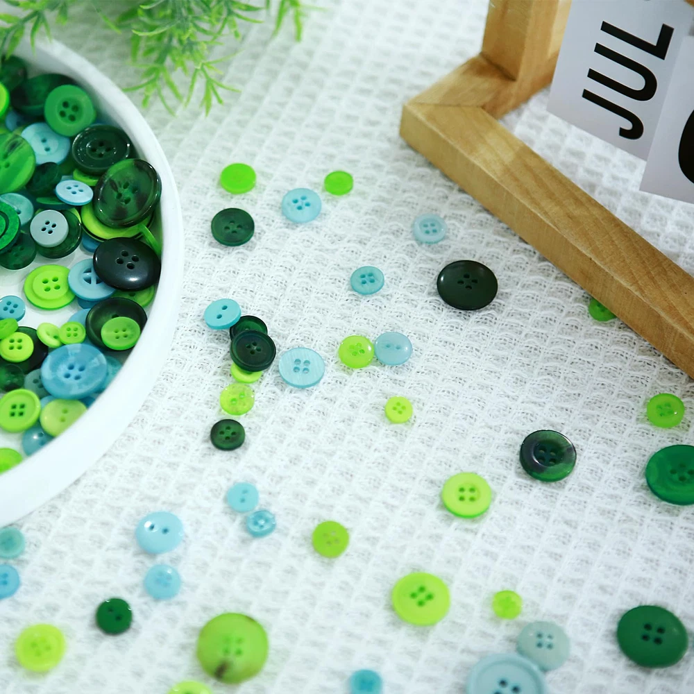 Material: Round sewing craft buttons are made of resin, the surface is smooth, waterproof and durable. Sizes and Colors: The diameters range from 0.7 cm/ 0.28 inch to 2.5 cm/ 1 inch. And mixed colors can meet your demand for sewing and DIY. Quantity and weight: package about 350-400 resin buttons, weighing 165g, 2-hole and 4-hole decorative buttons. Easy to Use: Classic round shaped buttons, no harmful corner. With the holes you can sewing it tightly to soft materials. With the flatback you can also stick it to flat surfaces with some glue or tape. Wide Applications:These buttons can be used for Crafting, knitting, crochet, scrapbooking, sewing, card making and embelishments, suitable for button sorting, crafts making, clothes sewing and scrapbook decoration, etc.