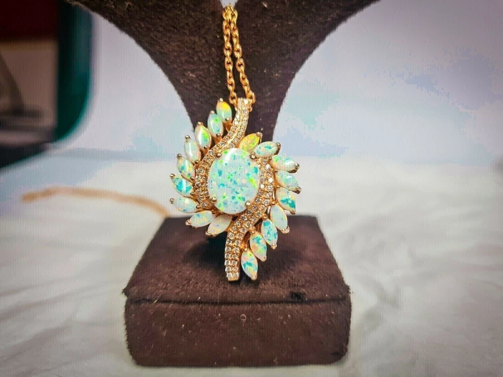 3.50Ct Oval Lab-Created Fire Opal Diamond Women's Pendant 14K Yellow Gold Plated
