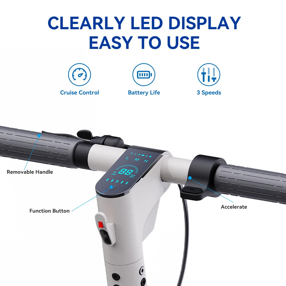 1. This electric scooter is a game-changer! The 350W motor delivers smooth, powerful rides, easily handling hills up to 15 degrees. I love the long 30km range—perfect for daily commutes. The dual braking system feels super safe, and the bright headlights make night rides worry-free. The 9-inch pneumatic tires and shock absorption give a comfortable ride even on rough roads. Folding it down takes seconds, making storage a breeze. The app adds cool features like speed adjustment. Sturdy yet lightweight, it’s ideal for adults who want reliability and fun. Highly recommend for anyone looking for a high-performance, portable scooter!