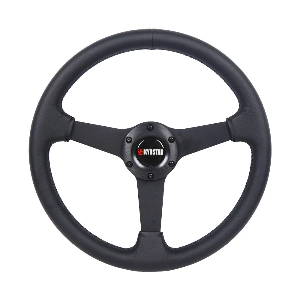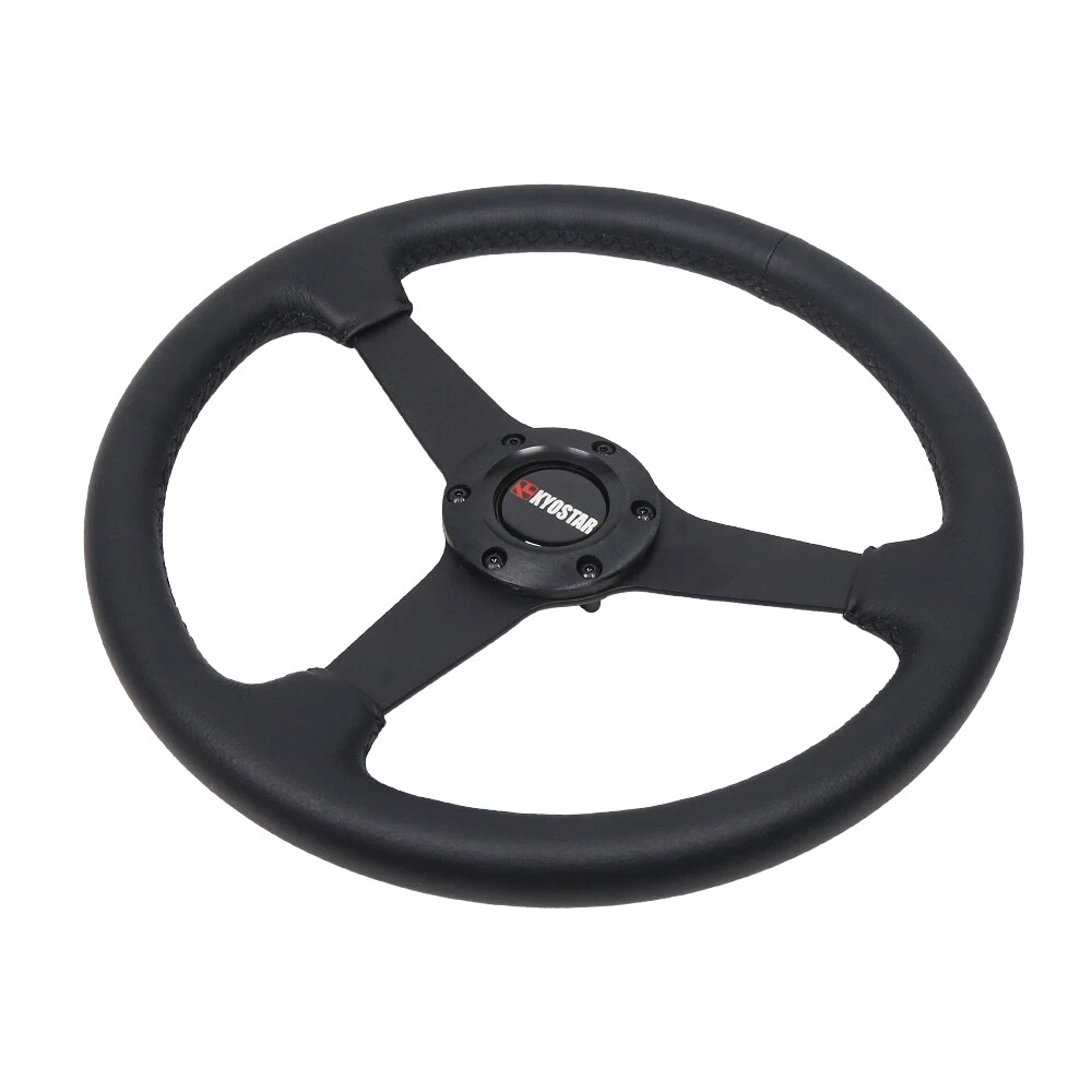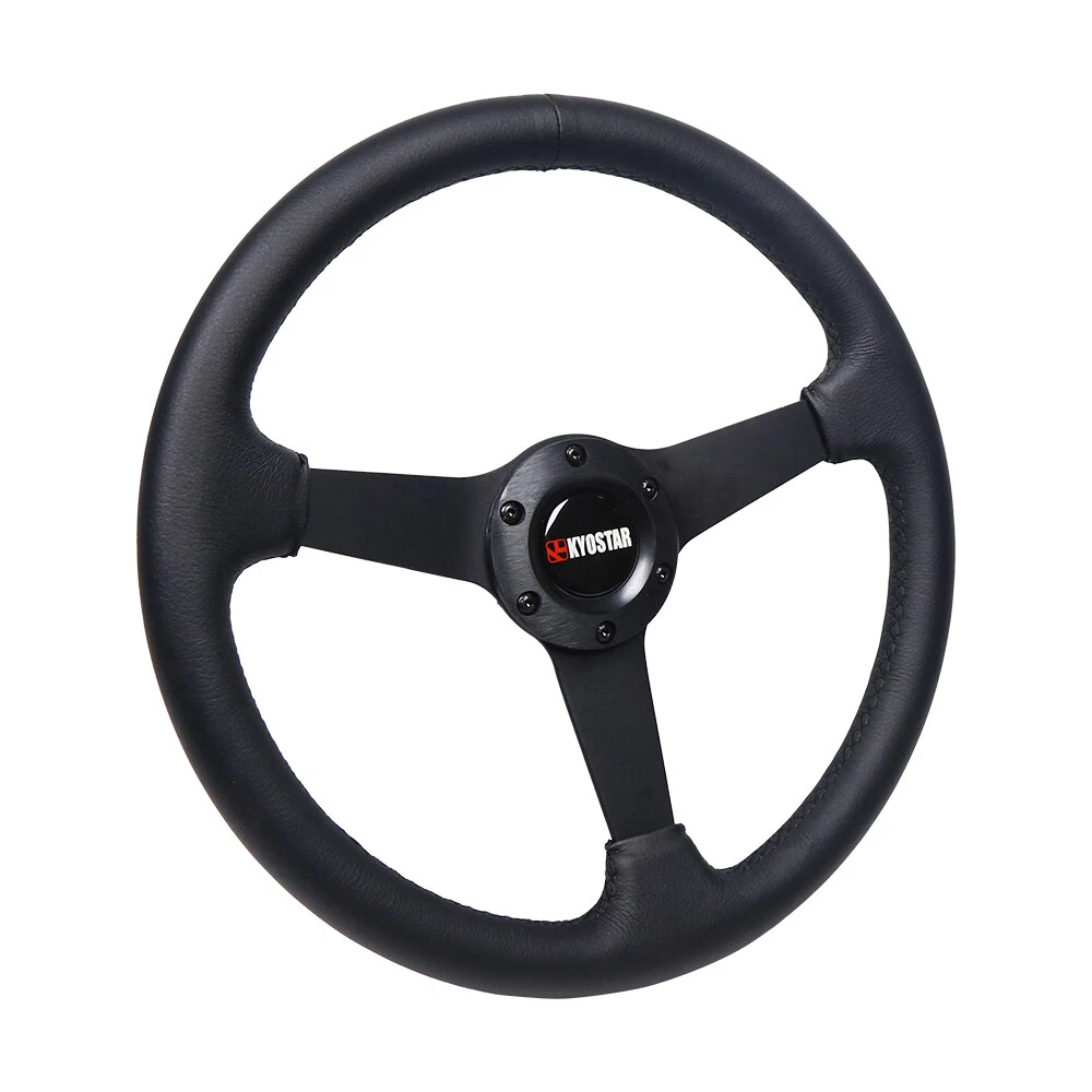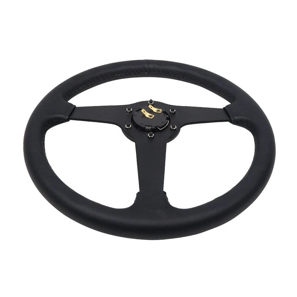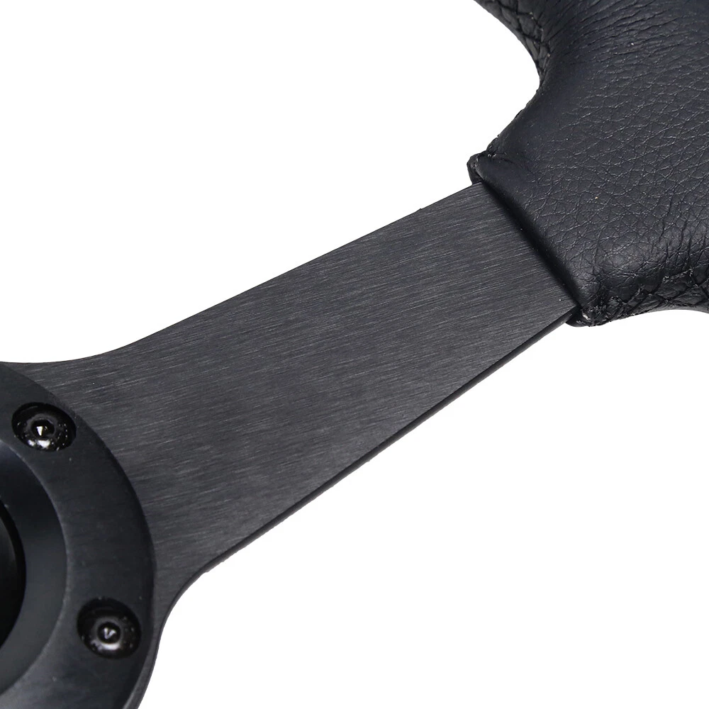 350mm 13.78" Leather 6-Bolt Universal Black Flat Racing Sport Steering Wheel 350mm 13.78inch Leather 6-Bolt Universal Black Flat Racing Sport Steering Wheel Description: Quality Material: Drifting flat dish steering wheel is made of high quality aluminum+leather for maximum durability, which has strong resistance, can withstand great impact, and better escort for you. Comfortable To Use: Sophisticated workmanship for comfortable touching feeling, provides better grip, allowing you to better control the driving direction. Easy Installation: This 6‑bolt steering wheel comes with horn wire, easy installation without modification. Can directly replace the original broken or worn one, brings better driving experience. Upgrade Appearance: This racing steering wheel upgrade brings in proper ergonomics and luxury feeling, can enhance the look of car interiors. Diameter: 350mm/13.78" Depth: 40mm/1.57" Dish Depth PCD: 2.75"/70mm Bolt Pattern: 6-Bolt / Hole Fitment: Universal Compatible with most standard hub adapter, universal for most vehicle and racing car. (TIPS: Hub adapter is NOT included, Before installation, please choose a Steering Wheel Hub Adapter that fits your car model.) The steering wheel is universal, as long as it is equipped with a base suitable for your own model, any steering wheel can be installed. The base is corresponding to the car model. Generally, several different models share the same base, and some bases are not 100% identical to the original car, but need to be changed slightly. Package Including: 1 x Steering Wheel Payment Shipping Handling Sales Taxes Return Policy Contact us Payment We accept PayPal only. Please be sure your shipping address is correct. We will only follow your address listed at the PayPal payment for the shipment. Unpaid item (UPI) complaint will be filed against non-paying buyers after 4 days. Shipping Handling Items will ship out within 1 business days after payment is received. All items are shipped by UPS/USPS/DHL with a tracking number. Tracking number will be added to ebay after the shipment,customers can track the item status on https://www.usps.com T he Approx delivery time is referred as below, Country Approx Delivery Time United States 1-6 working days Canada 6-11 working days Other Country 7-19 working days Above time are for reference ONLY. Shipping might be delay by holidays, events and other uncertainties such as custom inspect. We DO NOT guarantee the arrival time. Sales Taxes Import duties,taxes and charges are not included in the item price Please check with your country customs office for these additional charges (Usually we'll lower the value and mark the item as gift) Return Policy Please contact us before leaving neutral or negative feedback and we will try our best to resolve any issue. Feedback will be left to every buyer who completed the transaction and left positive feedback to us. We accept 30 days return only if item is original. Refund will be issued once we receive your returned items. Buyer is responsible for all return shipping charges. Contact us Please send all correspondence through the eBay messaging system. All eBay message will be replied within 24 hours of receipt or sooner. Our business time is Monday - Friday 9:30 am to 6:30 pm HKT except all Holidays.