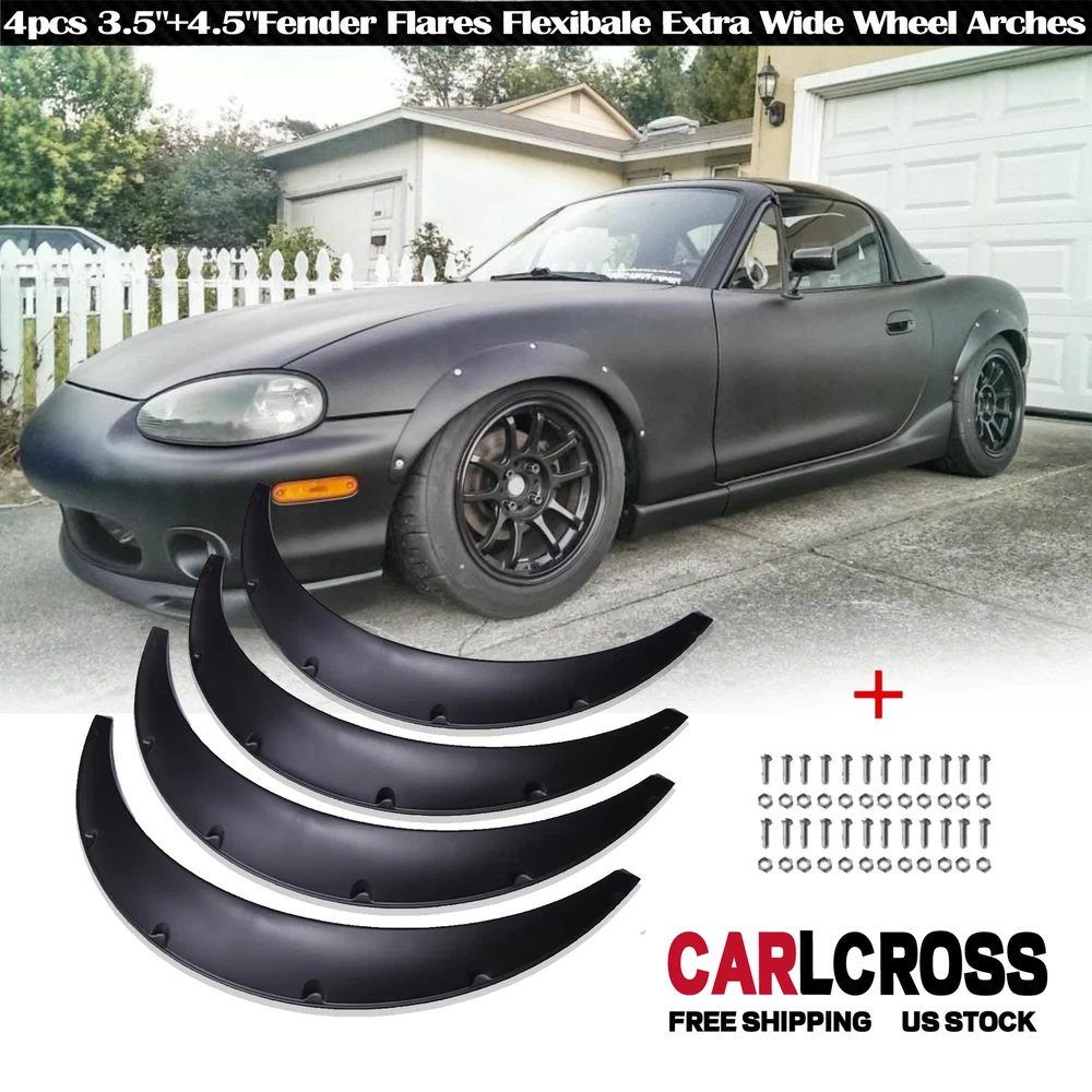 4pcs 3.5"+4.5"Fender Flares Flexibale Extra Wide Wheel Arches For Universal Car Description: Flexible to Resist Cracking High quality injection moulding fender flares with smooth and precise edge cutting finish. Additional Coverage for Larger Tire and Wheel Packages Can Improve Appearance and Styling Dramatically Paintable for Matching with Vehicles' Color. 1 Set of 4 Universal style fender flares Flexible Yet Durable Polyurethane. Protects wheel from mud, scratches, sand and other outer damage. Size: 4pcs include 2Sizes: 2pcs: 91*85*34.5*24cm 2pcs: 81.5*74*30.5*23cm Installation: fender flares installation is normally done in 3 ways: riveted / bolted / sealant silicone. May not fit if other accessories are installed which may get in the way of the Fender Flares (i.e. mudflaps, body molding, ground effects, etc.) This is a general-purpose product. When install it on some models, cutting or trimming needed; or heat gun or hair dryer to help mold the fender flares to your car specifications. Professional installation is highly recommended Package Included: 1 Set of 4 Universal style fender flares 24X Screws Payment: We accept PayPal Only. All payments must be completed within 7 days. Shipping: We do everything we can to ship your orders out as soon as possible. Basically orders are shipped out in 2-4 business day. Terms of Sale: Defective products can be exchanged or returned for full price refund within 30 days after you receive the item.Any returning or exchanging item must be in sound condition and we do not accept any used or worn product. About Us: We are always working hard for maintain high standards of excellence,Please feel free to contact us if you need it,thx. On Jan 16, 2025 at 11:37:50 PST, seller added the following information: