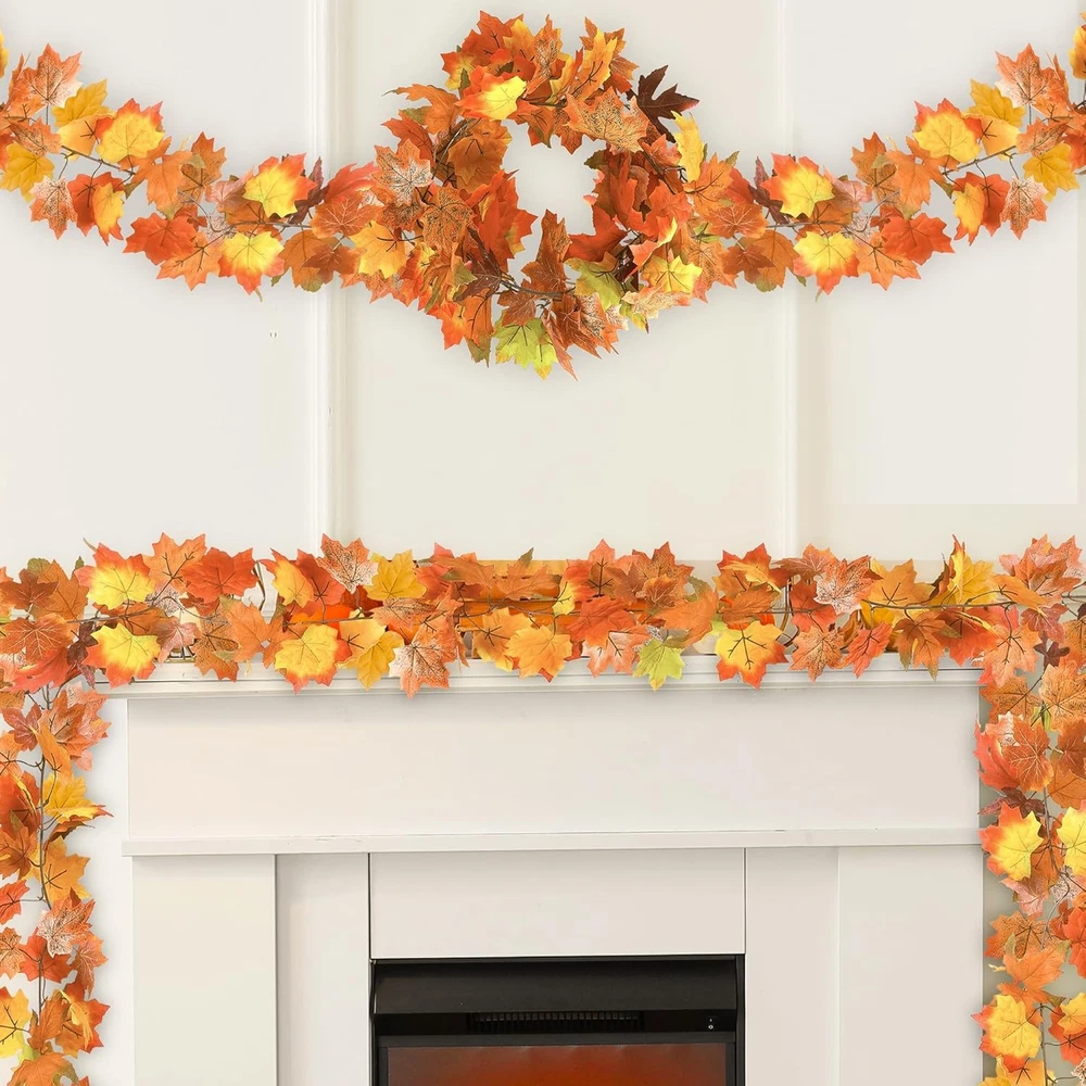 3 Pack 5.9Ft Fall Maple Leaf Garland Orange Autumn Decor
