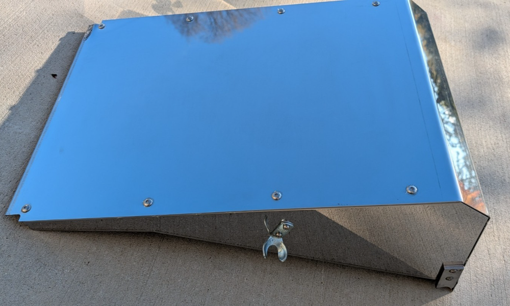 3589174C91 Stainless International Battery Box Cover Lid Assy New with Scratches This cover fits the same as your plastic or aluminum cover. Just looks nicer no need to polish like aluminum. Genuine International cover used on 5900i 5600i HV HX 7300 7400 7500 7600 7700 trucks. The assembly number 3589174C91 and bare cover # 3586230C1 It can replace the Plastic cover P/N 3578369C2 or 3578370C92 Aluminum cover P/N 3599419C2 or 3599966C92 These are new factory scratch and dent. This listing is for covers that have just small scratches with very small dents or dings. They still have the protective covering on the show surfaces. Free shipping to the lower 48 states.