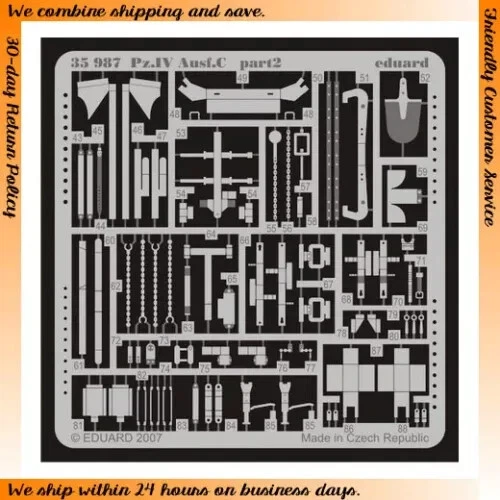 This model upgrade and accessory kit from Eduard Models is designed for the 1:35 scale German Panzer IV Ausf.C by Dragon. The set includes photo-etched parts that will enhance the detail of your armour model. It is recommended for ages 12 and up, and suitable for both boys and girls. This kit is perfect for collectors and hobbyists who are looking to enhance the authenticity and accuracy of their Panzer IV Ausf.C model. The kit includes detail-up parts that will add a new dimension to your model and make it stand out. It is a must-have for anyone who is passionate about model-making and wants to take their skills to the next level.