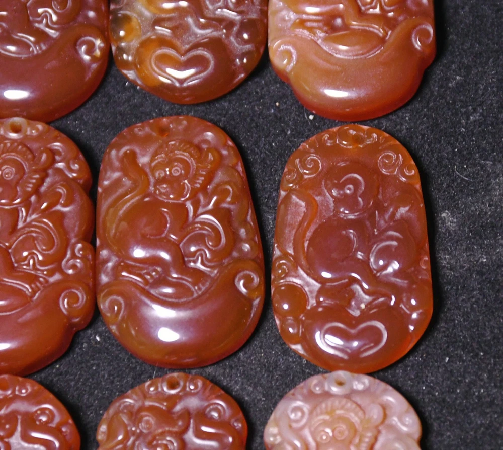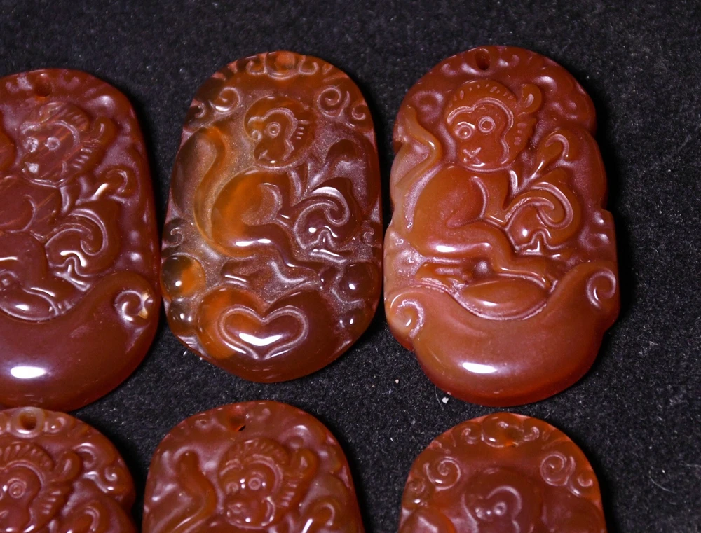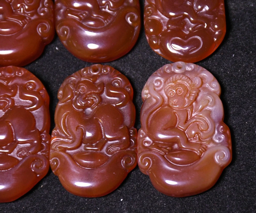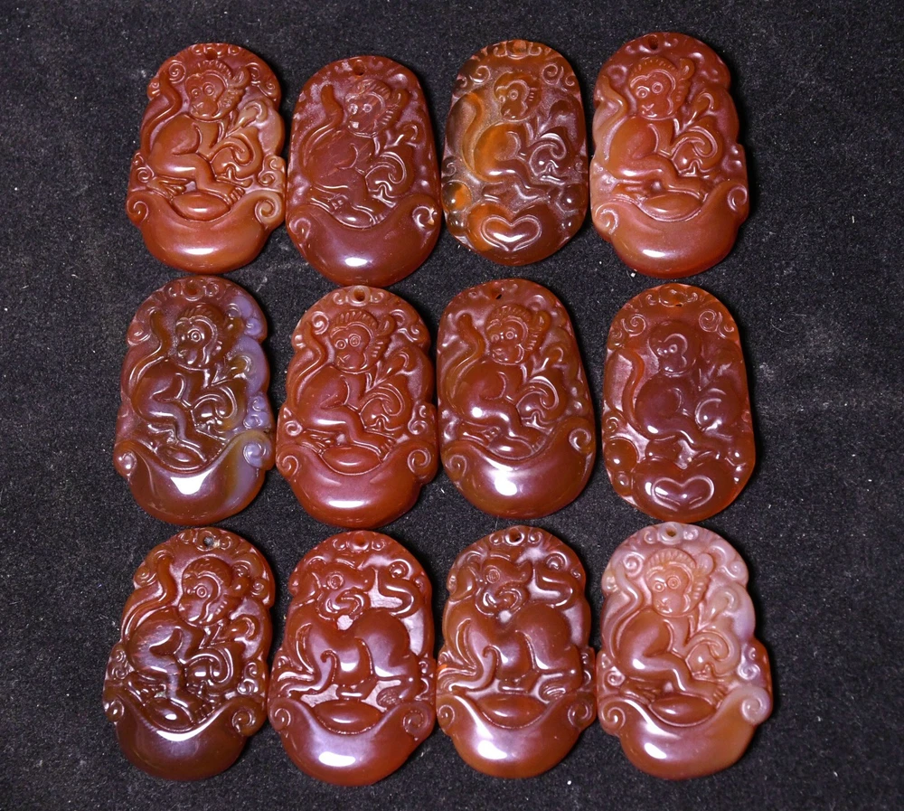 3.5CM Old China Dynasty Agate Onyx Carved Monkey Animal Amulet Pendant Set