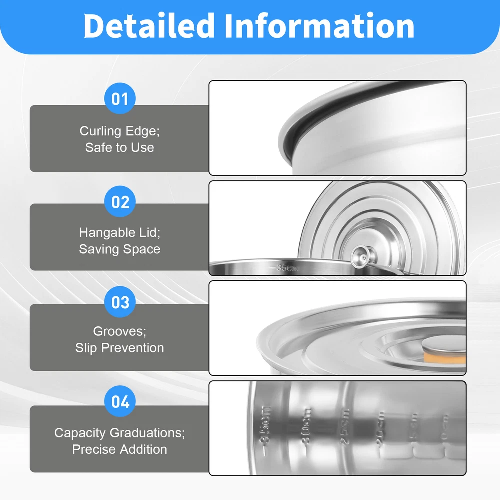 Description This exquisite and timeless stockpot is meticulously crafted from premium 201 stainless steel, embodying an ideal fusion of durability and culinary elegance. The pot's versatility is exemplified by its ability to accommodate both solid and liquid fare, transcending the boundaries of conventional cookware. It seamlessly transitions from simmering hearty stews brimming with tender vegetables and succulent meats, to gently boiling aromatic broths teeming with delicate herbs and spices. Indeed, it is a culinary chameleon, adapting flawlessly to a myriad of gastronomic scenarios. Key Feature Durable & Sturdy: The 201 stainless steel body with a thickness of 1.2mm offers durability and sturdiness for this product. Large Capacity: It measures 14.76*14.17 inches with a large 35L/9.25Gal Stock Pot Stainless Steel Large Kitchen Soup Big Cooking Restaurant Welcome to our store~ Description This exquisite and timeless stockpot is meticulously crafted from premium 201 stainless steel, embodying an ideal fusion of durability and culinary elegance. The pot's versatility is exemplified by its ability to accommodate both solid and liquid fare, transcending the boundaries of conventional cookware. It seamlessly transitions from simmering hearty stews brimming with tender vegetables and succulent meats, to gently boiling aromatic broths teeming with delicate herbs and spices. Indeed, it is a culinary chameleon, adapting flawlessly to a myriad of gastronomic scenarios. Key Feature Durable & Sturdy: The 201 stainless steel body with a thickness of 1.2mm offers durability and sturdiness for this product. Large Capacity: It measures 14.76*14.17 inches with a large capacity of 30 Quart, fulfilling your life storage and culinary needs at once. Easy to Clean: Its anti-corrosion and smooth material with polishing treatment makes it easy to clean. It just needs to be cleaned like any other kitchenware for your convenience. Easy to Move: Our stockpot is designed with tightly welded handles on both sides of the body to make it easy to move or pour out internal items at any time and anywhere. Multifunctional: The airtight lid keeps food fresh and clean when storing, but also locks in heat to speed up cooking when making soup. Well-intentioned Design: Its bottom fits both with durability in mind because of the right thickness (0.8 mm) and also with better heat conduction and faster cooking in mind because it is designed to be slightly thinner than the barrel. Idea Gift: The stockpot is the ideal gift for cooking, and its airtight and large-capacity features are also ideal for stockpilers or caterers. Guaranteed Customer Service: Your satisfaction is our primary goal. If you have any questions about this stockpot, please feel free to contact us, and we will reply and provide the solution to you as soon as possible. Details Curling Edge: The curling edge design aims to protect you and your family members from scratches and bruises when using it. Anti-slip Grooves: The anti-slip grooves on the lid surface can prevent the lid from slipping off the bucket. Hangable Lid: The round handle on the lid hangs over the edge of the bucket, saving space and keeping the lid hygienic. Capacity Graduations: The capacity graduations inside of the stockpot help you know the capacity items that may be left. Application It is ideal for storing various liquid/solid items, such as soup, wine, rice, flour, cereals, tea, spices, etc, in hotels, restaurants, kitchens, warehouses, etc. It also can be used to cook/heat food on a variety of stoves, such as solenoid stoves, gas stoves, electric stoves, etc. Specifications Material: 201 Stainless Steel; Steel Color: Silver Style: Modern, Simple Shape: Cylinder Surface Treatment: Polishing Process; Butt Welding Number of Items: 1PC Wall Thickness: 1.2mm Bottom Thickness: 0.8mm Max Capacity: About 35L/30 Quart Lid Diameter: 37.5cm/14.76inch Gross Weight: 3.85kg/8.48lbs Net Weight: 3.05kg/6.72lbs Product Size (D*H): 47*36cm/18.5*14.17inch Package Size: 38.5*38*40.5cm/15.15*14.96*15.94inch Package Included 1*Stockpot Notes Only the stockpot is included in the package. Please allow the slight color difference caused by the shooting light and 1-3cm error due to manual measurement, and make sure you do not mind before you order. Payment Delivery details Terms of sales About us Contact us Payment We accept ebay payment 。 Fees such as import duties, taxes are not included in the item price or shipping costs. These charges are the buyer's responsibility. Delivery details Shipping: 2-9 working days to: USA Terms of sales We maintain high standards of excellence and strive for hundred percent customer satisfaction. Feedback is very important to us. We hope that you contact us immediately before you give neutral or negative feedback, so that we can address your concerns. It is impossible to address issues if we do not know about them! About us Your satis faction is our ultimate goal. We work hard to earn your trust and future business. Our certified technicians have tested each item before shipping. The unit comes with 1 year limited warranty on all manufacturing defects. a) If you receive a defective item, you may return it or ask for a discount. Please contact us within 14 days after you receive the package. b) What you returned must be intact and in its original packaging as re? u. Customer is responsible for shipping costs of the returned item. c) We will cover the cost of shipping back t with the shipping rate indicated in the registration page. We will send you a new unit or refund the full payment you paid. Thank you. Contact us Business Hour Business Hour: Monday To Friday: 8:30 AM to 5:00 PM (Beijing China time) Due to time zones, our reply to your questions may not be immediately. But within above working time, we will reply your email within 24 hours. If it's non-workdays, please kindly be patient and wait till Monday. Please contact us with ebay message. Please feel free to contact us i