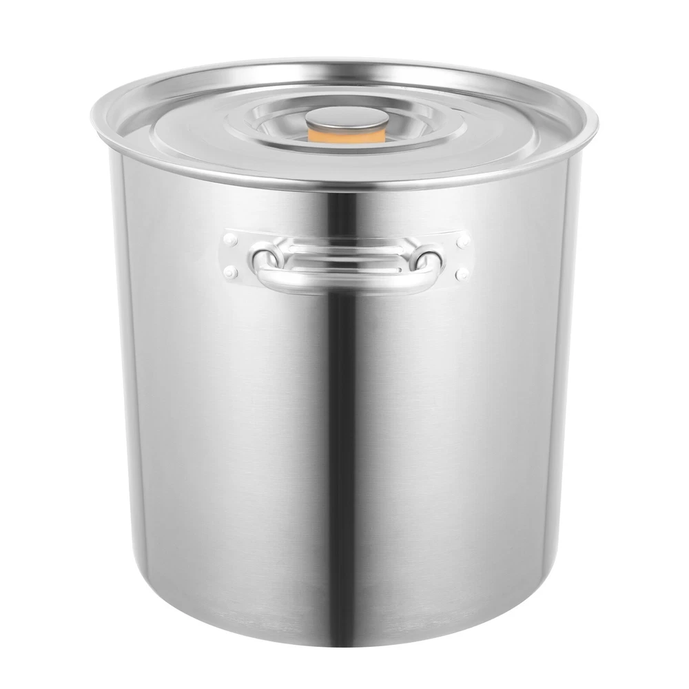 Specifications Material: 201 Stainless Steel; Steel Color: Silver Style: Modern, Simple Shape: Cylinder Surface Treatment: Polishing Process; Butt Welding Number of Items: 1PC Wall Thickness: 1.2mm Bottom Thickness: 0.8mm Max Capacity: About 35L/30 Quart Lid Diameter: 37.5cm/14.76inch Gross Weight: 3.85kg/8.48lbs Net Weight: 3.05kg/6.72lbs Product Size (D*H): 47*36cm/18.5*14.17inch Package Size: 38.5*38*40.5cm/15.15*14.96*15.94inch Package Included 1*Stockpot 35L/9.25Gal Stock Pot Stainless Steel Large Kitchen Soup Cooking Brew with Lid Description This exquisite and timeless stockpot is meticulously crafted from premium 201 stainless steel, embodying an ideal fusion of durability and culinary elegance. The pot's versatility is exemplified by its ability to accommodate both solid and liquid fare, transcending the boundaries of conventional cookware. It seamlessly transitions from simmering hearty stews brimming with tender vegetables and succulent meats, to gently boiling aromatic broths teeming with delicate herbs and spices. Indeed, it is a culinary chameleon, adapting flawlessly to a myriad of gastronomic scenarios . Key Feature Durable & Sturdy: The 201 stainless steel body with a thickness of 1.2mm offers durability and sturdiness for this product. Large Capacity: It measures 14.76*14.17 inches with a large capacity of 30 Quart , fulfilling your life storage and culinary needs at once. Easy to Clean: Its anti-corrosion and smooth material with polishing treatment makes it easy to clean. It just needs to be cleaned like any other kitchenware for your convenience. Easy to Move: Our stockpot is designed with tightly welded handles on both sides of the body to make it easy to move or pour out internal items at any time and anywhere. Multifunctional: The airtight lid keeps food fresh and clean when storing, but also locks in heat to speed up cooking when making soup . Well-intentioned Design: Its bottom fits both with durability in mind because of the right thickness (0.8 mm) and also with better heat conduction and faster cooking in mind because it is designed to be slightly thinner than the barrel . Idea Gift: The stockpot is the ideal gift for cooking, and its airtight and large-capacity features are also ideal for stockpilers or caterers. Guaranteed Customer Service: Your satisfaction is our primary goal. If you have any questions about this stockpot, please feel free to contact us, and we will reply and provide the solution to you as soon as possible. Details Curling Edge: The curling edge design aims to protect you and your family members from scratches and bruises when using it. Anti-slip Grooves: The anti-slip grooves on the lid surface can prevent the lid from slipping off the bucket. Hangable Lid: The round handle on the lid hangs over the edge of the bucket, saving space and keeping the lid hygienic . Capacity Graduations: The capacity graduations inside of the stockpot help you know the capacity items that may be left. Application It is ideal for storing various liquid/solid items, such as soup, wine, rice, flour, cereals, tea, spices, etc, in hotels, restaurants, kitchens, warehouses, etc. It also can be used to cook/heat food on a variety of stoves, such as solenoid stoves, gas stoves, electric stoves, etc. Specifications Material: 201 Stainless Steel; Steel Color: Silver Style: Modern, Simple Shape: Cylinder Surface Treatment: Polishing Process; Butt Welding Number of Items: 1PC Wall Thickness: 1.2mm Bottom Thickness: 0.8mm Max Capacity: About 35L/30 Quart Lid Diameter: 37.5cm/14.76inch Gross Weight: 3.85kg/8.48lbs Net Weight: 3.05 kg/6.72lbs Product Size (D*H): 47*36cm/18.5*14.17inch Package Size: 38.5*38*40.5cm/15.15*14.96*15.94inch Package Included 1*Stockpot Notes Only the stockpot is included in the package. Please allow the slight color difference caused by the shooting light and 1-3cm error due to manual measurement, and make sure you do not mind before you order. Payment Delivery details Terms of sales About us Contact us Payment We accept ebay payment 。 Fees such as import duties, taxes are not included in the item price or shipping costs. These charges are the buyer's responsibility. Delivery details Shipping: 2-9 working days to: USA Terms of sales We maintain high standards of excellence and strive for hundred percent customer satisfaction. Feedback is very important to us. We hope that you contact us immediately before you give neutral or negative feedback, so that we can address your concerns. It is impossible to address issues if we do not know about them! About us Your satis faction is our ultimate goal. We work hard to earn your trust and future business. Our certified technicians have tested each item before shipping. The unit comes with 1 year limited warranty on all manufacturing defects. a) If you receive a defective item, you may return it or ask for a discount. Please contact us within 14 days after you receive the package. b) What you returned must be intact and in its original packaging as re? u. Customer is responsible for shipping costs of the returned item. c) We will cover the cost of shipping back t with the shipping rate indicated in the registration page. We will send you a new unit or refund the full payment you paid. Thank you. Contact us Business Hour Business Hour: Monday To Friday: 8:30 AM to 5:00 PM (Beijing China time) Due to time zones, our reply to your questions may not be immediately. But within above working time, we will reply your email within 24 hours. If it's non-workdays, please kindly be patient and wait till Monday. Please contact us with ebay message. Please feel free to contact us if you have any questions. Monday To Friday: 8:30 AM to 5:00 PM (Beijing China time) Due to time zones, our reply to your questions may not be immediately. But within above working time, we will reply your email within 24 hours. If it's non-workdays, please kindly be patient and wait till Monday. Please contact us with ebay message. Please fe