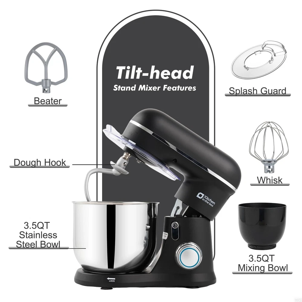 two bowls Stand Mixer,a best assistant of your kitchen.Equipped with3.5Qt Stainless steel bowl and 3.5QT mixing bowl, suitable for all your family baking need, nested bowl design can easy to storage in the cabinet,such a good helper for space-saving!Otherwise,kitchen mixer has many colors to choose,meet different aesthetic needs. As daily mixer,it is easy to operate and clean up,press the button to turn off the tilt head when mixer running,which is more safer.And transparent anti-splash lid could prevent the ingredient making a mess. This Kitchen Mixer has 10 different speed options,suitable for mixing bread dough, thick batters, meringues, and whipping cream, plus lower speeds for stirring and finessing your most delicate concoctions,could suit perfectly to different ingredients.Chassis 4 stronger suckers,can keep the machine steady and avoid moving or bounce during operation. More importantly,our electric mixer upgraded the multi attachments,aluminium dough hook and flat beater,stainless steel whisk,more sturdy and durable.And dishwasher safe. Feature 3.5Qt stainless steel bowl with dual Handles Extra 3.5QT plastic mixing bowl Planetary rotations for thorough mixing Transparent anti-splash lid without opening 10 speeds 4 anti-slip suction feet Upgraded aluminium dough hook and flat beater,stainless steel whisk Tilt-up head allows easy removing of bowl Low operation noise Parameter: 120V 60Hz 300W regular, 800W Max Package include: Machine unit Mixing beater Egg whisk Dough hook Scraping rod Anti-splash lid 3.5QT + 3.5QT Two Bowls: The small stand mixer includes a 3.5QT stainless steel bowl and a 3.5QT food-safe plastic bowl. Designed for small portions, suitable for new baker, 1-2 members family or couples, offering flexibility for different mixing and baking needs. The nesting design of the two bowls makes them easy to store. Compact Design and Matte Finish: The mini kitchen mixer weighs 5lbs with dimension 11.5*6.5*10.8 In, lightweight and easy to carry and store, which could help space-saving. Perfectly suitable for small kitchen, apartment, or limited storage space. This kitchen mixer comes in a variety of stylish colors with a sleek matte finish, adding a touch of style to any kitchen. 10 Speeds and Tilt Head Design - This small kitchen mixer has 10 different speed options,suitable for mixing bread dough, thick batters, meringues, and whipping cake cream, plus lower speeds for stirring and finessing your most delicate concoctions,could suit perfectly to different ingredients. Tilt-head design mixer allows access to install or uninstall bowls and accessories easily. Upgraded Accessories and Dishwasher Safe- Aluminium dough hook and flat beater with protection layer,stainless steel whisk are all easy to attach,more sturdy and durable. The stainless steel bowl and all accessories are dishwasher-safe for effortless cleanup. Excellent Gift and Support - The electric stand mixer is also an ideal gift for your family and friends. We have confidence in the quality of our products, if you have any questions when received or during your using, please feel free to contact us via Amazon. We provide 24/7 online after-sales service for you.