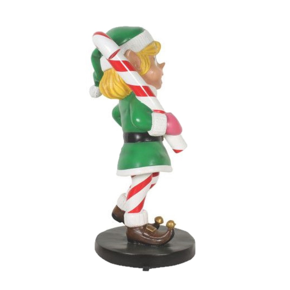Garden Elements Fiberglass Elf Girl With Candy Cane Christmas Decor, 35in PRODUCT DESCRIPTION This cute elf girl is the perfect addition to your holiday display! Key Product Features Handcrafted design displays detailed craftmanship, with each exquisite detail captured Durable fiberglass construction is resistant to weathering, corrosion, and UV damage For indoor or outdoor use Dimensions (LxWxH): 17 in x 16 in x 35 in Lightweight design makes it easy to relocate and put in storage during the off season Welcome your guests with this charming statue. This welcoming elf will surely delight your visitors with its cheerful smile. Wearing her Christmas outfit, this statue will match your holiday setup! Standing at 35 inches, this elf-inspired fiberglass-made figurine will surely be the attention-grabbing decoration of your home. If kept outside, you will need to re-coat the clear protective coating every 12 to 18 months in order to preserve the appearance and integrity. This can be done with a good quality enamel clear gloss.