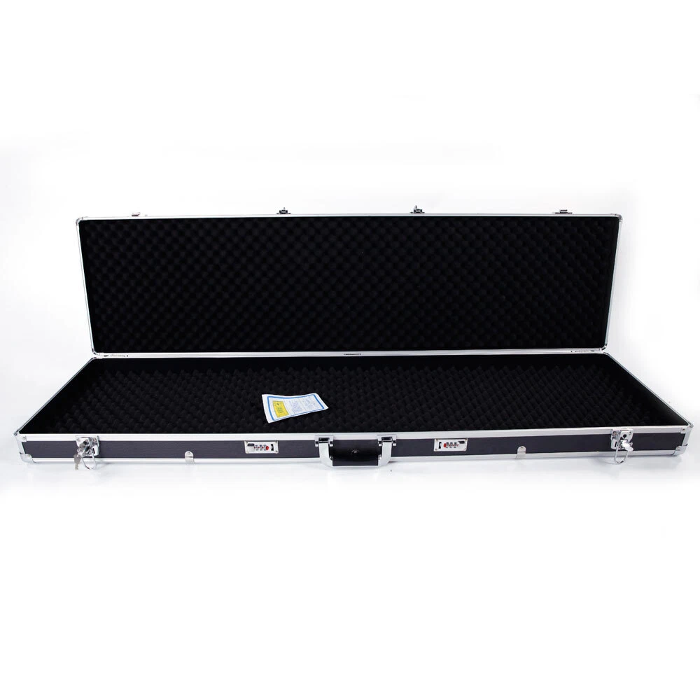 Introductions: With the latest technology, this Aluminum New Framed Locking Gun Pistol HandGun Lock Box Case is made of aluminum & ABS & foam material, meaning you can trust that the case is incredibly durable. This case features digit combination locks, allowing maximum security for your guns. What's more, the safe comes with a high density sponge lining in the interior of the case that provides surrounding support for your guns. With so many advantages, what are you still waiting for? Features: 1. Foam inserts to protect guns from Damage 2. Non-slip handle for easy and comfortable grip 3. Digit combination locks for maximum security 4. Anti-skid bullet feet for case stability in vertical position 5. Flexible switch for ease of open 6. Made of durable aluminum & ABS & foam material Specifications: 1. Material: Aluminum & ABS & Foam 2. Color: Black 3. Dimensions: (53.14 x 13.78 x 4.72)" / (135 x 35 x 12)cm (L x W x H) 4. Weight: 13 lbs / 5.9 kg Package Includes: 1 x Gun Case 1 x Instruction 2 x Keys