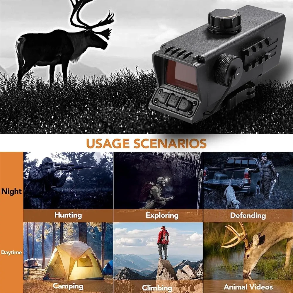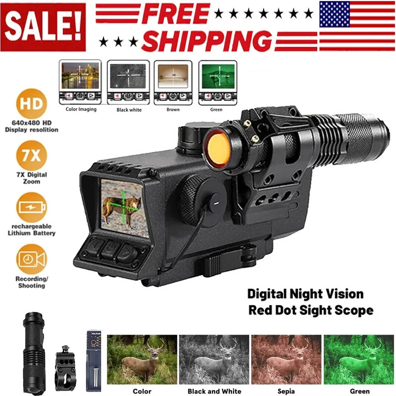 eBay MS32 Digital Night Vision Rifle Red Dot Sight 7X Zoom Hunting Telescope NV Sight Features: ◆ This product integrates the digital zoom function: instantly shorten the distance with the shooting target; ◆ Video recording function: record every wonderful moment and share it with many people; ◆ A variety of reticle: close-range, medium-distance, reticle for various usage scenarios; ◆A variety of reticle and colors: the type and color of the reticle can be selected according to personal preference and use environment; ◆BDC(Ballistic Assist Function): Quickly assist aiming, according to the measured target distance, operate the button, the system will automatically prompt the appropriate center assist aiming position; the upper right corner shows: give the calibration value for reference calibration; ◆Ranging: Turn on/off the ranging caliper, take the target with a height of 1.7 m as the reference object, and measure the distance from bottom to top according to the image of the target in the display screen; ◆Mil/MOA switch: It can be switched according to the habits of users in different countries; ◆Convenient calibration: After the first shot, move the center point of the reticle to coincide with the impact point to complete the calibration; ◆ Multi-language: built-in 7 languages, you can choose by yourself; ◆ Specifically designed for rifle and shotgun shooting: it can be mounted directly to a Picainny rail, also known as a fishbone, also known as a MIL-STD-1913 rail or STANAG 2324 rail, the night vision Aiming is IP67 waterproof grade; Specifications: TRD10 VS TRD10 Pro(MS32) 1. This product is a night vision device for observing objects in dark or weak light, with infrared light, the distance beyond 250M can be observed in dark environment. 2. The objective lens of the TRD10PRO night vision sight scope is 32mm, and the optical magnification is powerful 3.5X; 3. The display screen has been upgraded from the previous TFT to IPS, with higher definition and expressiveness; 4. The focusing method is knob-type focusing, which is easy to operate; 5. The waterproof level reaches IP67, which is suitable for various outdoor environments.