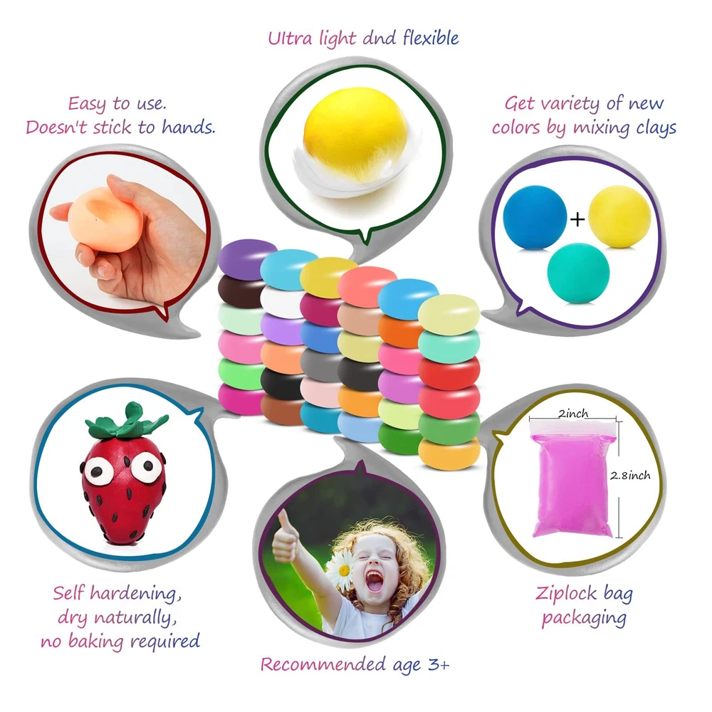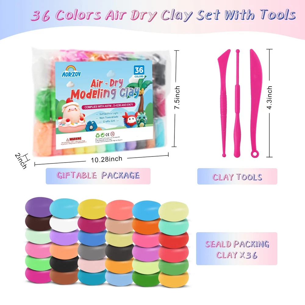 36 Colors Air Dry Clay for Kids Modeling Clay Kit Magic Foam DIY Clay with 3 ...