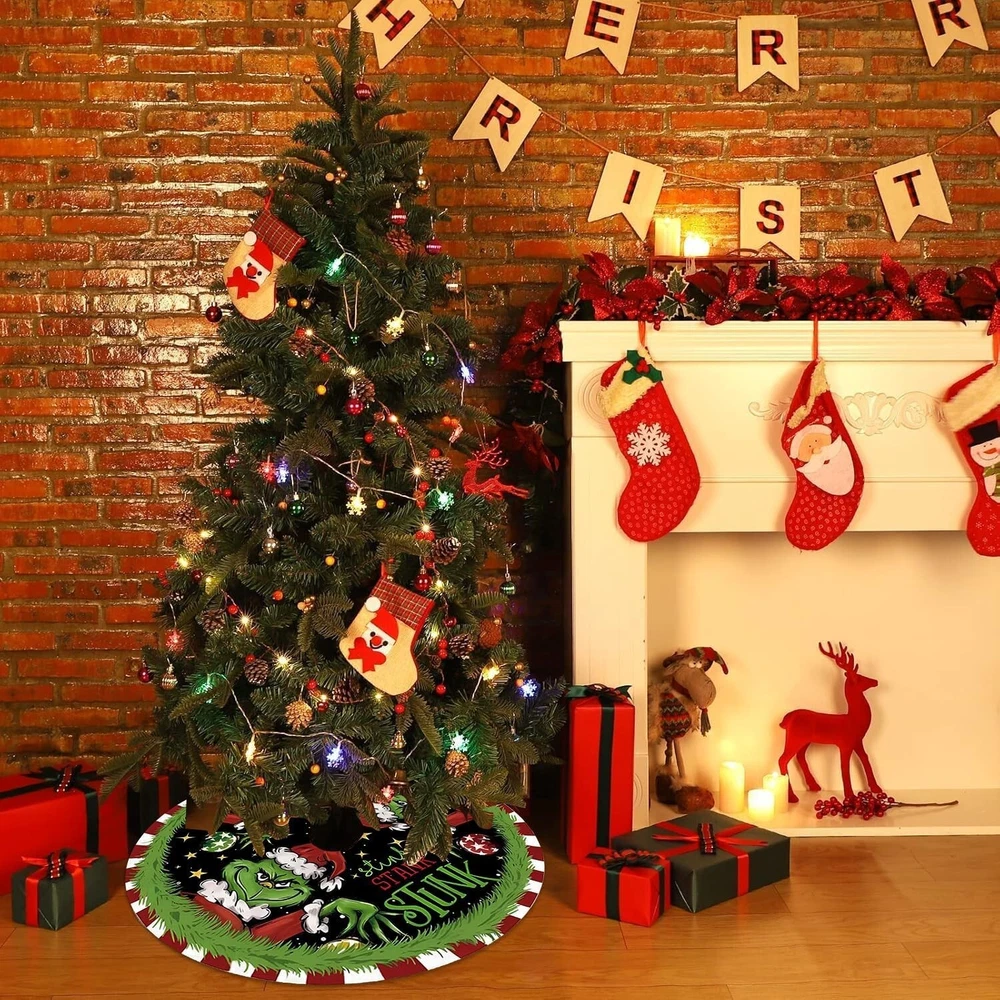 36" GRINCH Christmas Tree Skirt Green Trimmed Tree Skirt Christmas Decorations Size: 36 inch Color: Green Material: Polyester Size: 36 inch Pattern Cartoon Funny Green Christmas Tree Skirt - Our Christmas tree skirts are origional designed and vibrant printed. With a range of unique designs and colors, it is a perfect christmas touch for any christmas decor theme, will attract and surprise your guests. Perfect Size - The Christmas tree skirt measures 36 inches/90 cm in diameter. This generous size not only conceals the tree stand but also enhances the overall appeal of your Christmas tree, making it look fuller and more attractive. Adjustable Design: This rustic Christmas tree skirt mat adopts a simple opening design,durable rope can facilitate you to quickly adjust the size that is most suitable for the Christmas tree. It can also help you quickly install or remove it. Wide Application - Ideal for both indoor and outdoor Christmas decorations. Place it anywhere you desire - living room, bedroom, garden, bar, hotel, home, school, store, office, supermarket - creating a favorite tree skirt loved by both pets and kids during the winter Christmas season. Experience the joy of family togetherness. Easy to Clean - The Christmas tree skirt is easy to clean, you can wipe it with damp cloth or hand wash it, and then hang it to dry, which will save you a lot of time and effort. Return Policy: We offer a 30 day return policy from the receiving date. Please contact us for a Free Return Label. Please use our return label so it will go back to our supplier and we can do a refund or replacement afterwards. Feedback: Your satisfaction is very important to us! If you have any problem with your order, please contact us and we will do our very best to make you satisfied. As long as you are happy with your purchase, please leave a positive feedback for us. We will always leave you a positive feedback in return. If you have any problem with your purchase, please do not leave a negative feedback. Please Contact us ... and your issue will be solved quickly and positively We are a small family-owned business trying to make a living, not a huge company that does not care ... We will ALWAYS do our best for you!