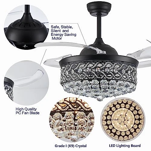 Menu 1. We require immediate payment. 2. We currently accept payment via eBay managed payments only. 3. Once payment is cleared, we will dispatch your shipment within 1-3 business days. Please refer to the "Shipping" tab for more information regarding shipping speed to your destination. 36" Modern Black Retractable Blades Ceiling Fan with Lights, Dimmable Fandeliers, Crystal Chandelier Fan Light Kit for Bedroom Kitchen Island Product description 【Ceiling Fan With Lights】The lampshade is made of K9 crystal, Make it very STUNNING, Acrylic transparent retractable ,High quality polished metal lamp body, Great choice for bedroom dining room living room. 【Dimmable Chandelier Ceiling Fan】Retractable blades ceiling fan, Dimmable fandelier crystal ceiling fans with lights and remote. Color temperature can be changed and adjusted from 2700K (Warm white) to 4500K (Daylight) and end with 6000K (Cool White). 【APP Remote Control】Control this crystal chandelier ceiling fan by using the mobile App. This APP allows for a memory function that remembers your lighting settings. Infinitely dimmable, color changeable, adjust the brightness and color you need to protect your eyes from damage. 【2-Hanging Rods&Size】Diameter 36" when retractable blades extended 15" when blades retracted, Includes two down rods, 4.9 inch and 7.9 inch for adjustable hanging with strong wind and long service life. is a professional lighting manufacturer, We provide the most abundant category of lighting products, If you are not satisfied with our products, Please kindly let us know, Enjoy your purchase. PLEASE MESSAGE US IF YOU HAVE ANY OTHER QUESTIONS, AND MANY THANKS FOR READING ALL OF THIS. Copyright ©#. All Rights Reserved.