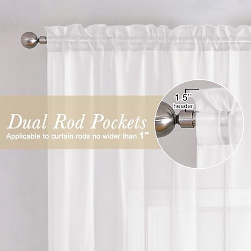 36 Inch White Sheer Tier Curtains 2-Pack with Dual Rod Pockets Lightweight Airy Window Treatment