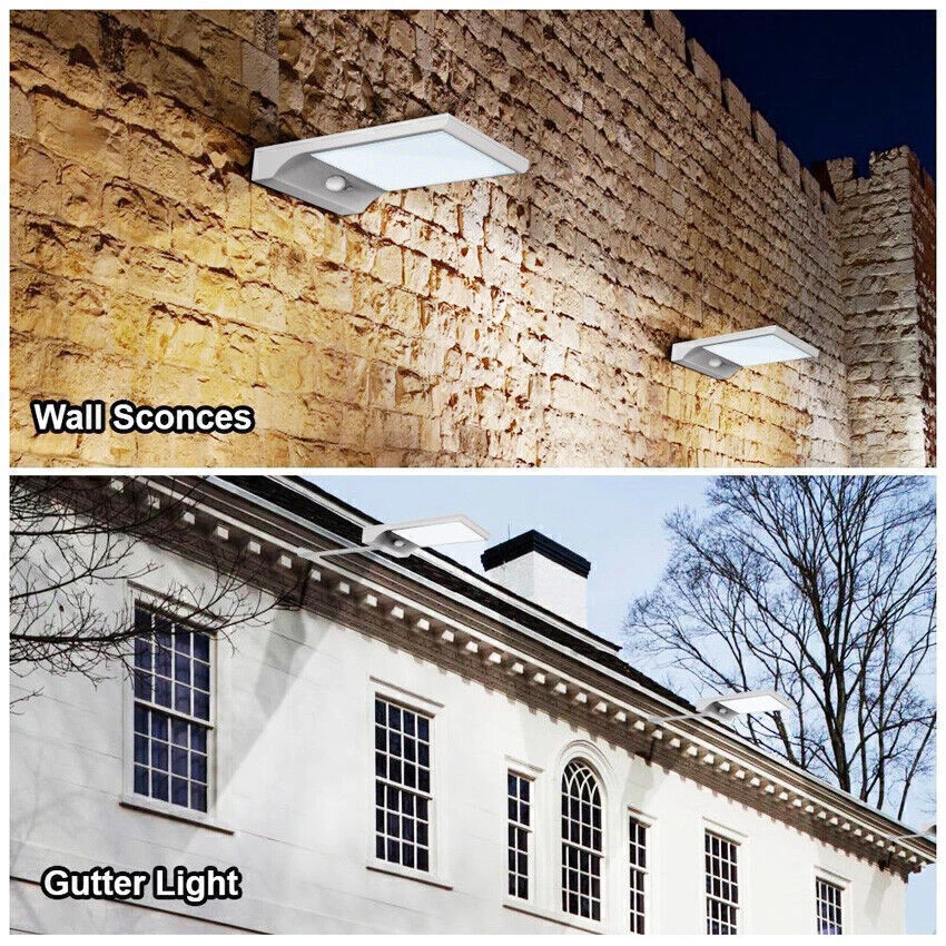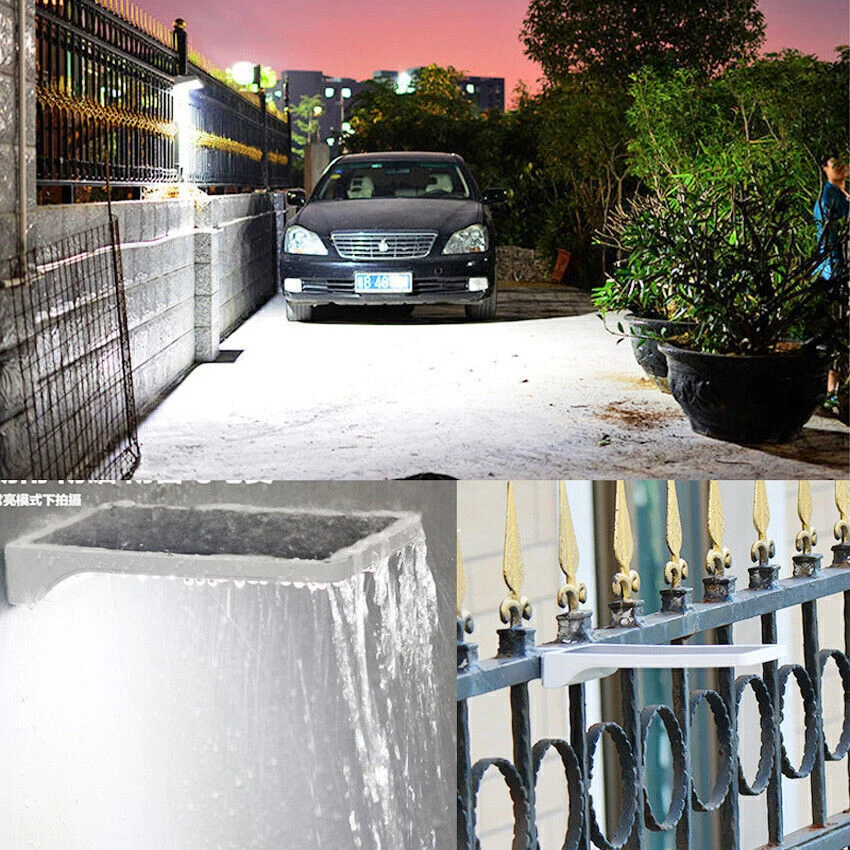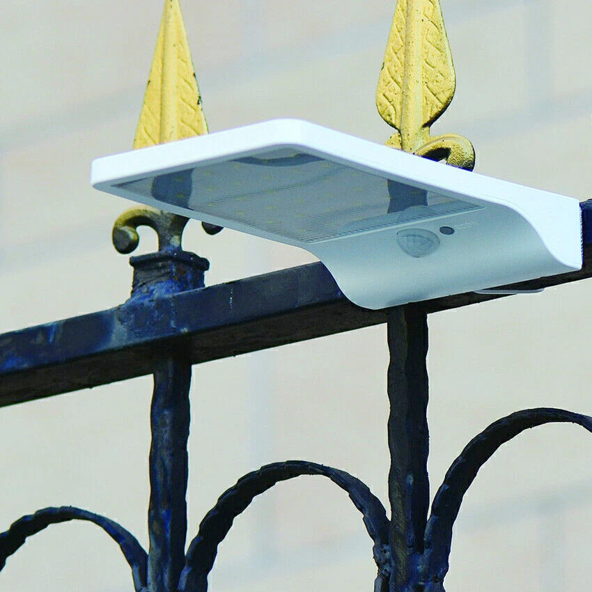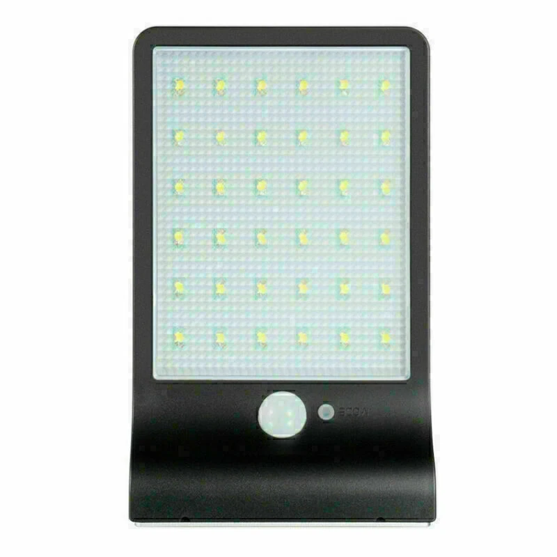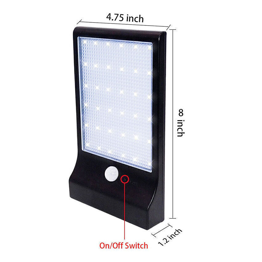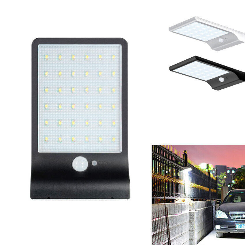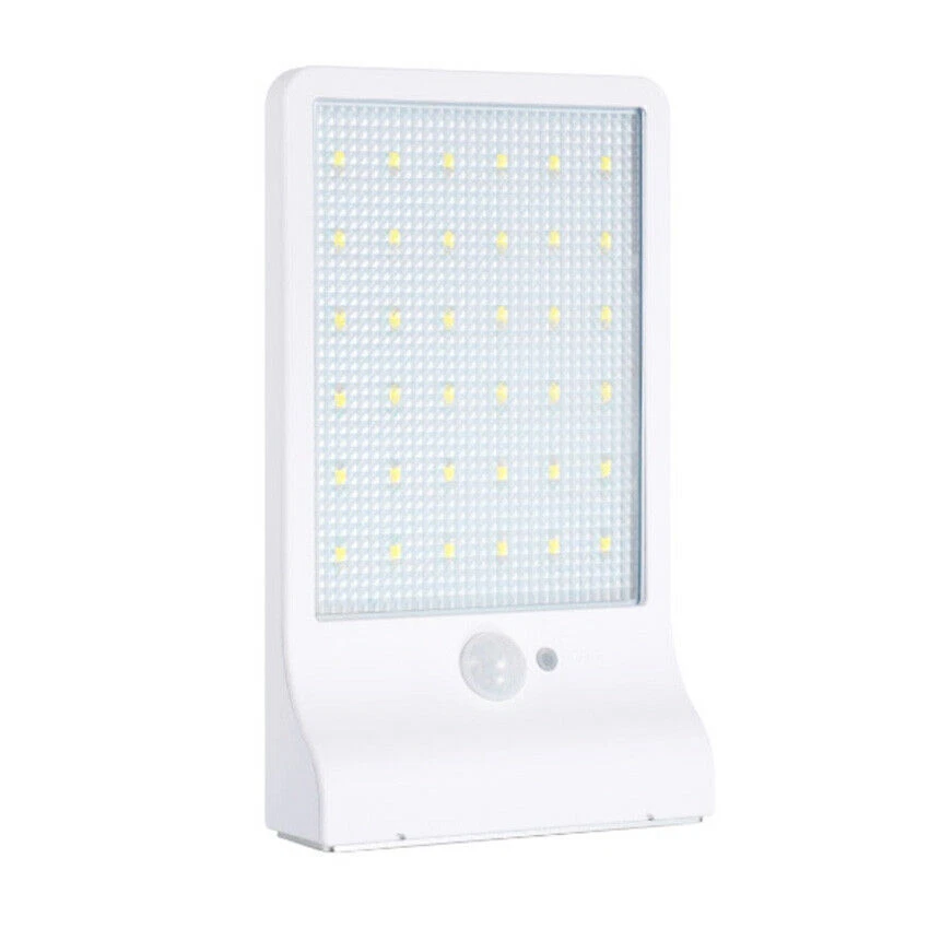 Mount this High Brightness Solar Powered Lamp Light on anywhere where traditional light cannot reach: Patio, Garden, Fence, Yard, Pathway, etc., waterproof rated IP65, outdoor use supported. Furthermore, it can work as a secirity light in your doorside and make everything around clearly and easy to be seen. Features: 3 mode: body induction+ dim light mode/body induction mode/constant light mode (Long press for 3s to start up, each press then for mode switch) 36 high brightness white led Eco-friendly, engery-saving and money-saving for long-run use Waterproof Rated IP65,best for outdoor use Easy assembly/disassembly Light Control: when the solar panel meet with sunshine, and the electric circuit will stop work and press button in vain when the solar panel meet without sunshine, and the electric circuit start to work How Does It Work? Auto charge at day time, the longer under the direct sundhine, the more it will charge It will automatically startup circuit work at night Human Body Sensor: when people detected in the effective range, the light will be strong It will back to standby mode when people leave the induction area for 10s It will auto shutdown the circuit and charge during daytime Detail: Model: 1501 Material: Plastic Light color: White Color: Black \ White Led quantity: 36 LED Waterproof level: IP65 Size: 20cm * 12cm * 2.8 cm \ 8" * 4.75" * 1.2" Solar Panel Power: 6V 2.5W, 18% conversion of power Luminous Flux: 450lm Output power: 3.2V 3.8W Lithium battery: 3.7 V 2000 mAh Angle of induction: 120 degree LED: 60mA/28LM/SMD2835 * 36 PCS Distance of induction: within 5-10 M angle of induction Delay Time: 10s Induction function of the work current: 3.8V 1400 mA Dim light mode of the work current: 3.8V 30mA Constant light mode of the work current: 3.8V 400mA Charging time: >6 hours under the sunlight Includes: 1 * Solar Lamp 2 * Screws 1 * English Manual
