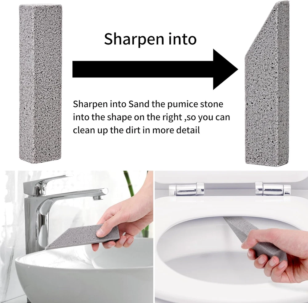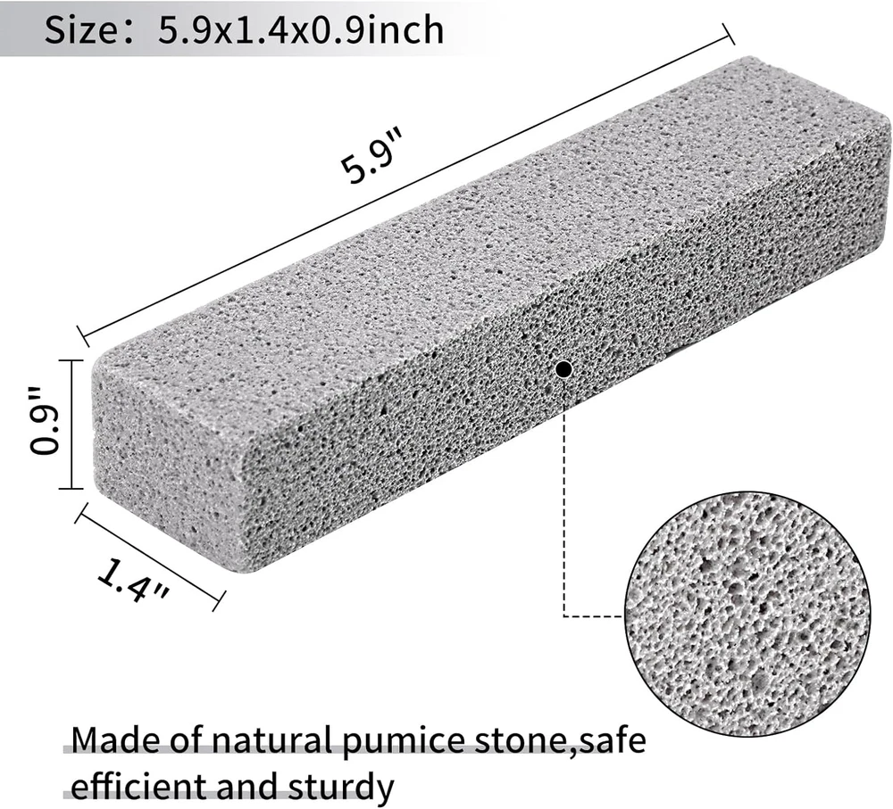 High-quality: Our pumice is made of high-quality substance, fine and strong, with high density, no irritating smell and very safe; it will not scratch your tiles and metal; Help you solve stains and troubles. Perfect size: Each pumice is about 5.9 x 1.4 x 0.9 Inches, perfect for your palm, making it easier and more comfortable to clean.Perfect size to help you clean edges and gaps for easy access, no more dead ends. Multiple functions: Our pumice can help you quickly and easily clean grease, stains, residues and dirt without scratching surfaces. Applicable occasions: Pumice stone is used in toilets to clean calcium deposits, limescale and hard water rings on toilets, sinks, bathroom tiles and other ceramic surfaces. It can also be used to remove rust and grease from grills and ovens. Precautions: Soak the area to be cleaned and the gray pumice before cleaning, so that the pumice has a more powerful cleaning function. Product Description The size fits perfectly in the palm of your hand. Made of natural pumice stone,safe efficient and sturdy. Transparent packaging.