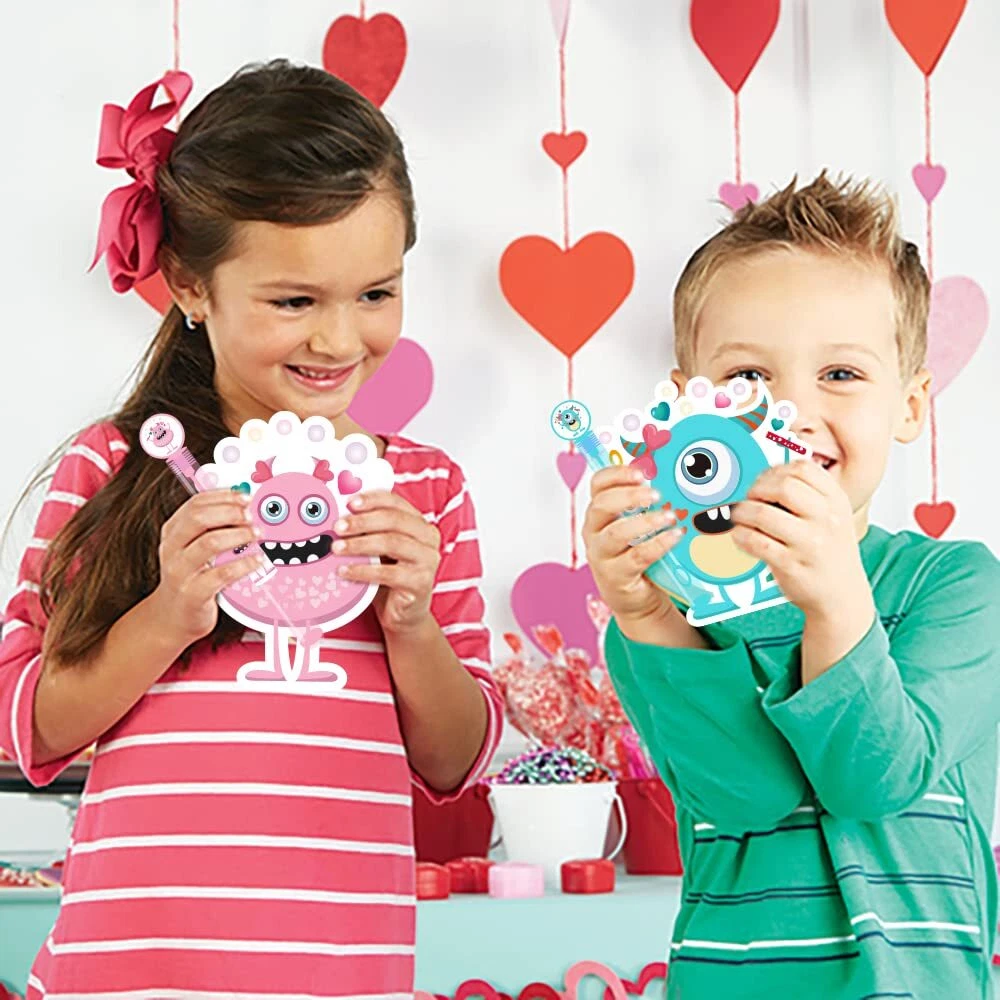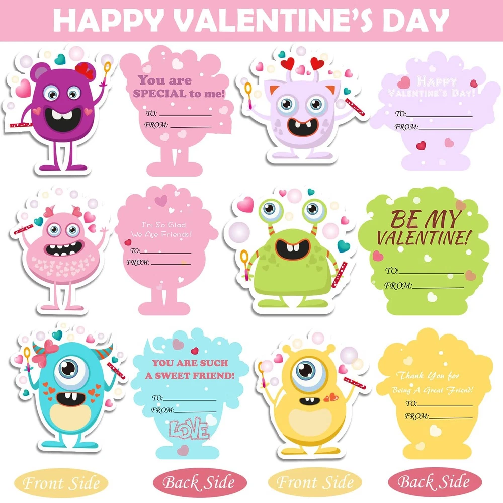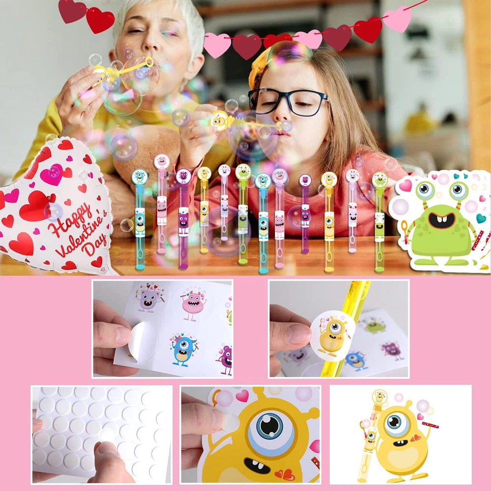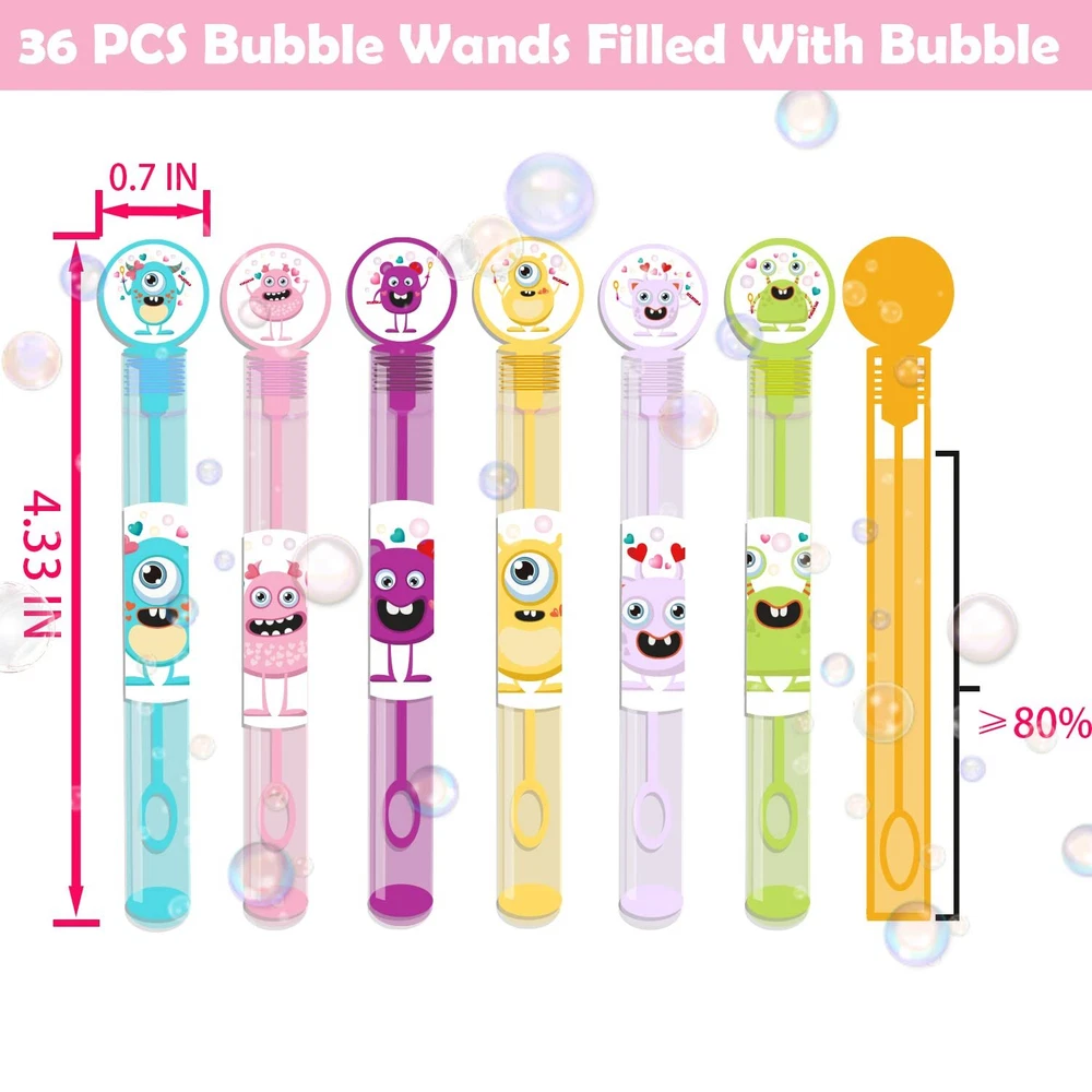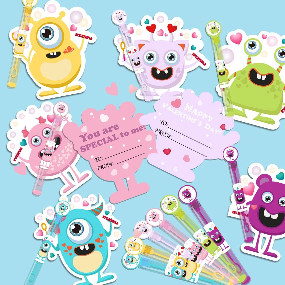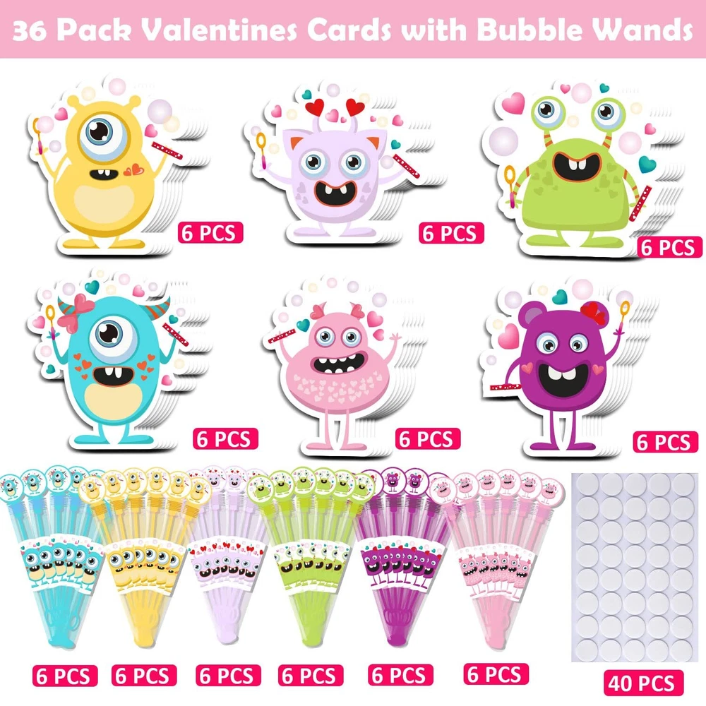 36 Pack Valentines Day Cards for kids With Bubble Wands, Cute Kids Valentines Cards for Classroom School Exchange Gifts, Fun Valentines Gifts for Kids Party Favors Game Prizes [36 Pack Super Value Valentine Cards for Kids] These are great value candy-alternative Valentines gifts for kids, you will get 36PCS creative little monster designs valentine cards for kids and 36PCS colorful super fun bubble wands. These unique cards & bubble wands give kids more than just a greeting - they get to give FUN! [Fun Bubble Wands & Monster Designs Assortment] These kids Valentines day cards feature 6 various designs, each card design is a characterized little monster with cute message on the back, it will definitely make your friends erupt with glee! Each card comes with a fun bubble wands pre-filled with bubble solution which is safe for kids. [Colorful & Premium Quality Bubble Wands] There are 36PCS Valentines party favors bubble wands in this set, which contains 6 various colors and patterns on the top on the bubble wands. These bubble wands include premium Nontoxic bubble solution. Easy to do bubbles (mainly water and soap). Very Safe to Kids’ Skin and Face but Do Not Drink! [Perfect Valentines Gifts for Kids] Make Valentine's Day a scream with these Valentine cards for kids! A perfect choice for a classroom exchange or valentine event giveaways. Ideal gift idea for your kiddos to give to friends. Kid will love this unique valentine cards with toys! [Unique Valentines Cards for Classroom] Providing a 100% satisfaction experience is our main priority to our customers. Feel free to message us if this valentines day cards for kids don't meet your expectations.