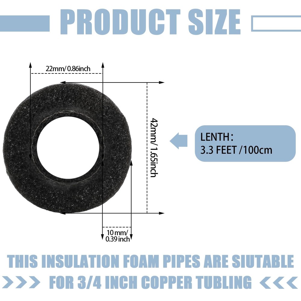Features: Quality material: These pipe covers for outside are made of PEP foam, waterproof and shockproof, with sound insulation, heat preservation and good plasticity, can lock the heat, reduce the heat radiation loss of hot water pipeline, and avoid the cold water pipeline from being damp and dewing. Convenient and multifunctional: The length of each insulating foam pipe cover is about 1 m/ 3.28 ft, and you can cut it into the appropriate size according to the actual needs, to protect your pipeline and prolong its service life. Specifications: Material: PEP foam Color: black Size: Length: approx. 1 m/ 3.28 ft for each Fit pipe: approx. 3/4 inches Outer diameter: approx. 1.65 inches/ 42 mm Inner diameter: approx. 0.87 inches/ 22 mm Thickness: approx. 0.39 inches/ 10 mm Package includes: 36 x Insulation foam Notes: Manual measurement, please allow slight errors on size. The color may exist a slight difference due to different screen displays. Industrial product, please stay away from little kids. Rich in Quantity to Use: the package comes with 36 pieces of insulating foam pipe covers, each insulation foam measures about 3.28 ft/ 1 meter in length, about 1.65 inches/ 42 mm in outer diameter, about 0.87 inches/ 22 mm in inner diameter, about 0.39 inches/ 10 mm in thickness, suitable for 3/4 inches copper pipes, and the quantity is enough for your daily use and replacement Reliable and Serviceable: the insulation foam is made of quality PEP foam, which is soft and reliable, not easy to tear or wear, anti collision protection and reusable, serving you for a long time Safe and Trustworthy: the pipe wrap has good fireproof, heat insulating and sound absorbing properties, good elasticity, easy bending and safe use, which will bring you an ideal experience Convenient Installation: the pipe insulation wrap adopts pre slit design, so the assembly is simple; Only by directly clamping the insulation foam on the pipe, the insulation foam can be firmly fixed and not easily ruined Wide Application: the foam pipe insulation is waterproof, dustproof, oil resistant and corrosion resistant, an ideal choice for various outdoor pipe insulation, avoiding your pipe freezing in winter and providing long term protection; In addition, it can also be applied for outdoor winter irrigation, sprinkler and faucet isolation