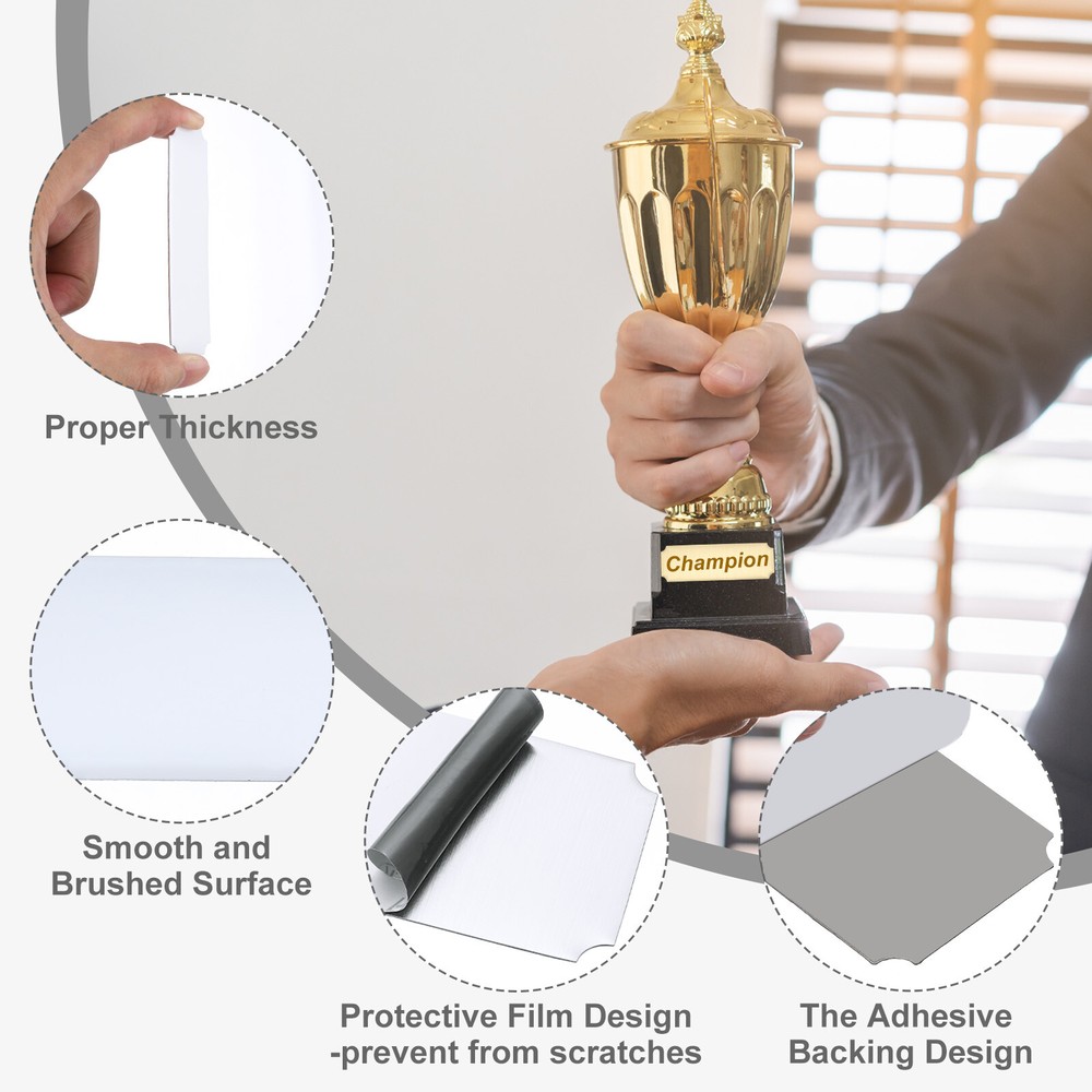 Document Our engraved nameplates are perfect for mounting on plaques, picture frames, sweaters, trophies, bags, display boxes, flag cases, and anything else.SpecificationMaterial: Stainless SteelColor: WhiteSize: 15.2 x 6.3 cm/6 x 2.5 Inch(L*W)Thickness: 0.4 mm/0.02 InchPacking List: 36 Pcs x Engraved NameplateAdvantageOur engraved nameplates are made of brushed stainless steel which is durable, stable, not easy to fade, rust, or break, and can be used for a long time. With a smooth surface, it will not scratch your skin.The right thickness makes the plate stronger and allows for deeper engraving. These elegant nameplates have a beautiful luster and a simple design. Suitable for various crafts to add brilliance.The protective film design can effectively prevent scratches. The adhesive backing design allows you to stick this nameplate anywhere without any tools and it can be firmly on the objects.InstructionPlace a metal workbench block underneath the blank stamping tags for better stamping.NOTE:1. There may be light scratches and blemishes due to shipping, but they can be polished.2. Only for laser engraving, not suitable for mechanical engraving.3. Please remove the protective film before use. 36 Pcs 6" x 2.5" Engraved Name Plate Picture Frame Label Art Tag, White Our engraved nameplates are perfect for mounting on plaques, picture frames, sweaters, trophies, bags, display boxes, flag cases, and anything else. Specification Material: Stainless Steel Color: White Size: 15.2 x 6.3 cm/6 x 2.5 Inch(L*W) Thickness: 0.4 mm/0.02 Inch Packing List: 36 Pcs x Engraved Nameplate Advantage Our engraved nameplates are made of brushed stainless steel which is durable, stable, not easy to fade, rust, or break, and can be used for a long time. With a smooth surface, it will not scratch your skin. The right thickness makes the plate stronger and allows for deeper engraving. These elegant nameplates have a beautiful luster and a simple design. Suitable for various crafts to add brilliance. The protective film design can effectively prevent scratches. The adhesive backing design allows you to stick this nameplate anywhere without any tools and it can be firmly on the objects. Instruction Place a metal workbench block underneath the blank stamping tags for better stamping. NOTE: 1. There may be light scratches and blemishes due to shipping, but they can be polished. 2. Only for laser engraving, not suitable for mechanical engraving. 3. Please remove the protective film before use. Hot Item Payment 1.We accept eBay payment . 2.Payment must be received within 7 business days of auction closing. Shipping 1.We ship to your eBay or Paypal address. Please make sure your eBay and Paypal address is correct before you pay. 2.Items will be shipped within 1-3 business day when we received payment. 3.Delivery time depends on destination and other factors. Description Policy 36 Pcs 6" x 2.5" Engraved Name Plate Picture Frame Label Art Tag, White Our engraved nameplates are perfect for mounting on plaques, picture frames, sweaters, trophies, bags, display boxes, flag cases, and anything else. Specification Material: Stainless Steel Color: White Size: 15.2 x 6.3 cm/6 x 2.5 Inch(L*W) Thickness: 0.4 mm/0.02 Inch Packing List: 36 Pcs x Engraved Nameplate Advantage Our engraved nameplates are made of brushed stainless steel which is durable, stable, not easy to fade, rust, or break, and can be used for a long time. With a smooth surface, it will not scratch your skin. The right thickness makes the plate stronger and allows for deeper engraving. These elegant nameplates have a beautiful luster and a simple design. Suitable for various crafts to add brilliance. The protective film design can effectively prevent scratches. The adhesive backing design allows you to stick this nameplate anywhere without any tools and it can be firmly on the objects. Instruction Place a metal workbench block underneath the blank stamping tags for better stamping. NOTE: 1. There may be light scratches and blemishes due to shipping, but they can be polished. 2. Only for laser engraving, not suitable for mechanical engraving. 3. Please remove the protective film before use. Hot Item Payment 1.We accept eBay payment . 2.Payment must be received within 7 business days of auction closing. Shipping 1.We ship to your eBay or Paypal address. Please make sure your eBay and Paypal address is correct before you pay. 2.Items will be shipped within 1-3 business day when we received payment. 3.Delivery time depends on destination and other factors.