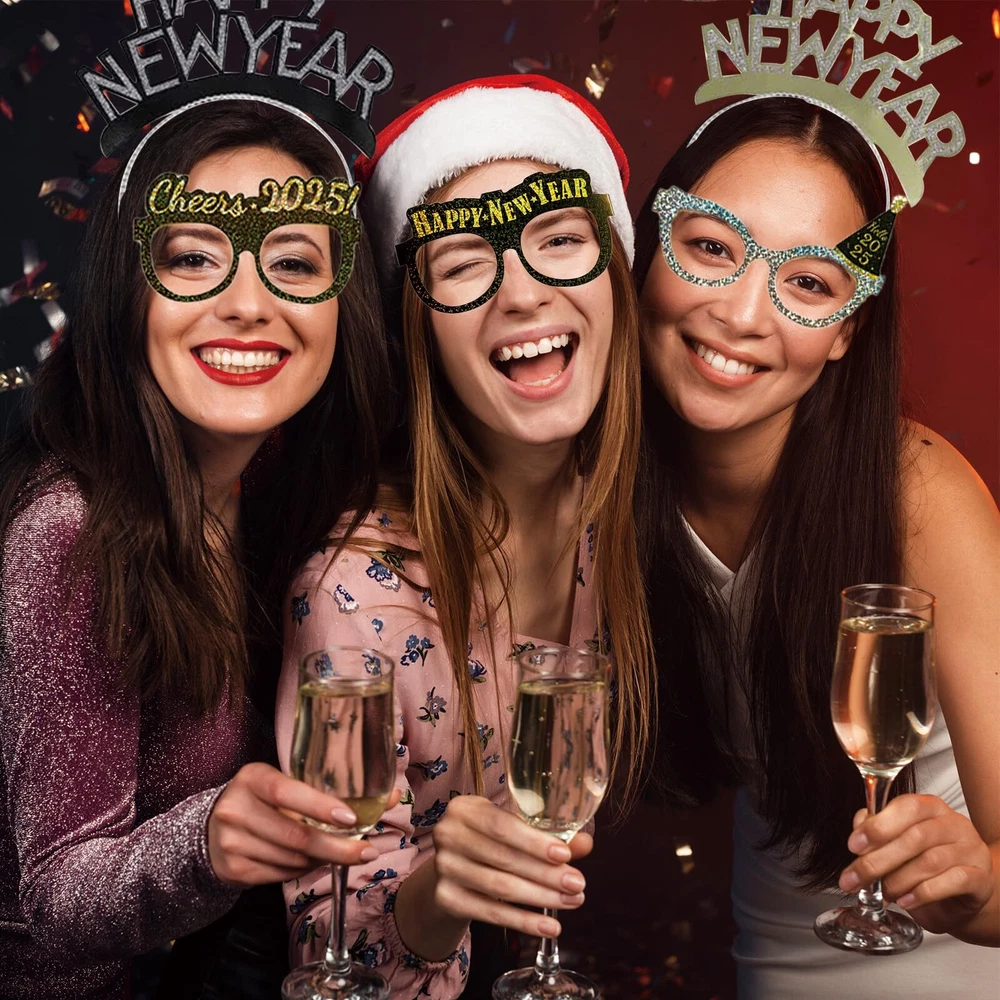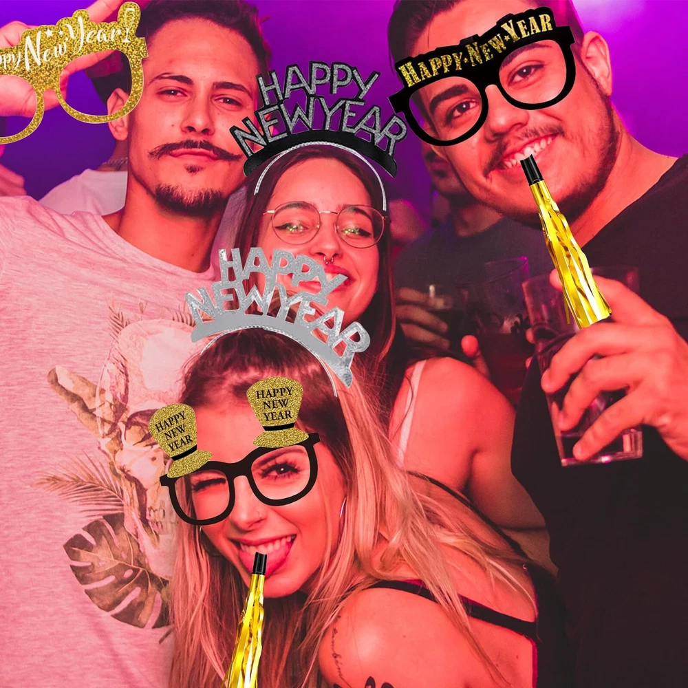 【Packaging Included】You will get 36 pieces of new year eve party supplies,including 12 noise makers party favors in gold and grey, 12 happy New Year headbands in 3 different colors(each color has 4 pieces),12 New Year party glasses. 【New Years Eve Party Supplies】These New Year party headbands,2025 party eyeglasses and noisemakers, with their cute and sophisticated appearance, are great accessories for New Year parties, and you can use them as photo props to take meaningful photos with your family and friends to record precious moments. 【Happy New Year Glitter Design】This Happy New Year headband,glasses is made of aluminum foil paper, has a certain thickness, not easy to deformation, light weight, can be easily worn, designed with the glitter words Happy New Year, is a good New Years Eve gifts for children or friends.Suitable for children and adults. 【Safe to Use】Our happy New Year headbands and glasses are made of quality cardboard paper, stable and not easy to deform, comfortable to wear.Flashing metal tassel noise maker is made of high quality plastic, safe and non-, not easy to break, high quality can be used for a long time. Make a cheerful sound at your upcoming 2025 New Year's Eve party or Christmas party. 【Service】You have any pre-sales and after-sales problems, please us, we will solve the problem for you within 24 hours.