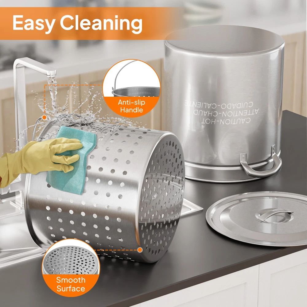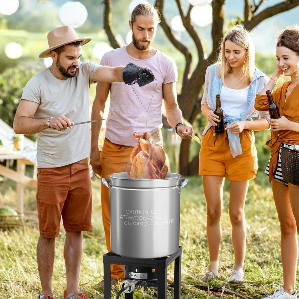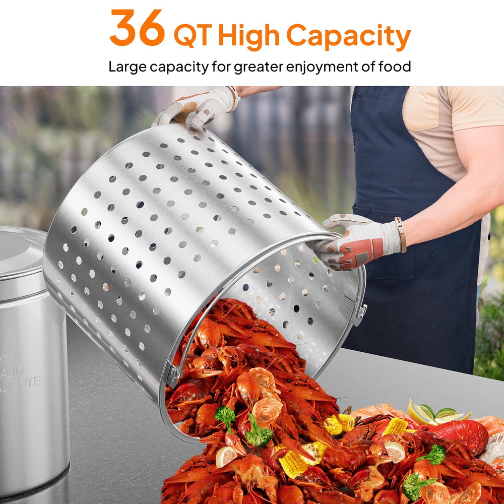 listing template VISIT OUR STORE SIGH UP FOR EMAIL 36 Qt. Turkey Deep Fryer Pot with Lid & Basket Stainless Steel Seafood Boil Pot Features: 1. Premium Aluminum Construction: Made from durable aluminum, our pot offers excellent heat conductivity and is lightweight for easy handling. The material ensures quick and even heating, perfect for various cooking methods. 2. Large 36QT Capacity: Our pot boasts a generous 36-quart capacity, perfect for cooking large quantities of food. Ideal for family gatherings, parties, and commercial use, it easily accommodates seafood boils, whole turkeys for frying, or multiple portions of soups and stews. 3. Comprehensive Accessory Set: Includes pot, tight-fitting lid, perforated strainer basket, steamer plate, and safety lift hook. This versatile set enhances your cooking options, allowing for boiling, frying, and steaming. 4. Safe & Considerate Designs: Features sturdy handles for secure handling and a heat-resistant hook for safely lifting the hot strainer basket. The strainer basket features raised points on the bottom, preventing direct contact with the pot and reducing the risk of food sticking. This thoughtful design ensures easier cooking and cleaning. 5. Outdoor Cooking Essential: Designed for use with gas stoves and outdoor burners. Perfect for camping, beach parties, backyard barbecues, and all your outdoor cooking adventures. (Note: Not compatible with electric induction cooktops). Specification: Brand ROVSUN Color Silver Material Stainless Steel Item Weight 9 lb. Pot Dimension (includes handles) 16.34” Dia. x 14.17”H Pot Iner Dimension 13.39” Dia. x 14.17”H Basket Dimension 12.4” Dia. x 11.02”H What You Get: 1 x 36QT Pot 1 x Basket 1 x Lid 1 x Steaming Tray 1 x Lifting Hook Shipping Policy 1. Ship worldwide from New Jersey by reliable shipping companies -- USPS, UPS, FEDEX, DHL, etc., and only to VERIFIED PAYPAL ADDRESS. Transport Delivery ETA. Package handling only takes 1 business day at our warehouse, so please make sure entering correct payment and shipping information before checking out. Once your payment is completed, we are not going to accept any more changes to your order. 2. International Buyers – Please Note: a. Import duties, taxes and charges are not included in the item price or shipping charges. These charges are the buyer's responsibility. b. Please check with your country's customs office to determine what these additional costs will be prior to bidding/buying. 3. Please check your shipping address carefully before checkout, it can't be changed if order completed. 4. Orders placed on weekend will be shipped within 2 days.Notification of shipment with tracking number will be sent to buyers. 5. Standard shipping: 2-7 business days Expedited Shipping: 2-3 business days One-day Shipping: 1 business day International shipping: Varies 6.Ship within 1 business day once payment completed. Notification of shipment with tracking No. will be sent to buyer. 7.We offer discounts for combine shipping. Please contact us first if you need combine shipping, and an invoice with discount will be sent to you. 8.Please allow 5 business days for delivery to US destinations on any eBay orders and 14 business days for delivery to any International destinations. We highly recommend our buyer choose priority/expess mail for international delivery which is much more stable. Return Policies 1. Refunds given only if item DOA and cannot be replaced via PAYPAL . If so, Please contact us with 5 days since you receive the item and and return to us within 30 days from the delivery date for exchange or refund. 2. If you need return, please contact our customer service representative, let us know the detailed problem and send us some pictures for confirmation. Payment Payment should be sent within 8(EIGHT) days of auction closing. Feedback If you are dissatisfied for any reason, please do not be quick to leave negative/neutral feedback. We work hard to make sure EVERY CUSTOMER 100% SATISFIED and resolve any problem for you. Work Time Work Time: Monday to Saturday About Us | Newsletter| Feedback| Contact Us Copyright © 2022 LikeDeal. All rights reserved. 无标题文档 36 Qt. Turkey Deep Fryer Pot with Lid & Basket Stainless Steel Seafood Boil Pot Features: 1. Premium Aluminum Construction: Made from durable aluminum, our pot offers excellent heat conductivity and is lightweight for easy handling. The material ensures quick and even heating, perfect for various cooking methods. 2. Large 36QT Capacity: Our pot boasts a generous 36-quart capacity, perfect for cooking large quantities of food. Ideal for family gatherings, parties, and commercial use, it easily accommodates seafood boils, whole turkeys for frying, or multiple portions of soups and stews. 3. Comprehensive Accessory Set: Includes pot, tight-fitting lid, perforated strainer basket, steamer plate, and safety lift hook. This versatile set enhances your cooking options, allowing for boiling, frying, and steaming. 4. Safe & Considerate Designs: Features sturdy handles for secure handling and a heat-resistant hook for safely lifting the hot strainer basket. The strainer basket features raised points on the bottom, preventing direct contact with the pot and reducing the risk of food sticking. This thoughtful design ensures easier cooking and cleaning. 5. Outdoor Cooking Essential: Designed for use with gas stoves and outdoor burners. Perfect for camping, beach parties, backyard barbecues, and all your outdoor cooking adventures. (Note: Not compatible with electric induction cooktops). Specification: Brand ROVSUN Color Silver Material Stainless Steel Item Weight 9 lb. Pot Dimension (includes handles) 16.34” Dia. x 14.17”H Pot Iner Dimension 13.39” Dia. x 14.17”H Basket Dimension 12.4” Dia. x 11.02”H What You Get: 1 x 36QT Pot 1 x Basket 1 x Lid 1 x Steaming Tray 1 x Lifting Hook Shipping + 1. Ship worldwide from New Jersey by reliable shipping companies -- USPS, UPS, FEDEX, DHL, etc