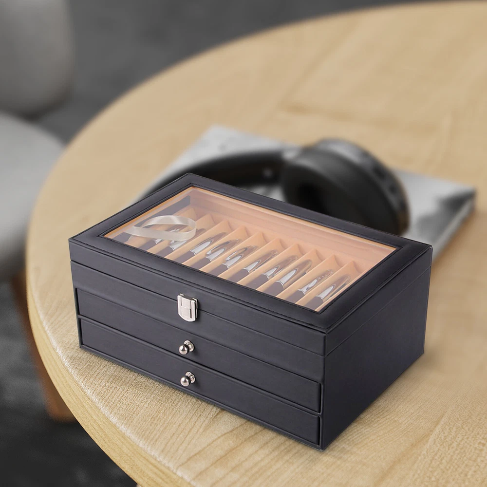 Pu Leather Pen Display Box Fountain Pen Storage Case Pen Collection Organizer Container Description We present a finely designed pen display box with adequate storage for 36 exquisite designed pens for the passionate pen collector. This leather pen display box may be used to show, store, and preserve your vast collection of pens. The pen display box looks neat and professional on a desk, dresser, or nightstand. Or it could be a nice present for your best friends! Key Features Large Capacity: It can protect, preserve, and organize up to 36 of your best pens. Each compartment is large and has curved grooves that securely hold pens of different kinds and sizes. Ideal Present: The pen display box can be used as a gift for any occasion. It is a wonderful present for your husband, w 36 Slot Fountain Pen Holder Leather Display Case Organizer Collector Storage Box Pu Leather Pen Display Box Fountain Pen Storage Case Pen Collection Organizer Container Description We present a finely designed pen display box with adequate storage for 36 exquisite designed pens for the passionate pen collector. This leather pen display box may be used to show, store, and preserve your vast collection of pens. The pen display box looks neat and professional on a desk, dresser, or nightstand. Or it could be a nice present for your best friends! Key Highlights Large Capacity: It can protect, preserve, and organize up to 36 of your best pens. Each compartment is large and has curved grooves that securely hold pens of different kinds and sizes. Ideal Present: The pen display box can be used as a gift for any occasion. It is a wonderful present for your husband, wife, mother, father, friend, or pen collector. Luxury Style: The attractive leather pen display box protects and provides a luxury feel to pens while enabling you to keep and display your favorite pens in one handy and appealing location. Highly Protective: Its curved slots keep each pen fixed and protect pens from scratching and rubbing. High-quality Material: The pen display box is made of PU and flannel, which makes it resistant to deformation, corrosion, and fading, as well as being fashionable and long-lasting. Exquisite Construction: A three-level case with a handy drawer is used for maximum space efficiency. And the skylight design allows for easy access and a spectacular presentation. Easy Storage: This pen display box can organize almost all your pens. You no longer have to find the pen you need in a cluttered pile of pens. Easy To Clean: All you have to do is wipe it with a clean towel, and it'll be as good as new. Details Transparent Lid: It has a clear transparent glass top lid that allows for easy observation of the pens and also keeps them dust-free. High-grade Hardware: Its latches and drawer handles are made of high-grade hardware materials, which are bright, resistant to rust and fading. Tight Thread: Tightly stitched threads make this pen display box more beautiful and sturdier. High-quality Flannel: This pen display box is lined with premium flannel. It's non-slip and anti-corrosion, which can protect your pen in a better way. Multi-Compartments: This pen display box has 3 layers and 36 slots to keep your pens in order. It also has a beautiful and practical design. Application The pen display box looks neat and professional on a desk, dresser, or nightstand. Or it could be a nice present for your best friends! Specification Colors: Black Material: PU Leather+Flannel Length: 30.5cm/12" Width: 20cm/7.87" Height: 13.5cm/5.31" Net Weight: 1.6kg/3.52lbs Gross Weight: 2kg/4.40lbs Package Size: 31*20*14cm (12.20*7.87*5.51in) Package Included 1 x Pen Display Box Notes 1. Please note that the pen is not included. 2. Please allow the slight color difference caused by the shooting light and 1-3 cm error due to manual measurement, and make sure you do not mind before ordering. Payment Delivery details Terms of sales About us Contact us Payment We accept ebay payment 。 Fees such as import duties, taxes are not included in the item price or shipping costs. These charges are the buyer's responsibility. Delivery details Shipping: 2-9 working days to: USA Terms of sales We maintain high standards of excellence and strive for hundred percent customer satisfaction. Feedback is very important to us. We hope that you contact us immediately before you give neutral or negative feedback, so that we can address your concerns. It is impossible to address issues if we do not know about them! About us Your satis faction is our ultimate goal. We work hard to earn your trust and future business. Our certified technicians have tested each item before shipping. The unit comes with 1 year limited warranty on all manufacturing defects. a) If you receive a defective item, you may return it or ask for a discount. Please contact us within 14 days after you receive the package. b) What you returned must be intact and in its original packaging as re? u. Customer is responsible for shipping costs of the returned item. c) We will cover the cost of shipping back t with the shipping rate indicated in the registration page. We will send you a new unit or refund the full payment you paid. Thank you. Contact us Business Hour Business Hour: Monday To Friday: 8:30 AM to 5:00 PM (Beijing China time) Due to time zones, our reply to your questions may not be immediately. But within above working time, we will reply your email within 24 hours. If it's non-workdays, please kindly be patient and wait till Monday. Please contact us with ebay message. Please feel free to contact us if you have any questions. Monday To Friday: 8:30 AM to 5:00 PM (Beijing China time) Due to time zones, our reply to your questions may not be immediately. But within above working time, we will reply your email within 24 hours. If it's non-workdays, please kindly be patient and wait till Monday. Please contact us with ebay message. Please feel free to contact us if you have any questions. Features: Fast shipping from 