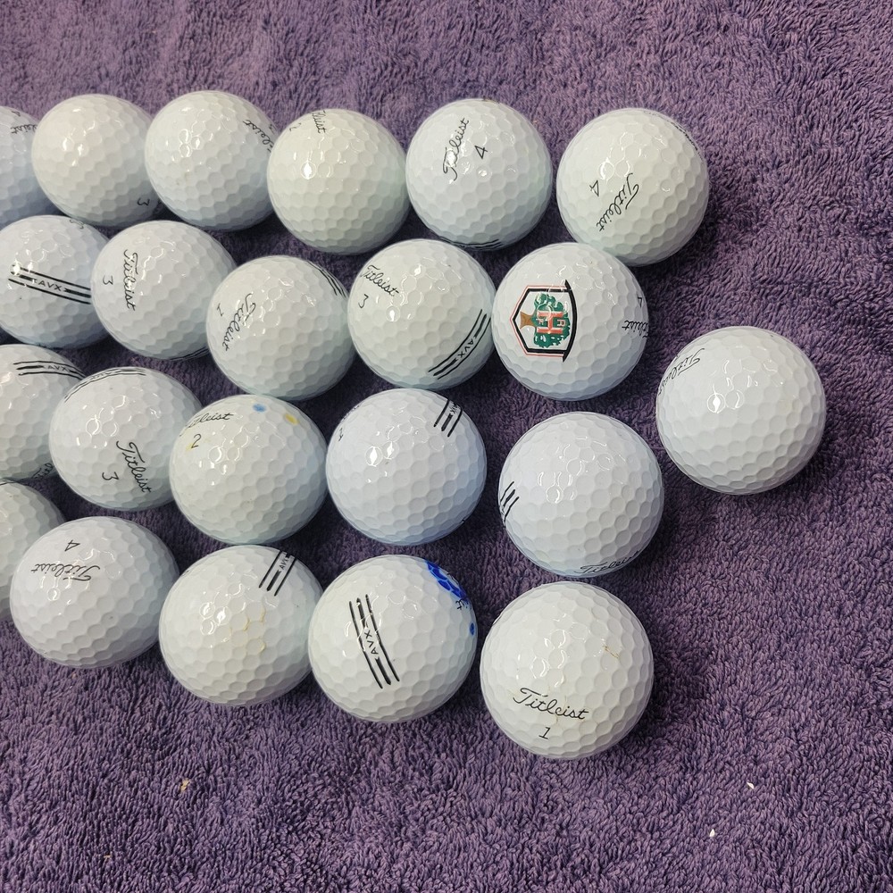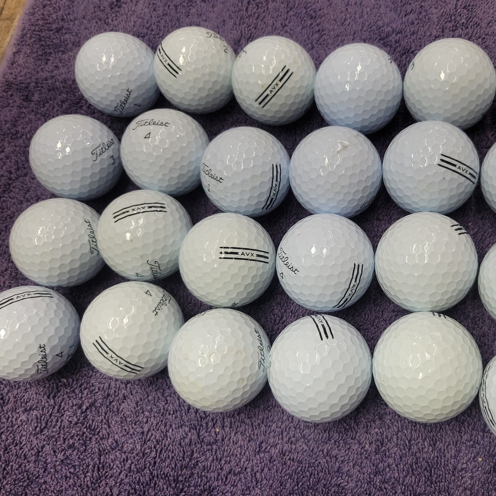 36 title, AVX Golf ball, all in excellent condition. Only three have logos and some will contain player marks. The balls in the photos are the balls.You will receive and the buyer will pay shipping