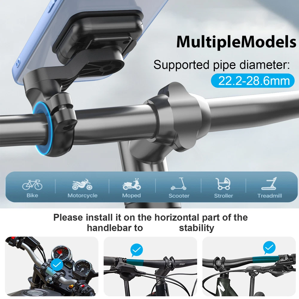 This motorcycle phone mount is a game-changer! The 360° rotation and auto-alignment keep my phone perfectly visible without distractions. The magnetic quick-release makes it so easy to grab my phone safely while riding. Super sturdy, no wobbles, even on rough roads—worth every penny for hassle-free navigation!