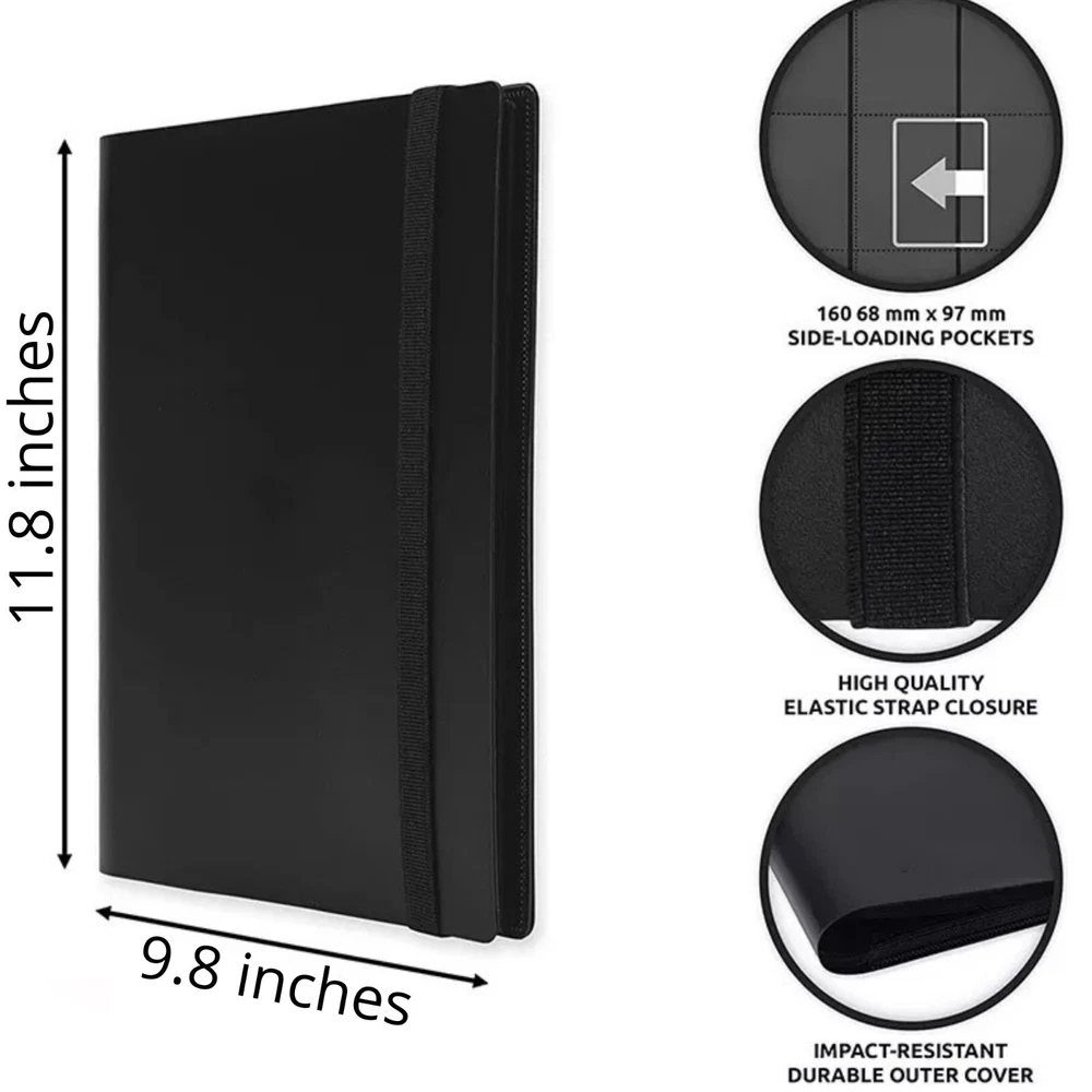 Type: Card Holder Color: Black Material: Plastic Features: Cardholder book, Acid-Free, Extra Clear Number of Toploaders/Card Holders: 20 - There are 9 pockets per page and 20 pages, which holds 360 cards. - Pages are stitched into a binder for a premium feel. The pockets are side-loading for additional security for cards, no more having cards accidentally fall out of the top of the binder. - Made of polypropylene which is acid-free, the material is durable and sturdy. The outside cover of this trading card binder is made of hard plastic but it is not rigid, it is flexible and protective. - Compatible with all standard-sized trading cards such as Animal Crossing Amiibo card collection, Pokemon card collection, Yugioh cards, MTG Cards (magic the gathering cards), Dragon Shield cards, Topps baseball cards, basketball cards, hockey cards, football Topps cards, Marvel cards, Skylanders Cards, Playing Cards, Top Trumps, Gaming Cards, attack cards, PECS cards, proxy cards.... FAST & FREE SHIPPING!