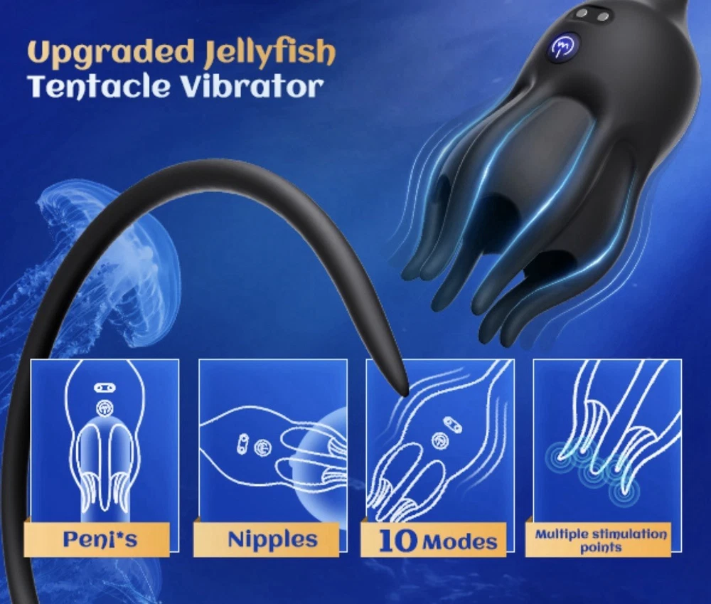 Tentacle Vibrator for Men - 360° Glans Wrap with 10 Modes, Body-Safe Silicone Waterproof Rechargeable Male Stroker Masturbator, Prostate & Nipple Stimulation Adult Sex Toys for Couples