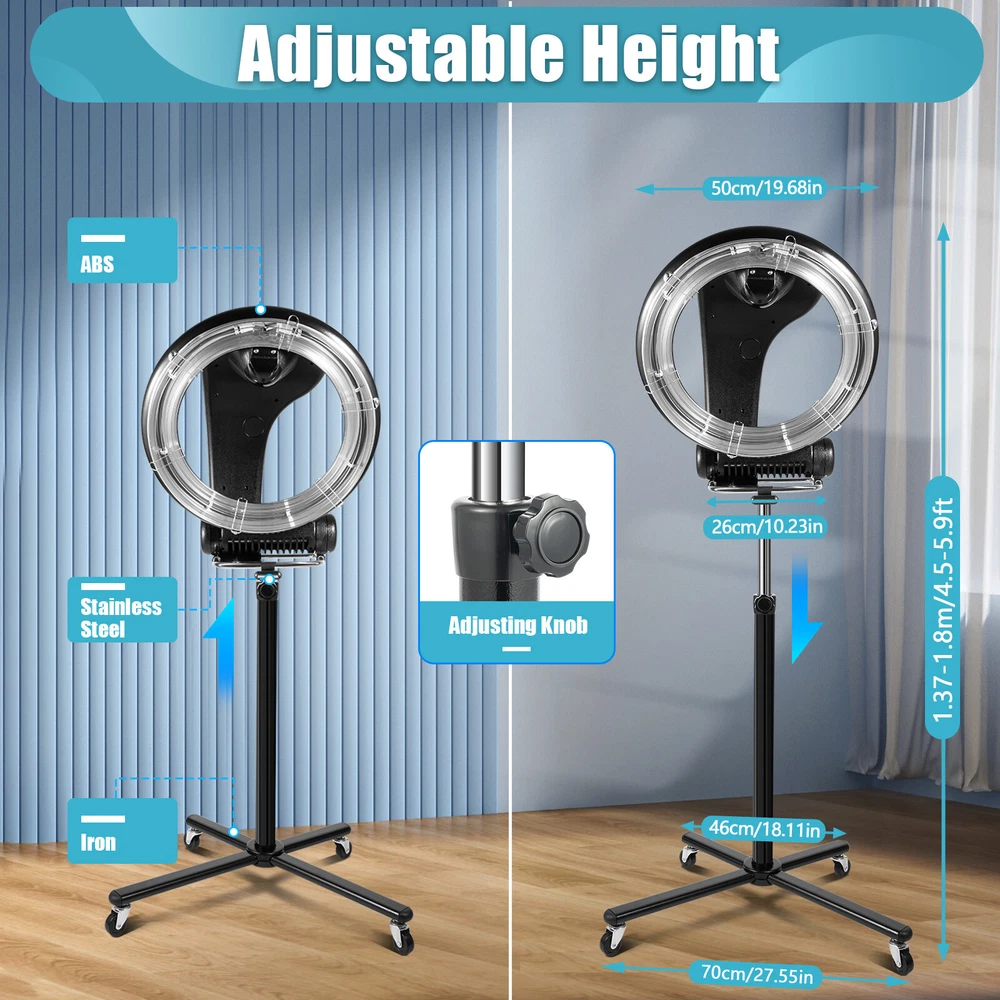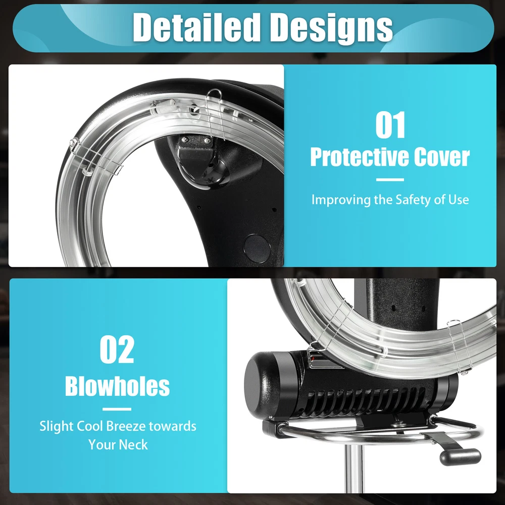 Specification Material: ABS, Iron, Stainless Steel Color: Black Voltage: 110V / 60Hz Plug: American Standard Plug Power: 1000W Timer: 0-60 Minutes Adjustable Temperature: 35°-80°/95℉-176℉ 3 Functions: Fan, Heating and Rotating 6 Modes: Perm, Coloring, Hot Oil Treatment, Semi-colored, Dry and Manual Control Packing Size: 77*55.5*39cm/30.31*21.85*15.35in Stand Width: 69cm/27.17in Adjustable Height: 140-180cm/55.11-70.86in Gross Weight: 12.75kg/28lbs 360° Orbiting Infrared Hair Dryer Drying Perming Machine Color Processor Salon Description Description Are you still bothered by the frizzy, split ends and yellowing hair? Do you want soft and beautiful hair? Then don't miss this hair dryer. Our infrared hair dryer is more durable and has a long service life. It can solve the problem of poor baking effect and single function of the traditional hairdryer to achieve perm, oil, hair coloring, etc. The effect is fast and obvious, making your hair new and beautiful. It will be your ideal choice! Key Features High-quality Heating Tube: This infrared hair dryer adopts a high-quality heating tube, which can work efficiently with stable heat, fast heat gathering, and even heating. Safe to Use : The protective mesh cover on the outside of the heat pipe and the pad on the handle can protect the head from being burned while the machine is working, ensuring safety in use. Adjustable Height: Its height(55.11-70.86in) can be freely adjusted to suit different needs. The height can be locked by using the fixed knob, which is very easy. Intelligent and Efficient: It can rotate 360 degrees for heating to take care of every hair. At the same time, it can freely adjust the right temperature(35°-80°/95℉-176℉) and time(0-60 Minutes), effectively locking the nutrition and moisture of the hair to meet the needs of different hair types. Stable Placement: The crucifix-shaped base made of iron has good stability and is not easy to tilt and collapse. At the same time, the adjustment rod is made of stainless steel, which is firm and hard for stable use. Easy to Move: It is equipped with a handle and four silent universal casters that allow you to move it easily. Multi-functional: This infrared hair dryer not only beautifies your hair but also helps you relax your head and improve blood circulation. Low Noise: Good heat dissipation leads to low noise so that you can even read a book or sleep without being disturbed. Sturdy Material: The body is made of sturdy ABS material, which is durable, scratch-resistant, and wear-resistant, ensuring a long service life. Freeing Your Hands: Compared to the handheld hairdryer, this vertical hairdryer can free your hands. You do not have to hold it all the time. Excellent After-sales Service: We aim to provide quality products and services. If you have any problems, please feel free to contact us, we will reply and solve the problem for you as soon as possible. Details Practical Control Panel: There is a user-friendly control panel on the body, which can regulate the time, temperature, mode, and function. Each button is equipped with an illustration and explanation for your convenience. Quality Power Cord: It adopts a copper power cord with an American standard plug, which has good conductivity and high safety performance, so you can use it with confidence. Power Switch: The machine comes with the main power on/off switch at the back of the machine, making it easy to turn the power on or off with one key. Application It is suitable for hair care, hair coloring, perming, heating, baking, styling, and color treatment for domestic or commercial use. Specification Material: ABS, Iron, Stainless Steel Color: Black Voltage: 110V / 60Hz Plug: American Standard Plug Power: 1000W Timer: 0-60 Minutes Adjustable Temperature: 35°-80°/95℉-176℉ 3 Functions: Fan, Heating and Rotating 6 Modes: Perm, Coloring, Hot Oil Treatment, Semi-colored, Dry and Manual Control Packing Size: 77*55.5*39cm/30.31*21.85*15.35in Stand Width: 69cm/27.17in Adjustable Height: 140-180cm/55.11-70.86in Gross Weight: 12.75kg/28lbs Package Included 1* Orbiting Infrared Hair Dryer 1* English Instruction Manual Notes Please allow the slight color difference caused by the shooting light and 1-3 cm error due to manual measurement, and make sure you do not mind before ordering. Payment Delivery details Terms of sales About us Contact us Payment We accept ebay payment 。 Fees such as import duties, taxes are not included in the item price or shipping costs. These charges are the buyer's responsibility. Delivery details Shipping: 2-9 working days to: USA Terms of sales We maintain high standards of excellence and strive for hundred percent customer satisfaction. Feedback is very important to us. We hope that you contact us immediately before you give neutral or negative feedback, so that we can address your concerns. It is impossible to address issues if we do not know about them! About us Your satis faction is our ultimate goal. We work hard to earn your trust and future business. Our certified technicians have tested each item before shipping. The unit comes with 1 year limited warranty on all manufacturing defects. a) If you receive a defective item, you may return it or ask for a discount. Please contact us within 14 days after you receive the package. b) What you returned must be intact and in its original packaging as re? u. Customer is responsible for shipping costs of the returned item. c) We will cover the cost of shipping back t with the shipping rate indicated in the registration page. We will send you a new unit or refund the full payment you paid. Thank you. Contact us Business Hour Business Hour: Monday To Friday: 8:30 AM to 5:00 PM (Beijing China time) Due to time zones, our reply to your questions may not be immediately. But within above working time, we will reply your email within 24 hours. If it's non-workdays, please kindly be patient and wait till Monday. Please contact us with ebay message. Please